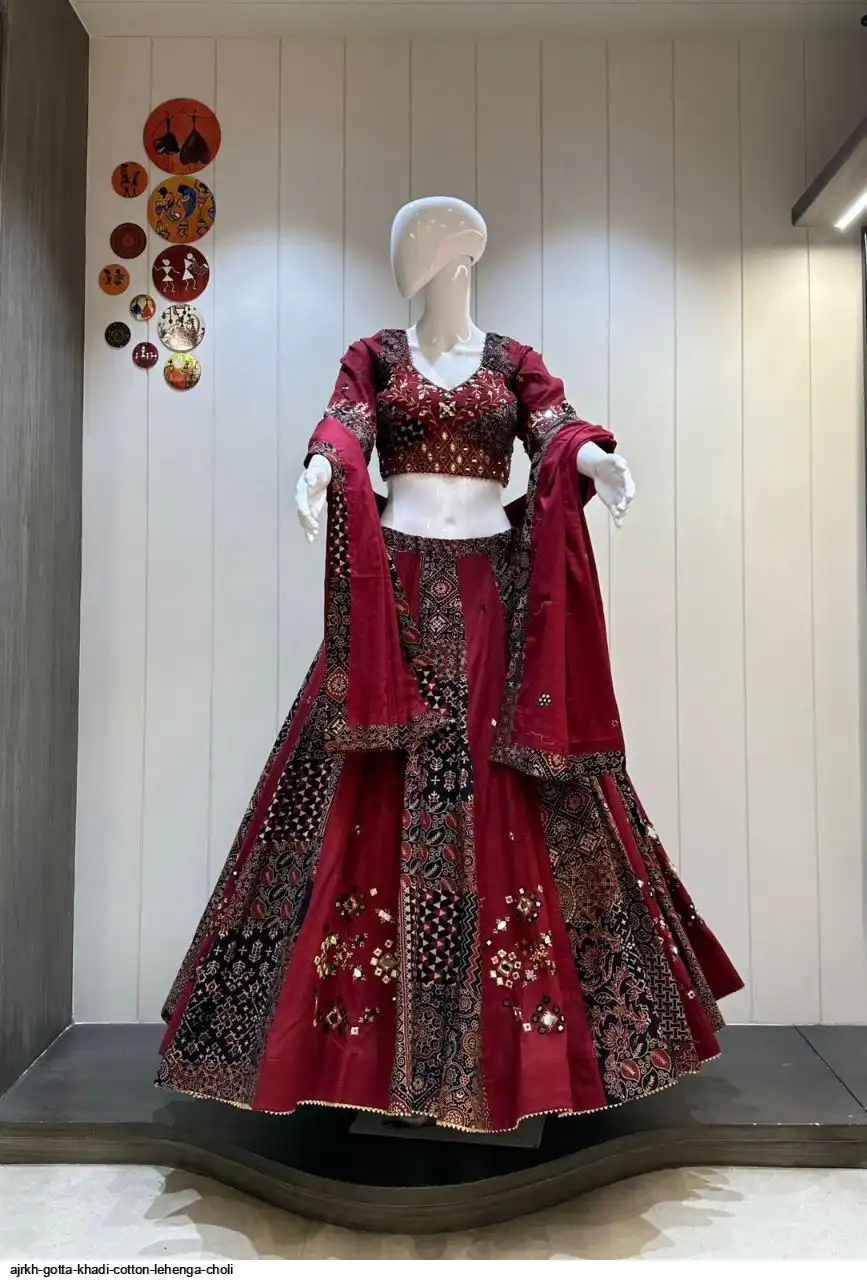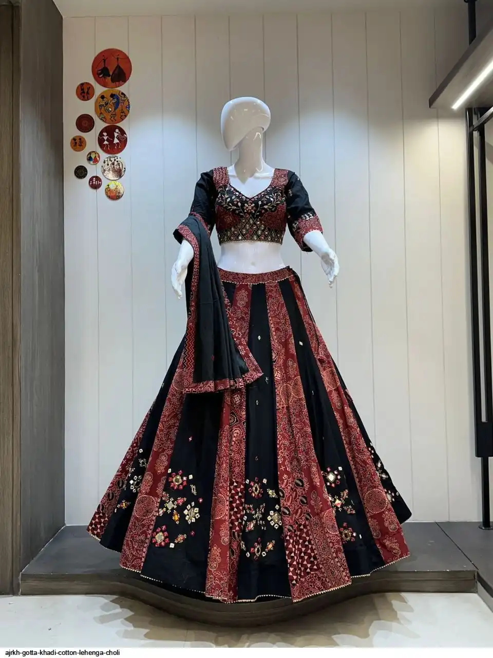 Khadi cotton kalo pattern chaniya choli with original mirror work