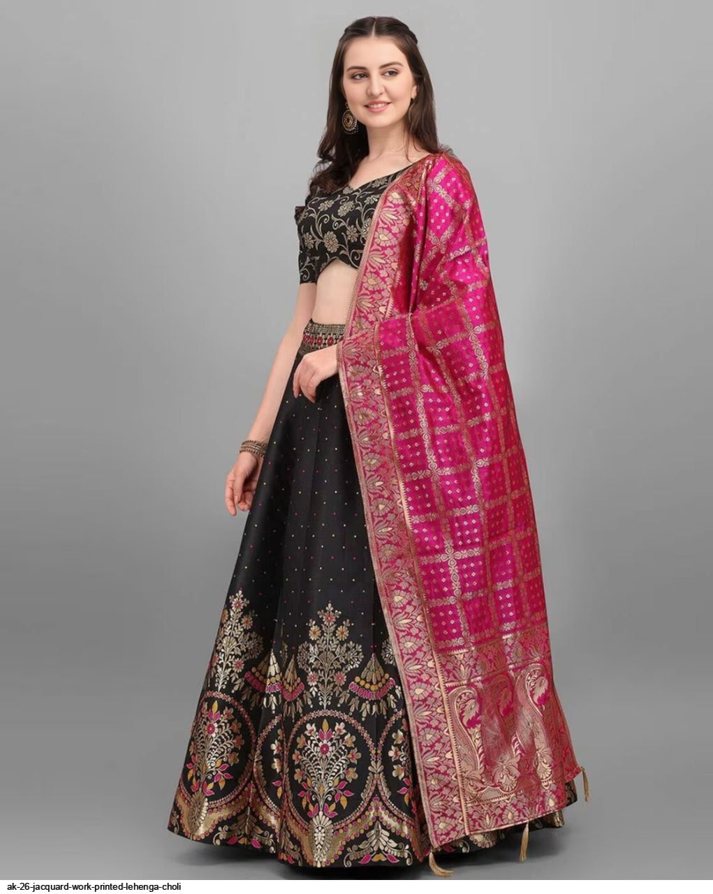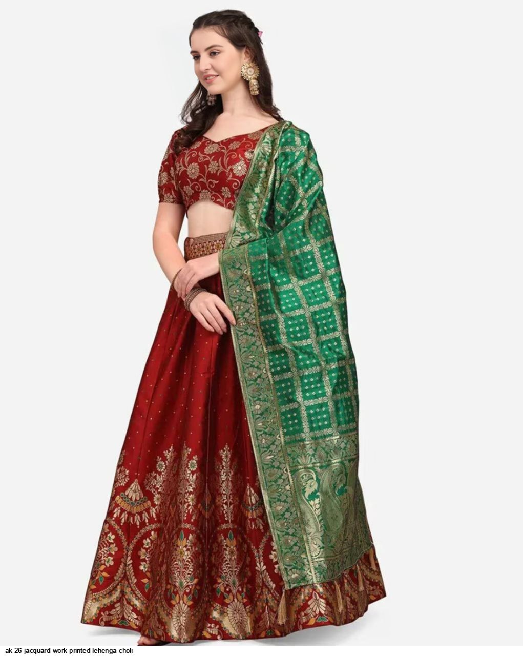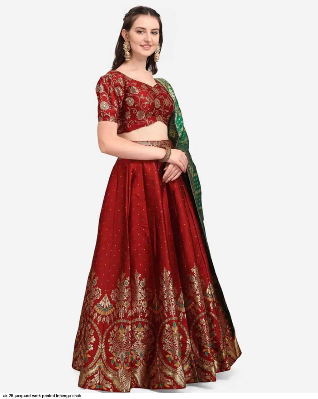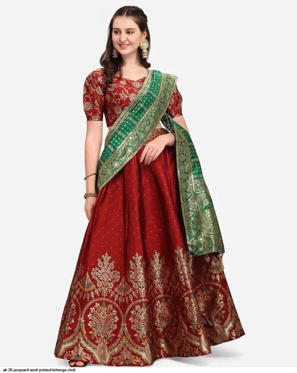 stitched jacquard lehenga of free size with 42 inch of length with full of jacquard design and extra jacquard work on pallu...