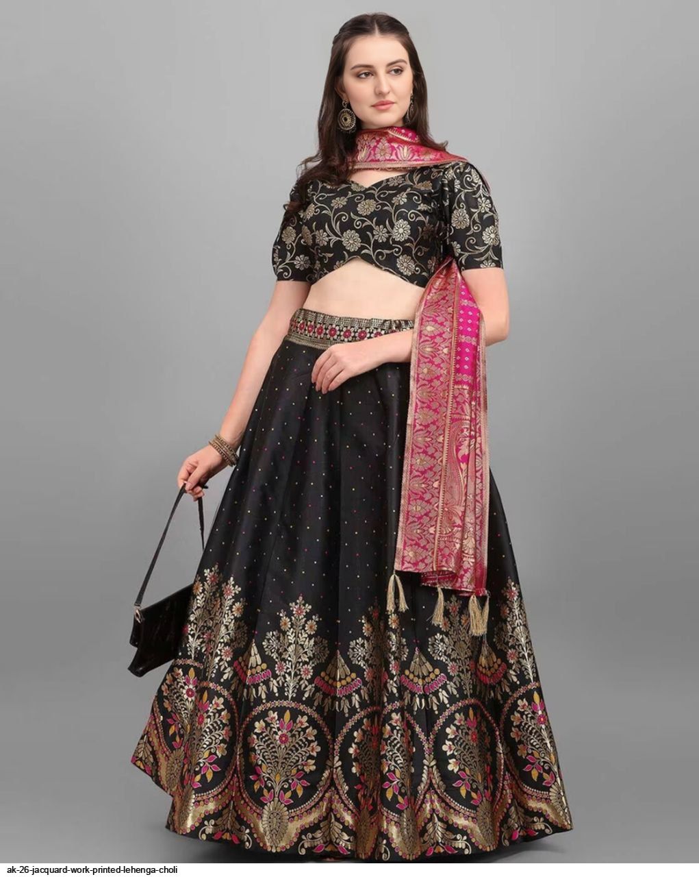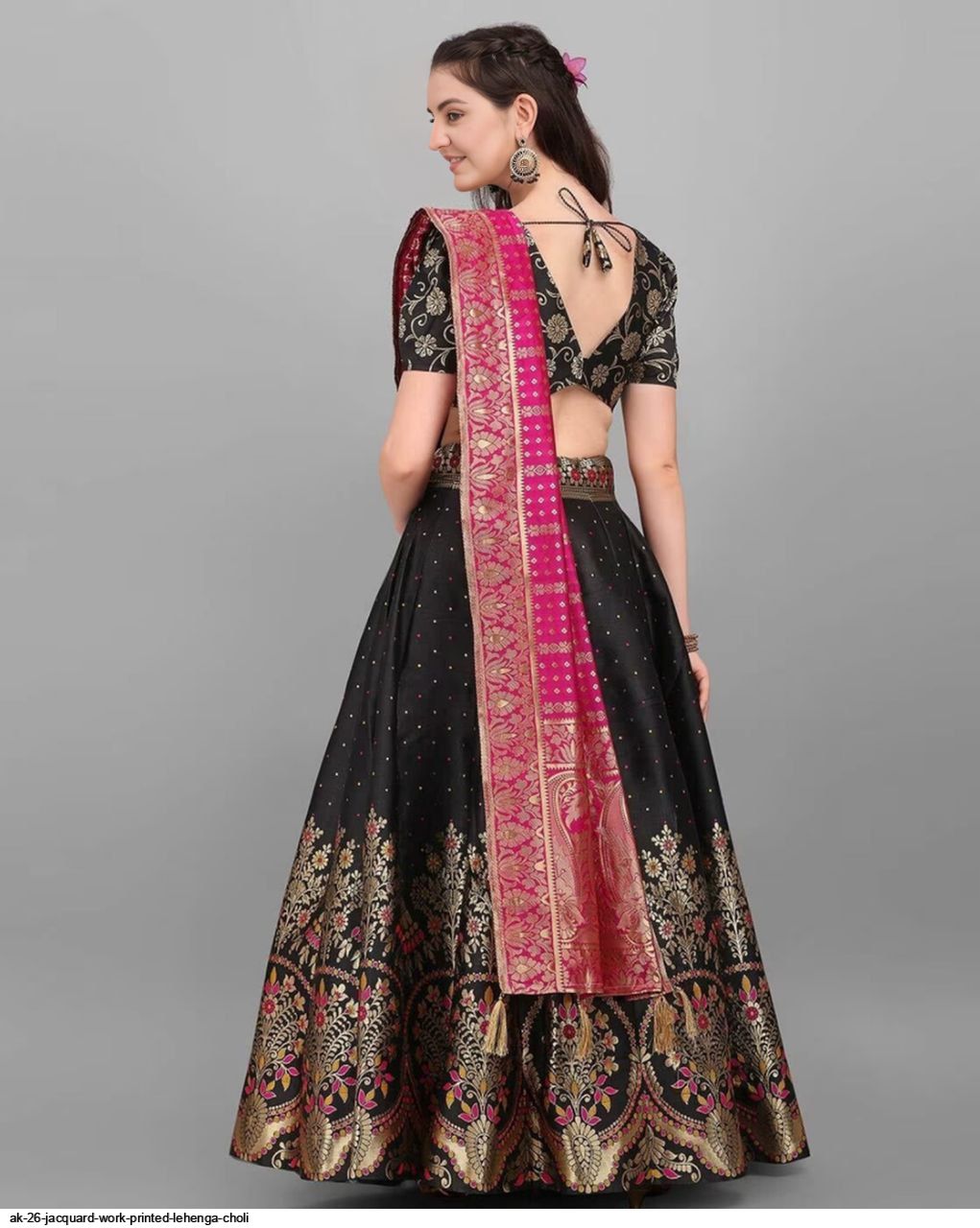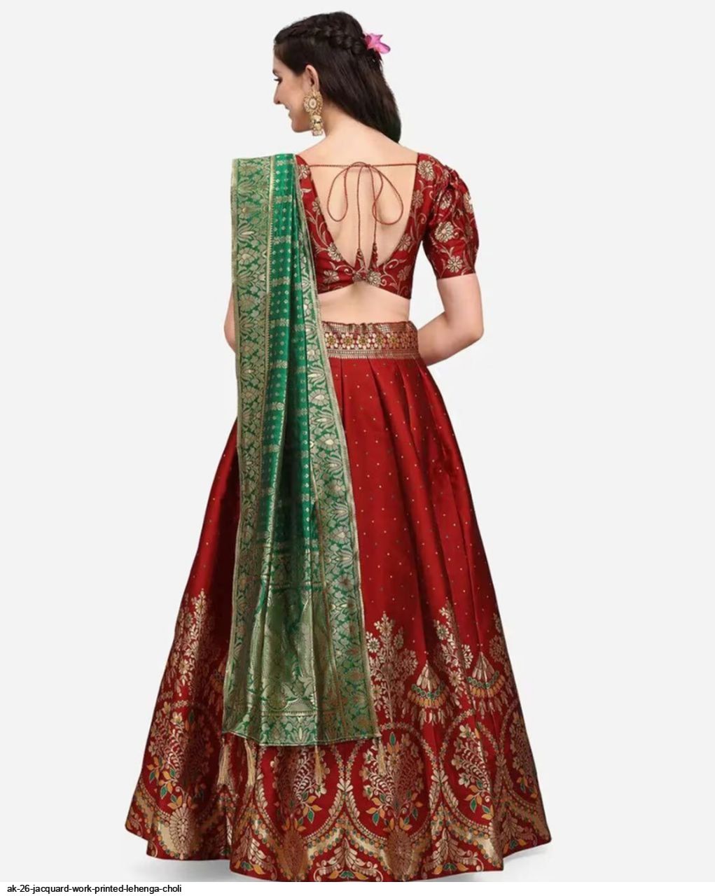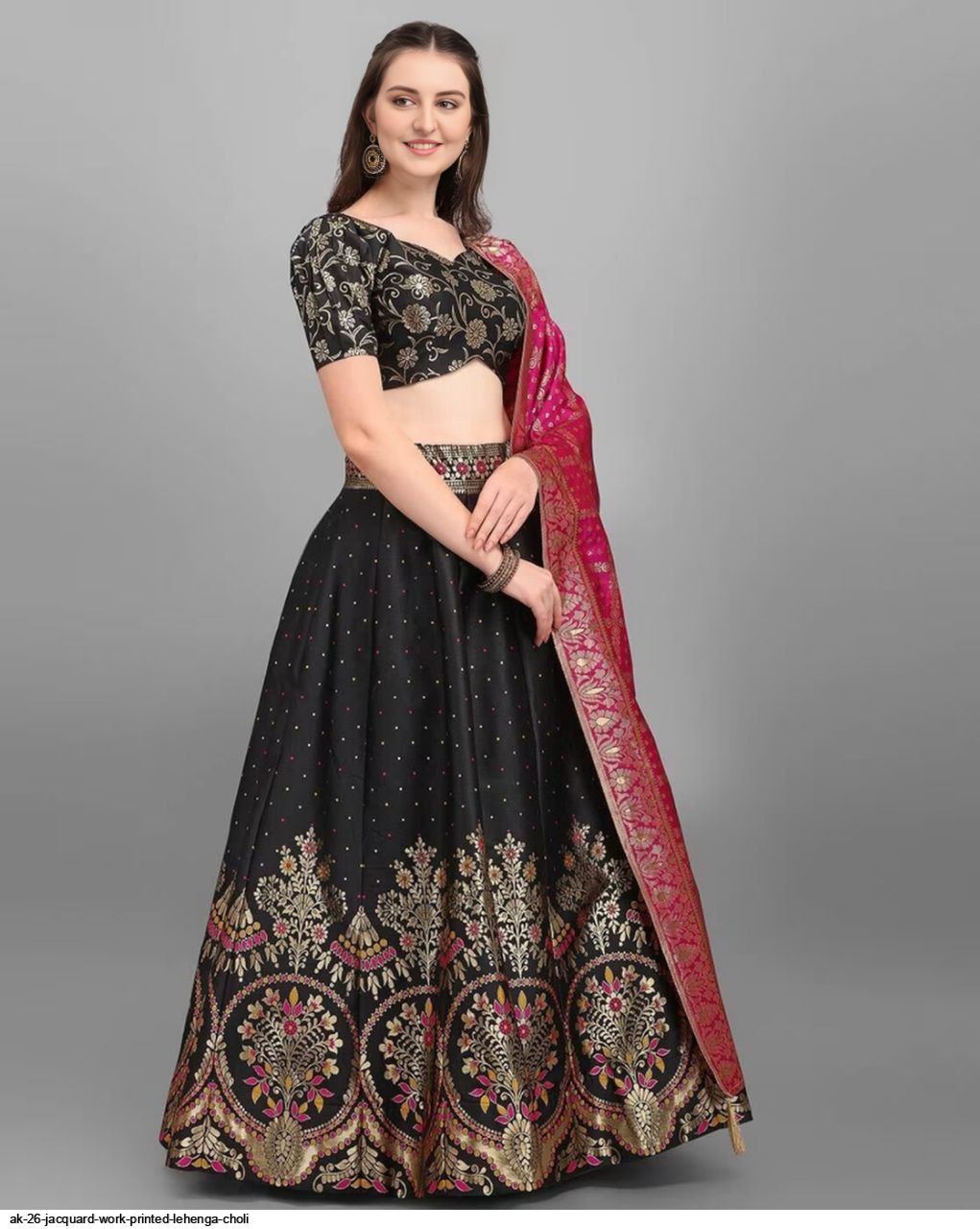 stitched jacquard lehenga of free size with 42 inch of length with full of jacquard design and extra jacquard work on pallu...