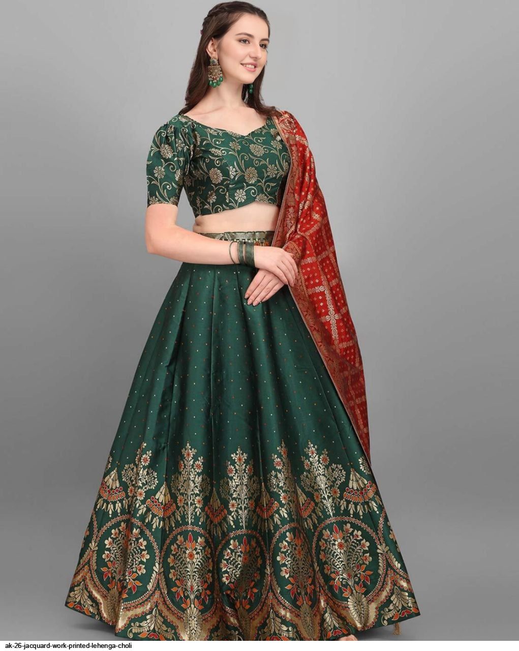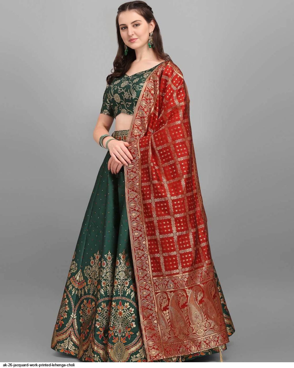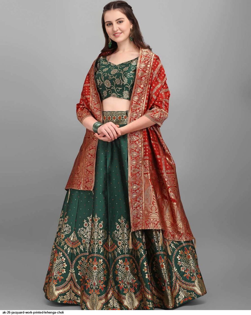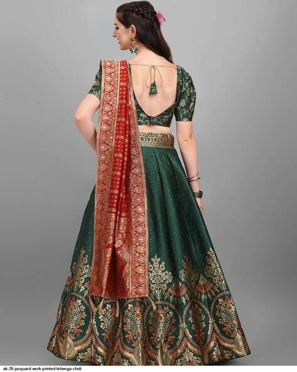 stitched jacquard lehenga of free size with 42 inch of length with full of jacquard design and extra jacquard work on pallu...