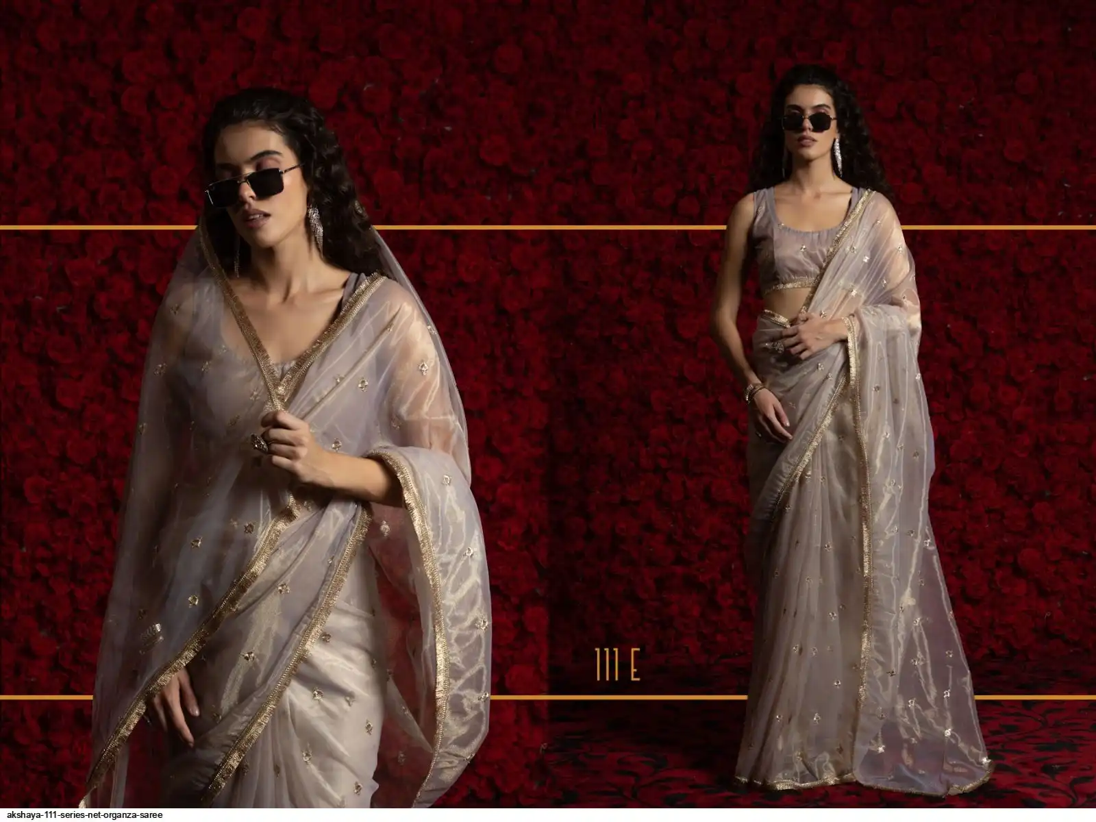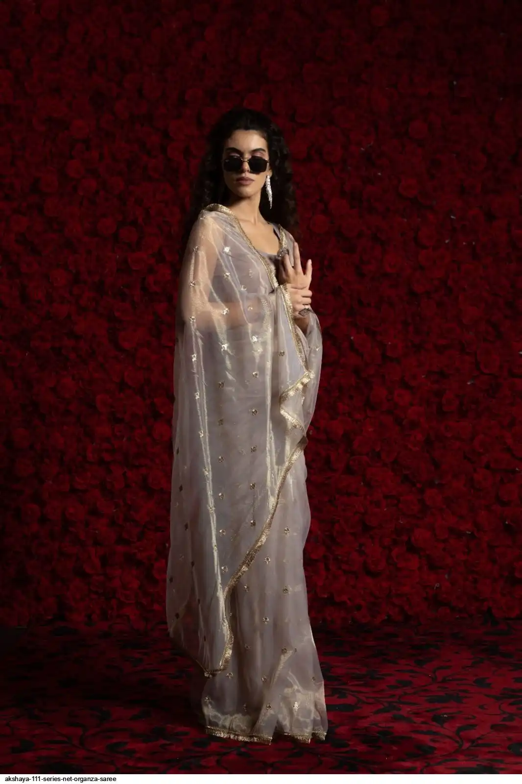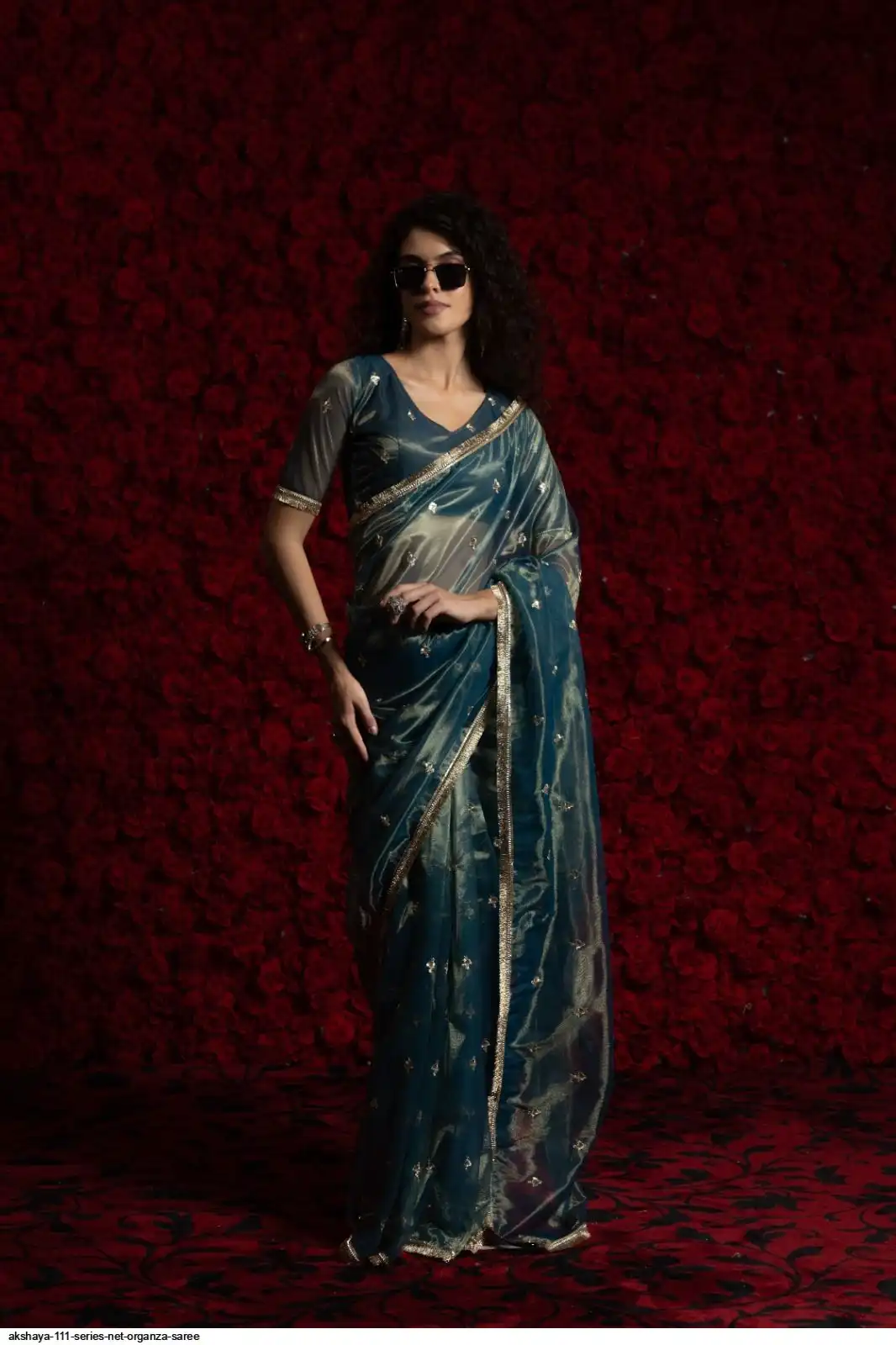 Saree Fabric : Net Organza Zari Embroidery With Handmade Lace Work