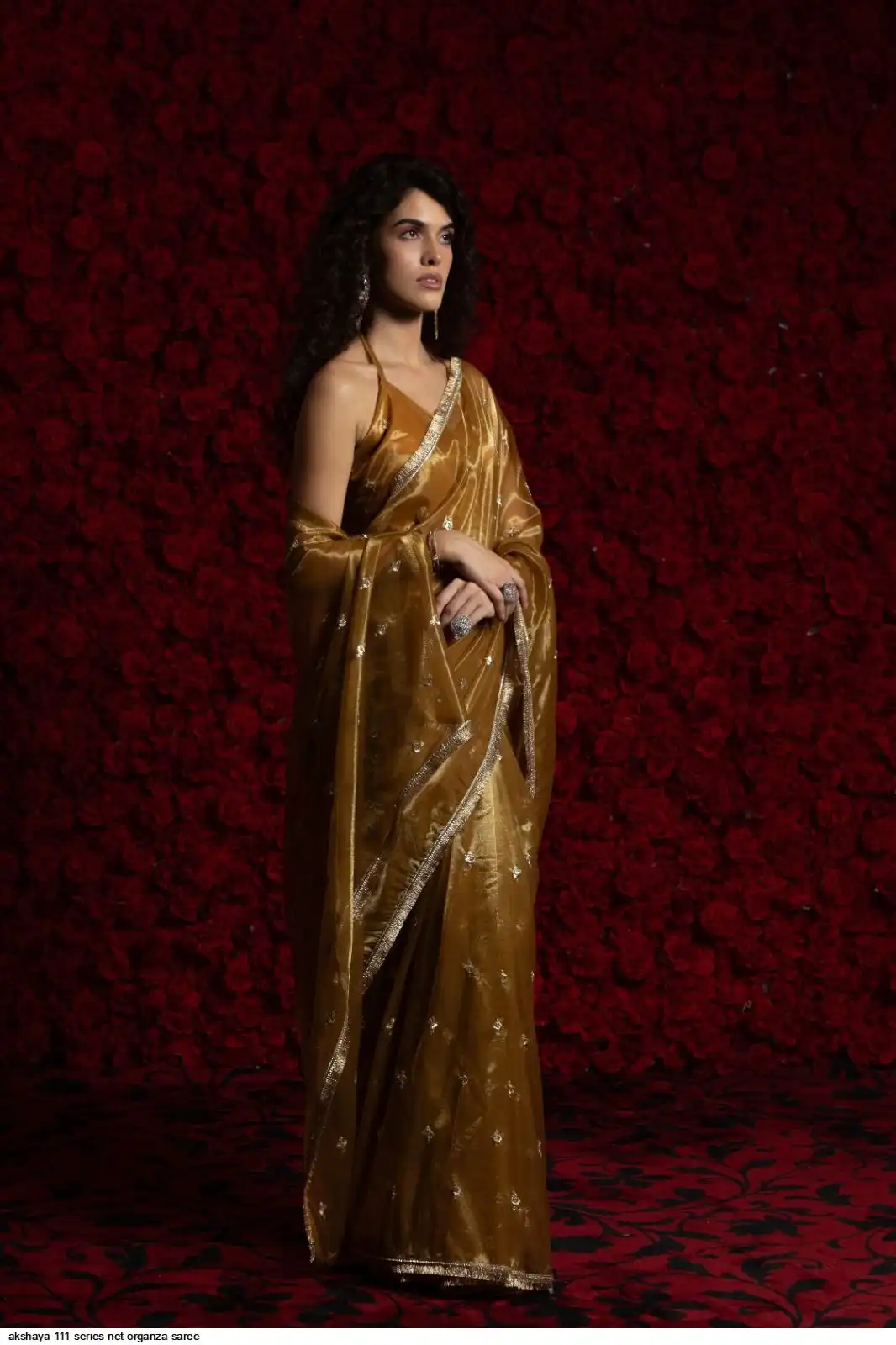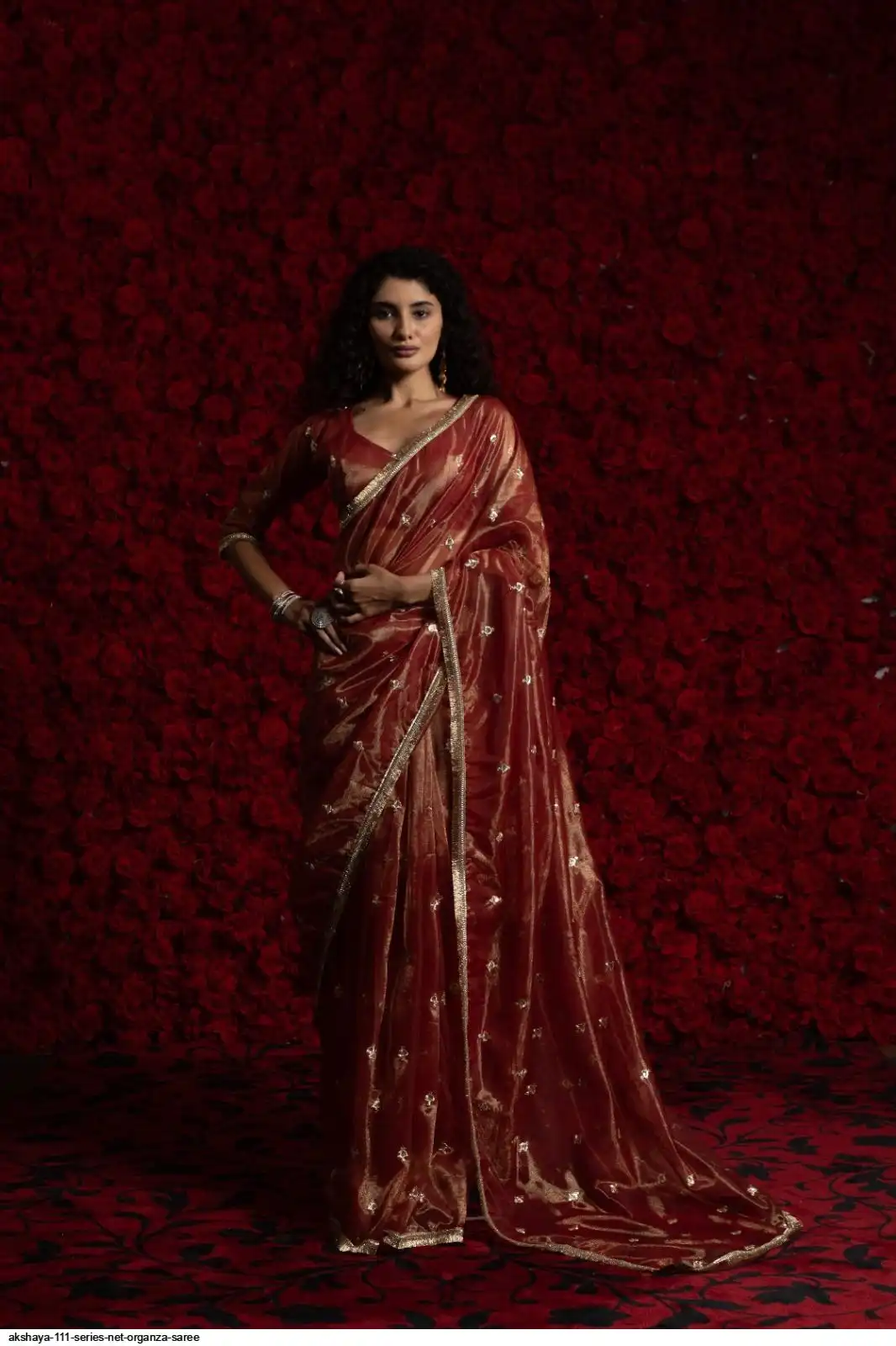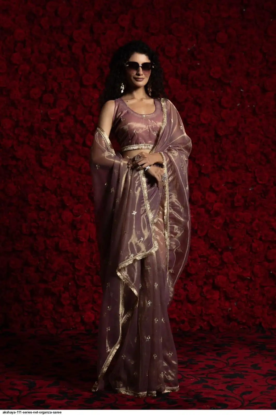 Saree Fabric : Net Organza Zari Embroidery With Handmade Lace Work
