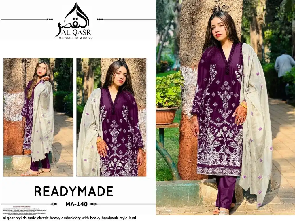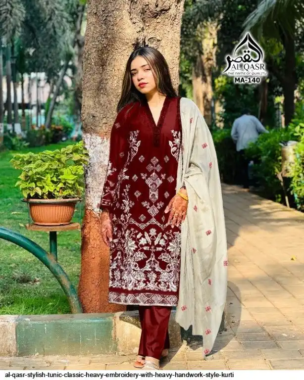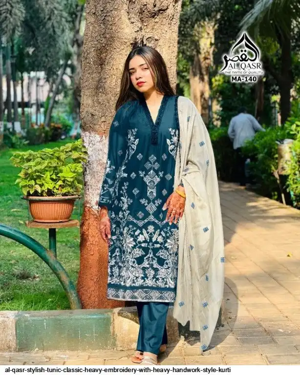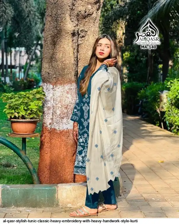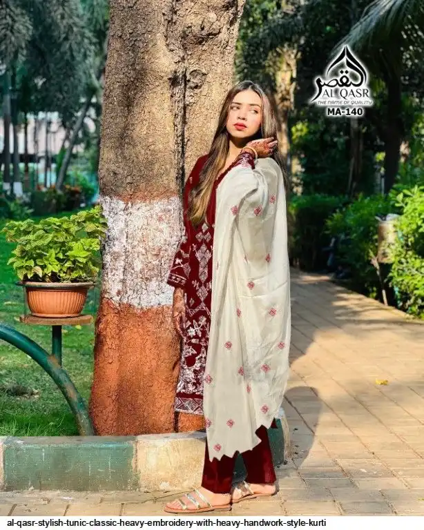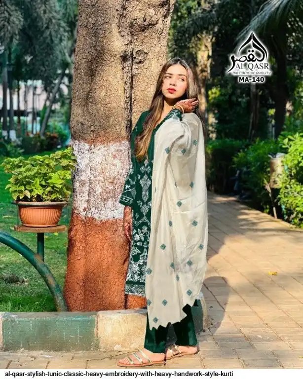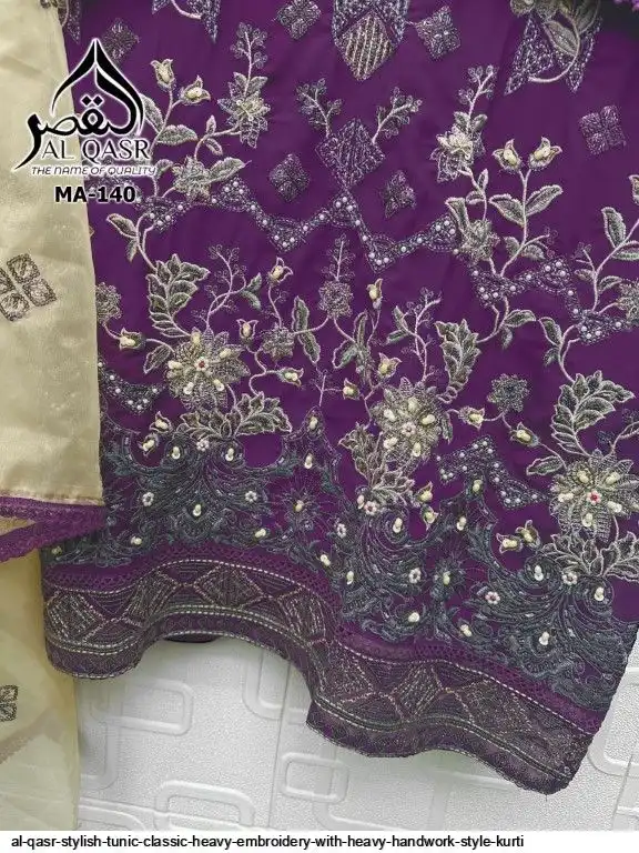 Designer stylish Tunic Classic Heavy Embroidery with Heavy Handwork , Style Kurti Paired With Inner ...with Glamour's * Embroidered sleeves ..& Pant With Organza Embroidery Dupatta