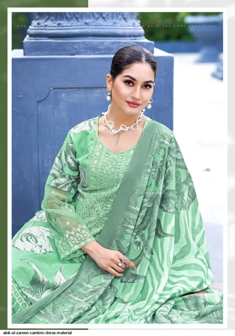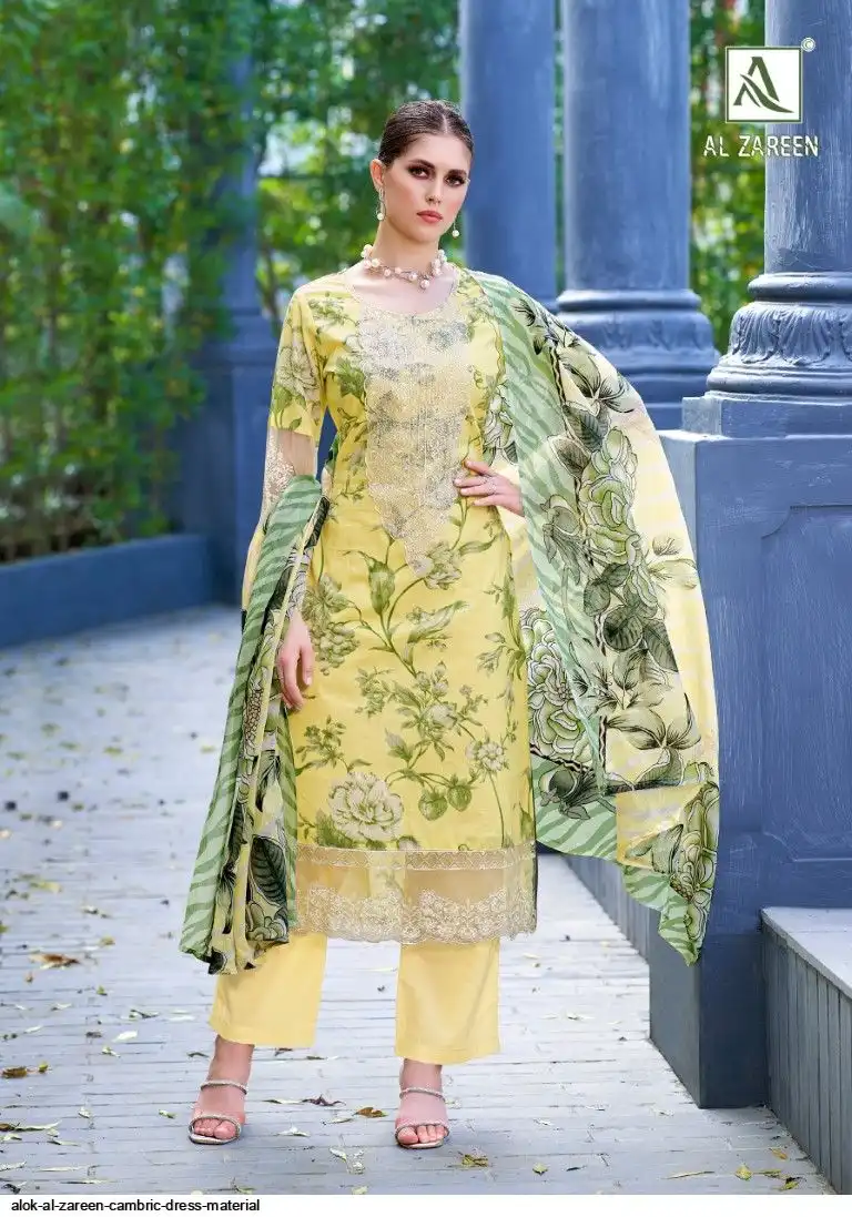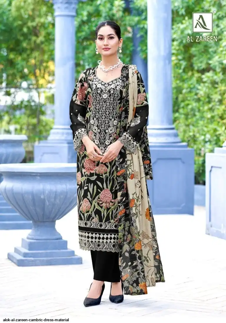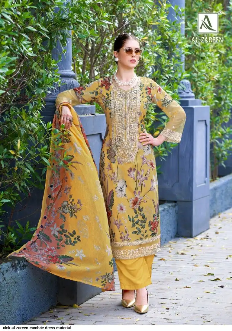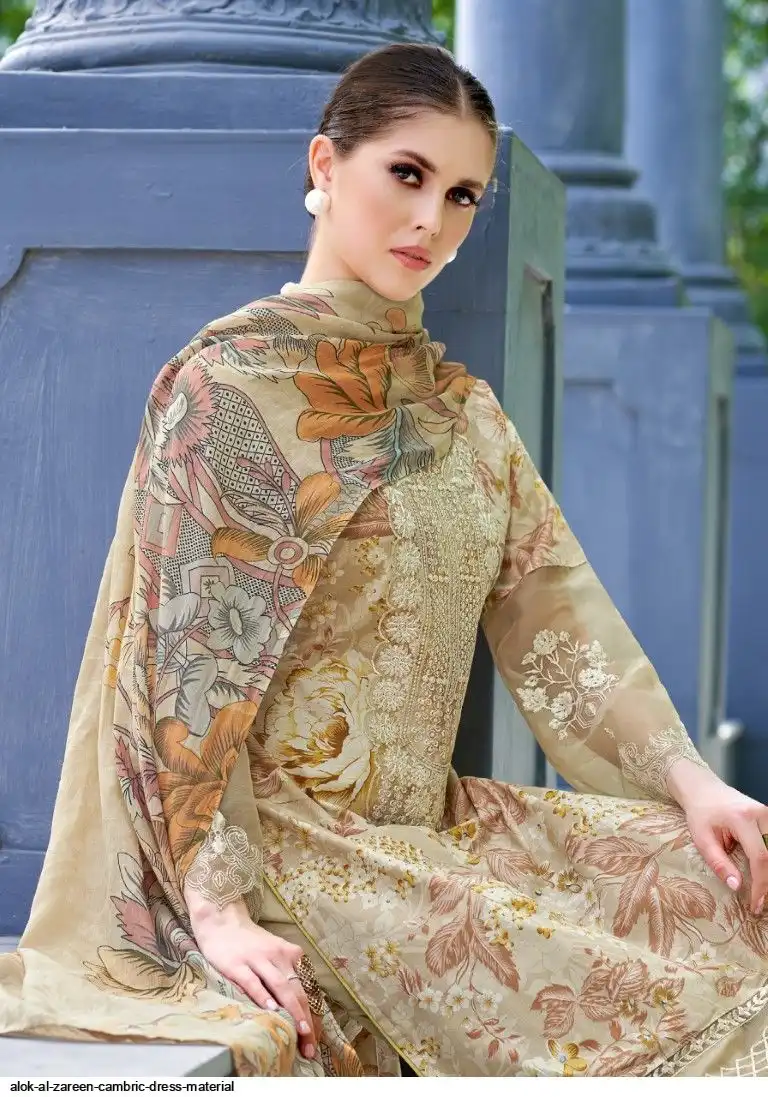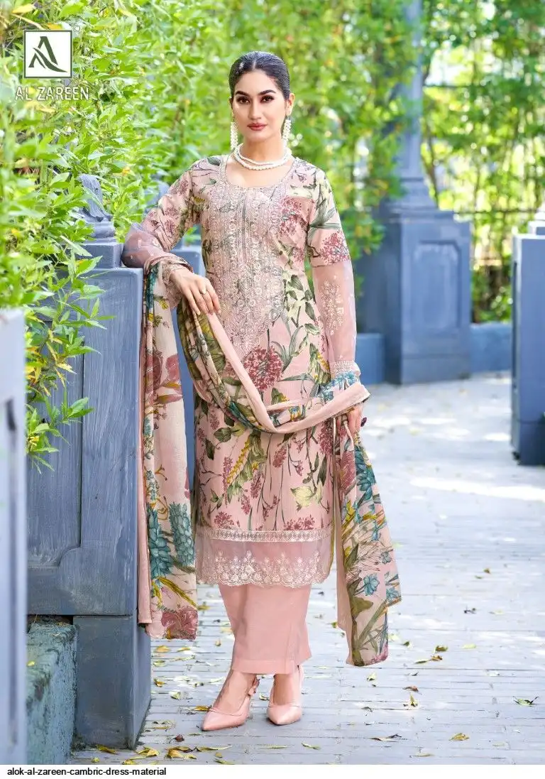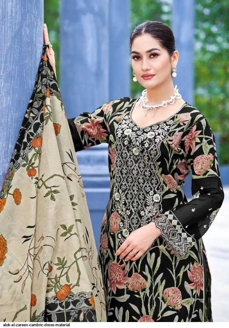 Top: Pure Cambric Cotton Print & Fancy Embroidery With Daman & Sleeve Work