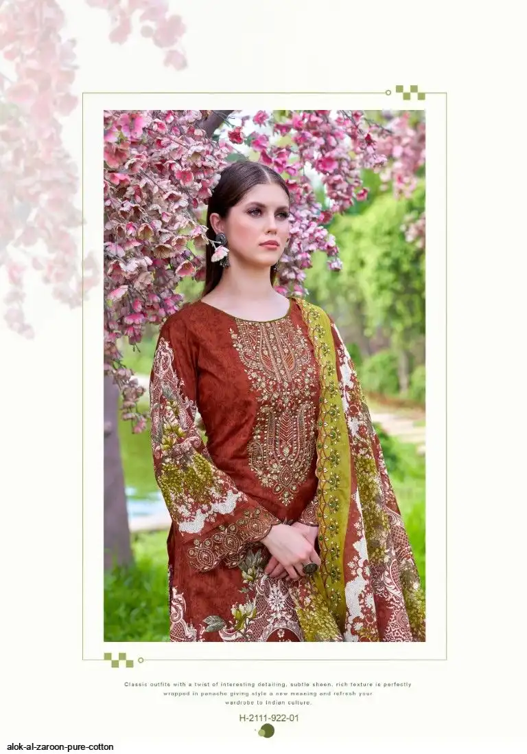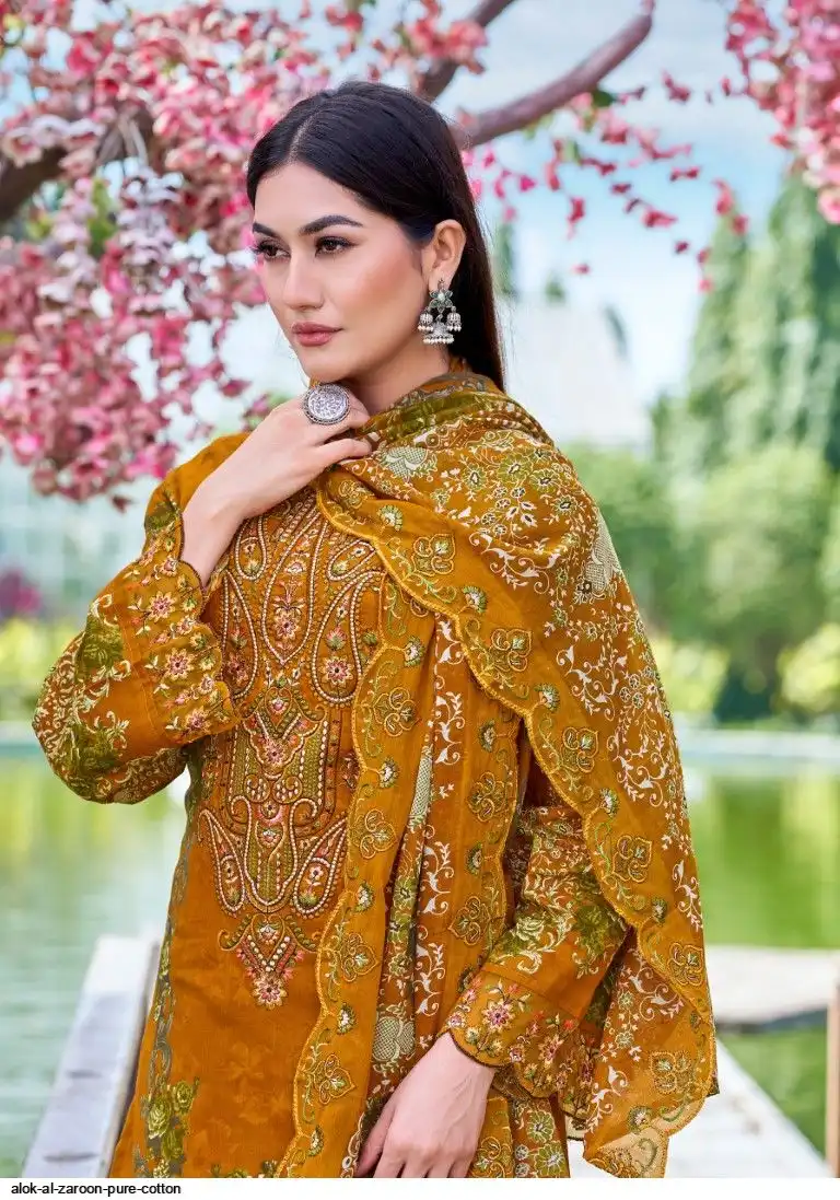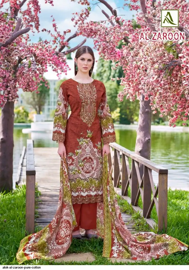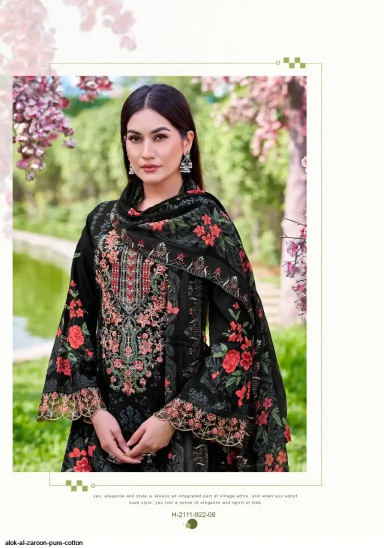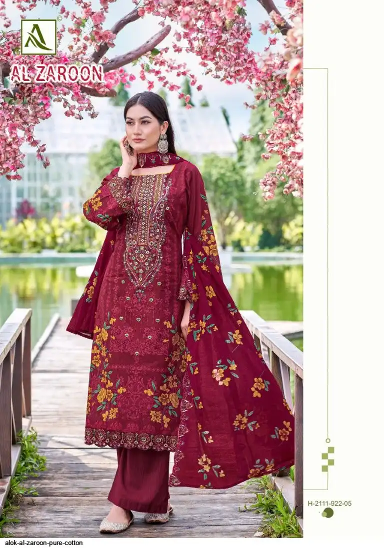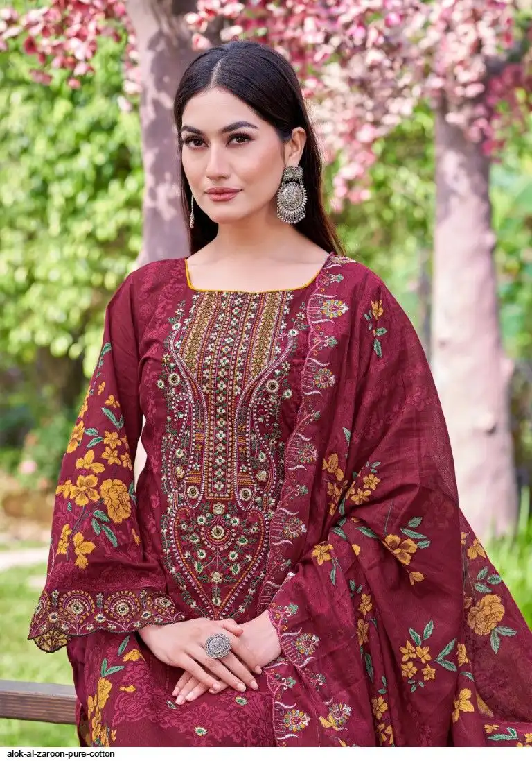 Dup: Pure Cotton Mal Mal Print With Fancy Embroidery Work