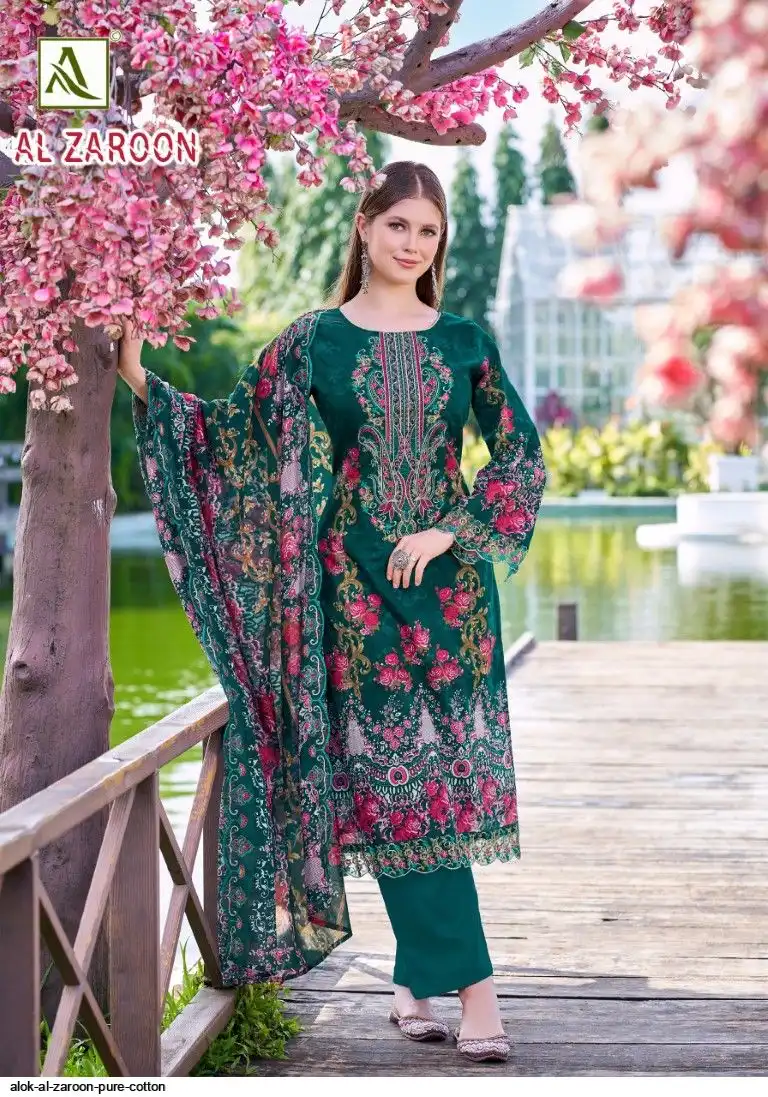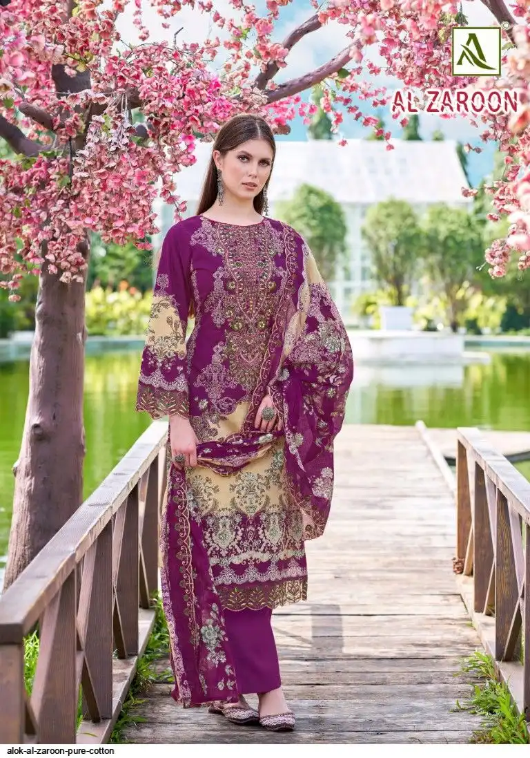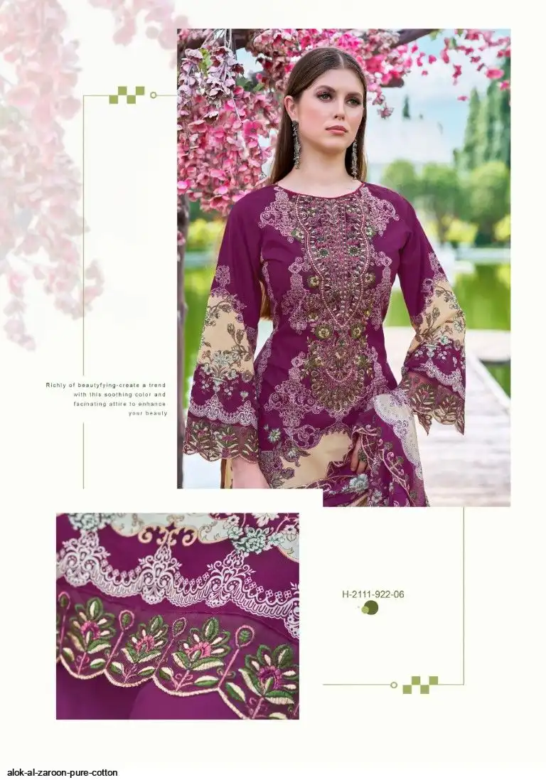 Top: Pure Cotton Cambric Pakistani Print With Fancy Embroidery With Daman & Sleeves Work