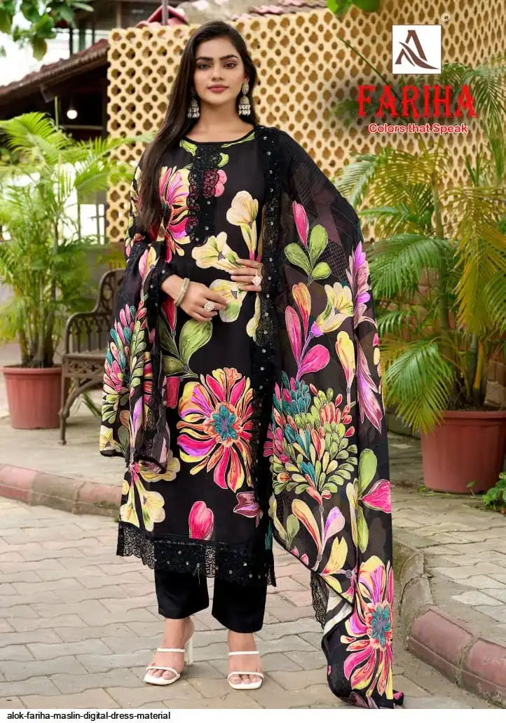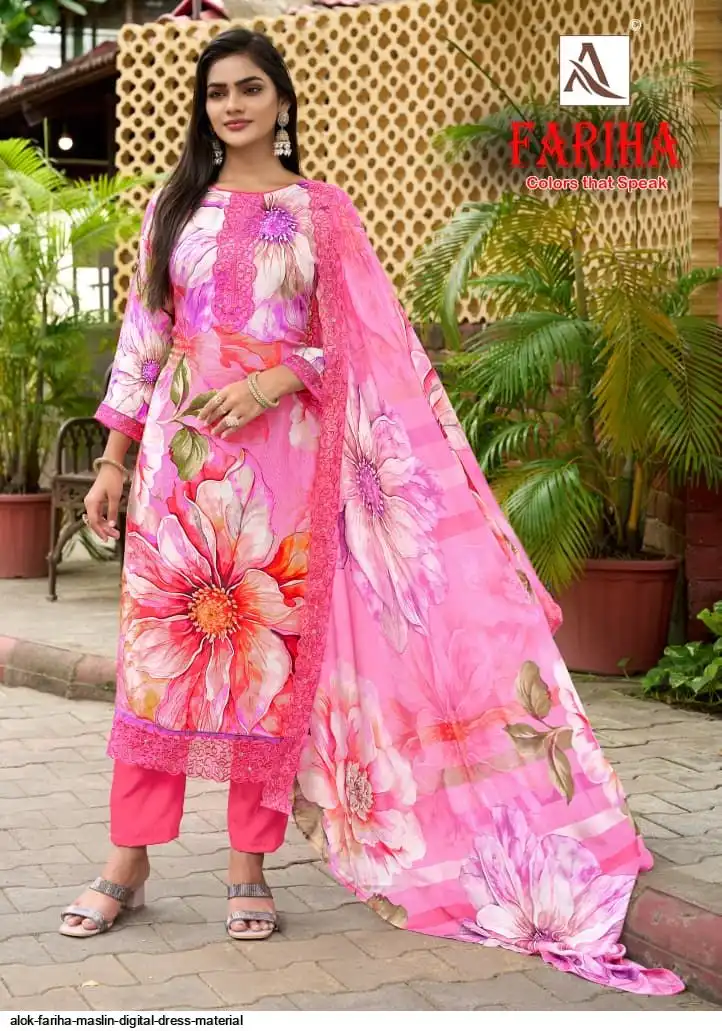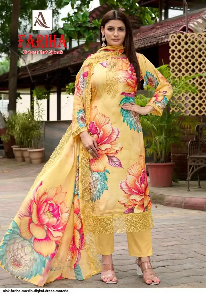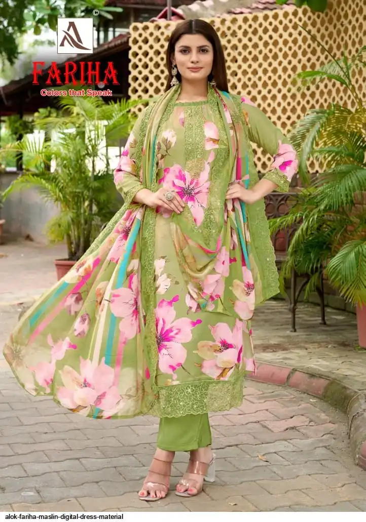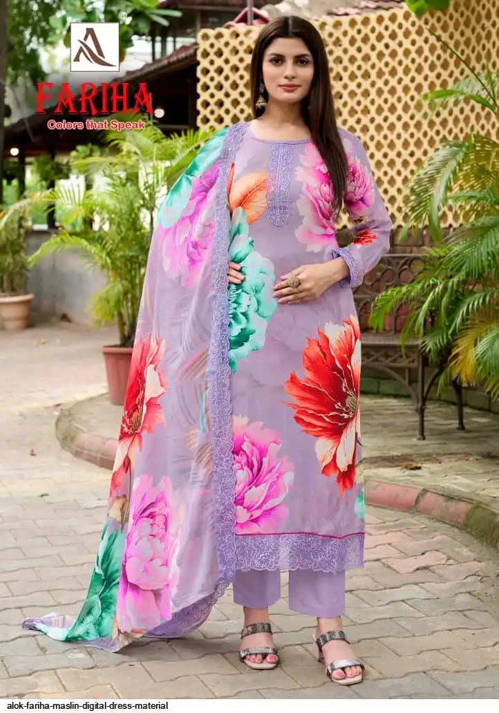 Top: Premium Maslin Digital Designer Print With Neck & Daman Embroidery Work
