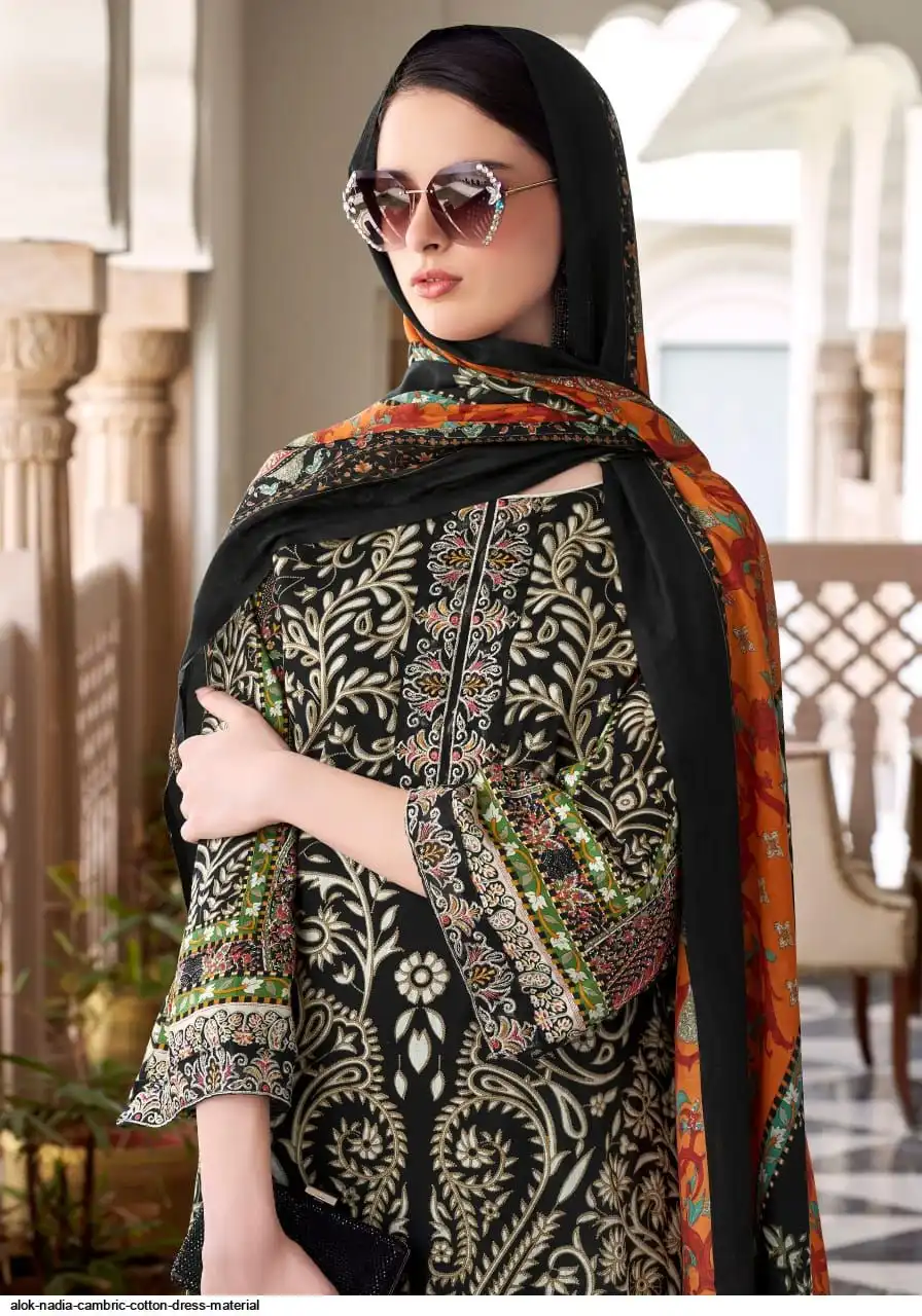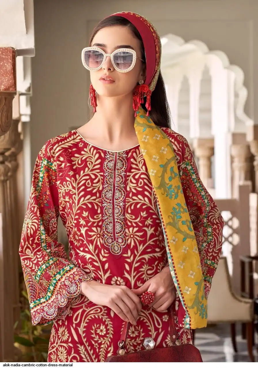 Top: Pure 100% Cambric Cotton Pakistani Print With Fancy Embroidery Work & Daman Lace
