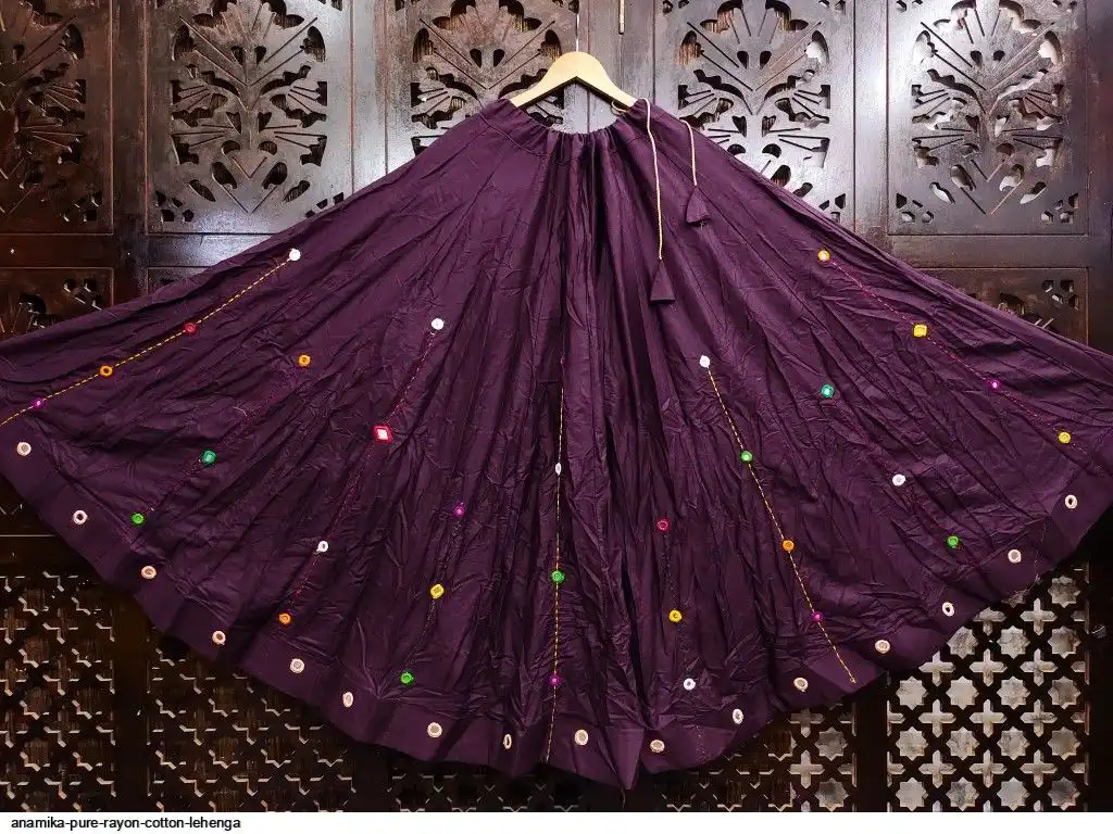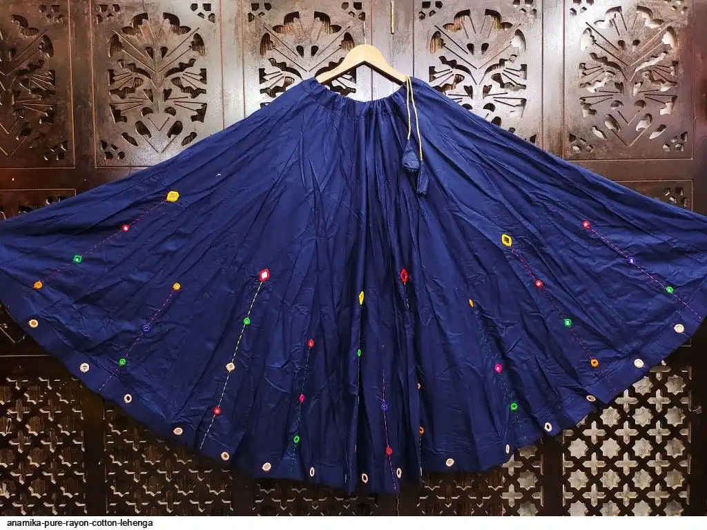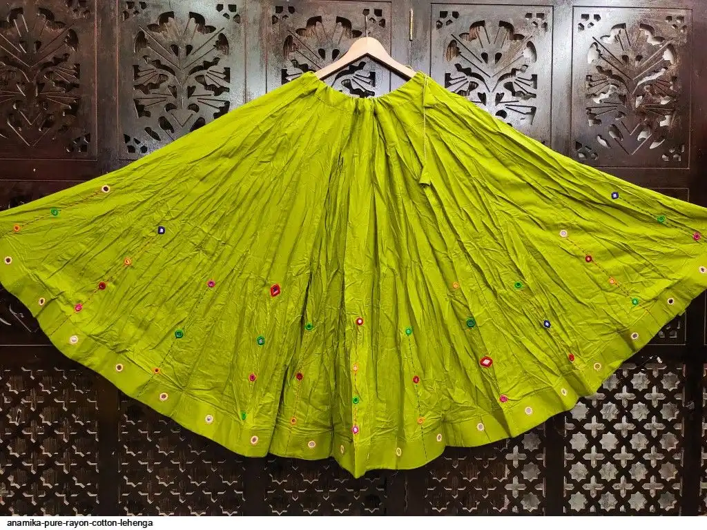 Pure Rayon Cotton chaniya(Skirt) with Real Mirror Multicolour work
