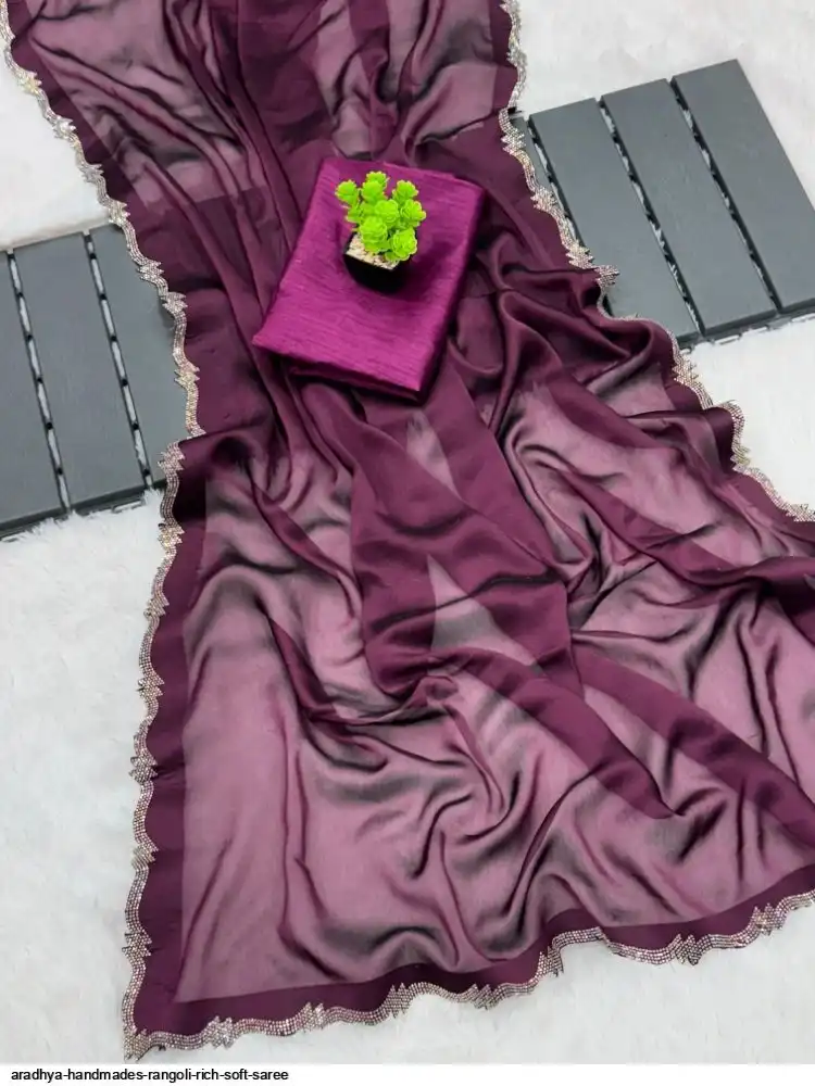 *FABRIC : black rangoli rich soft shine fabric with handmades diamond*