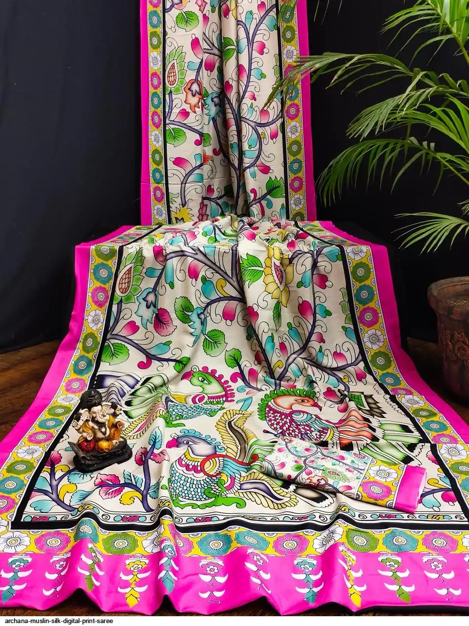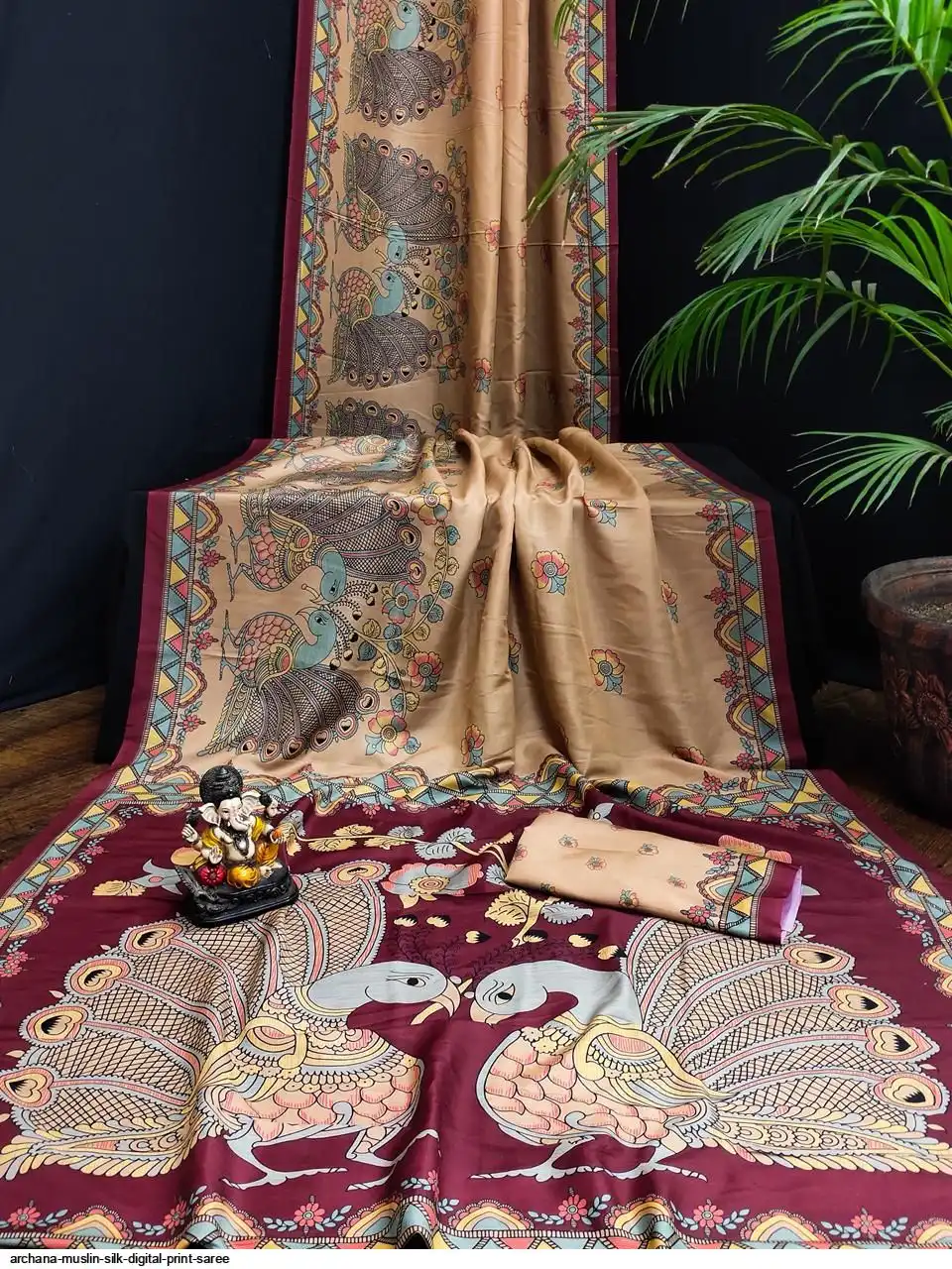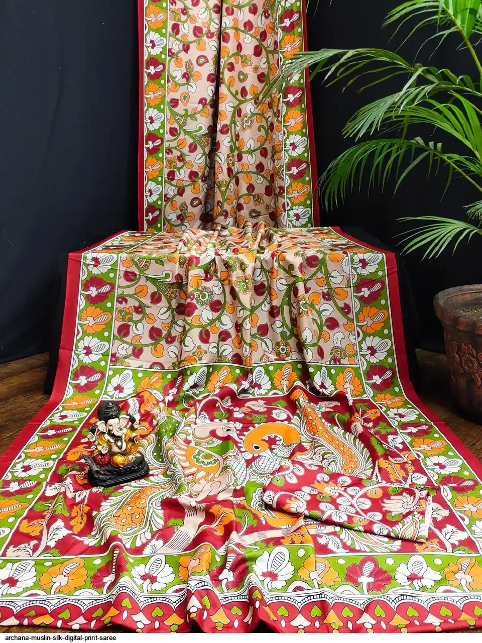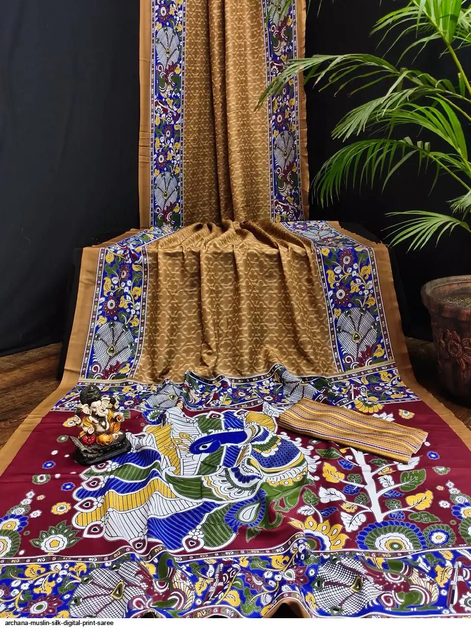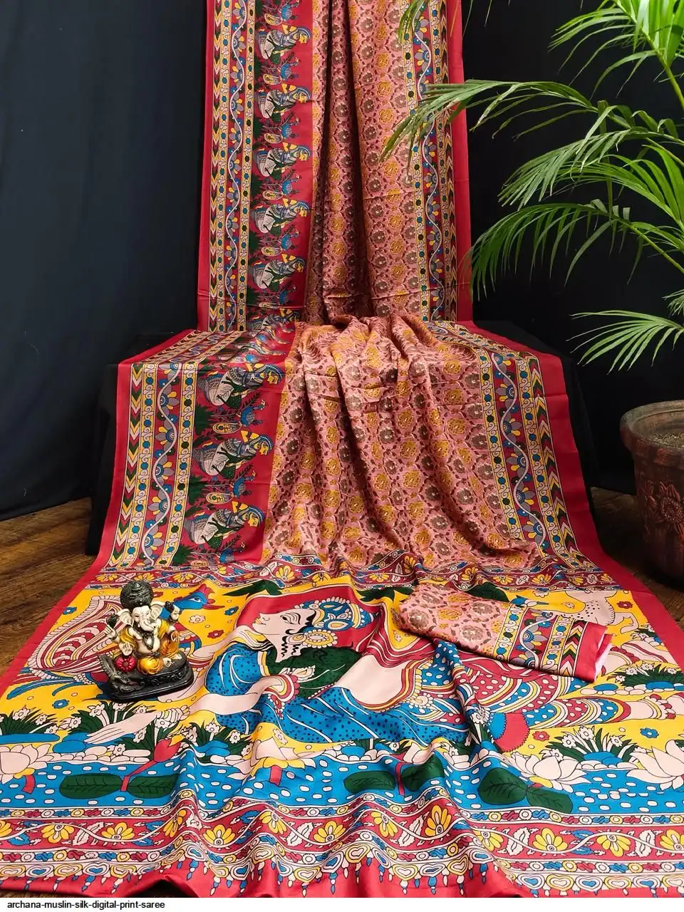 Presenting Premium And Elegant Semi Pure Kalamkari Print Bandhej Muslin Silk Drapes Which Is Processed With Digital Print
