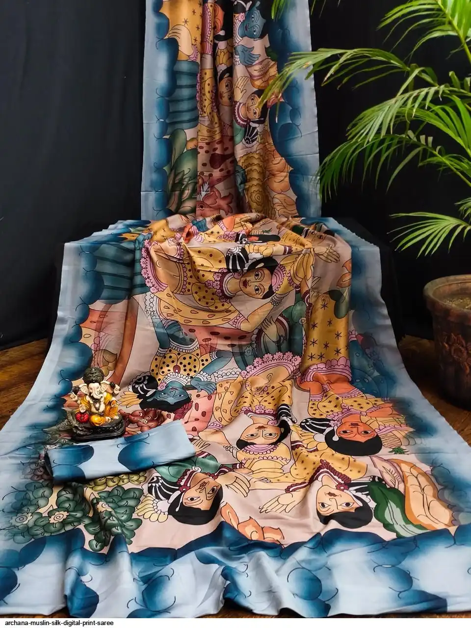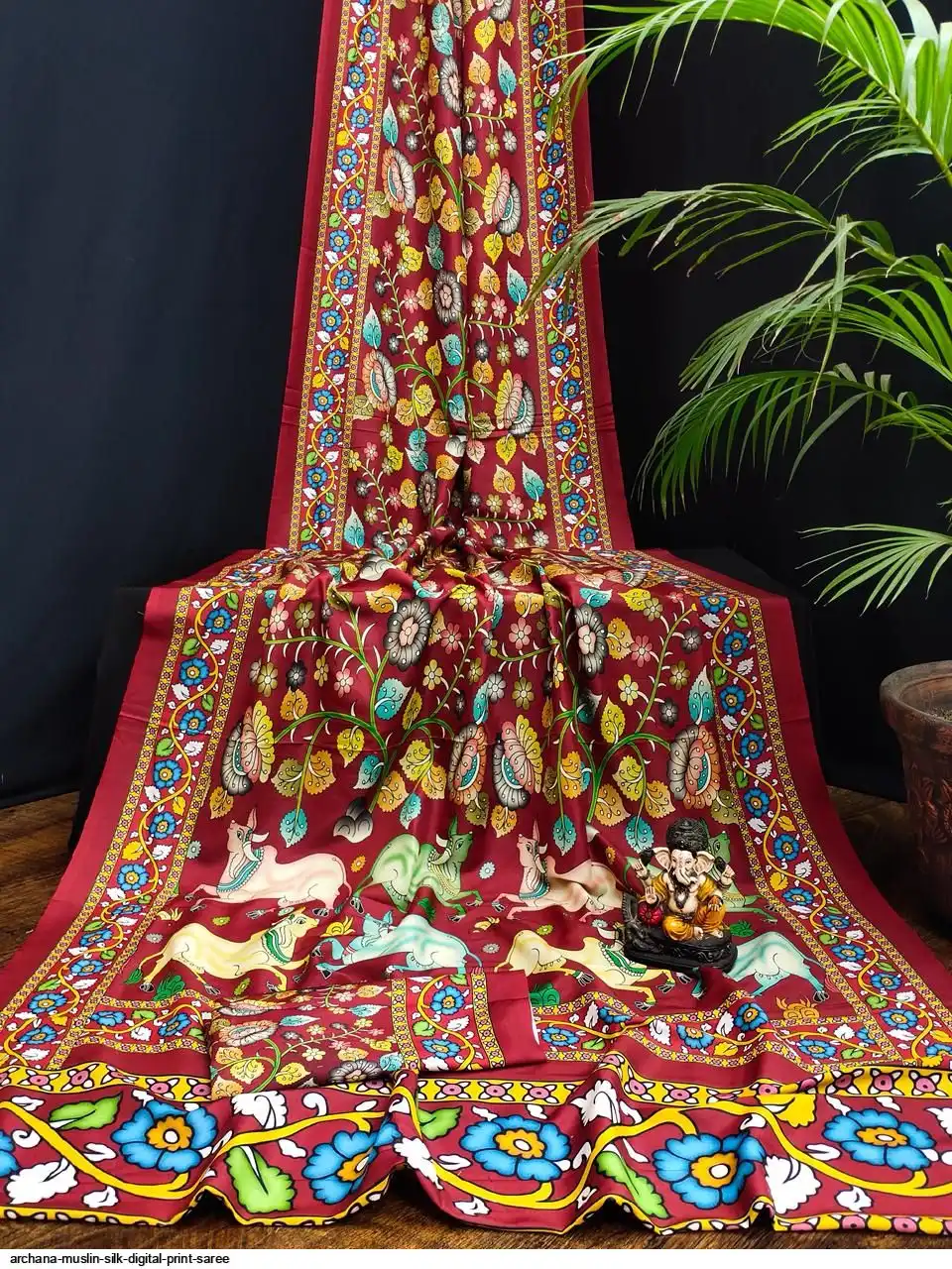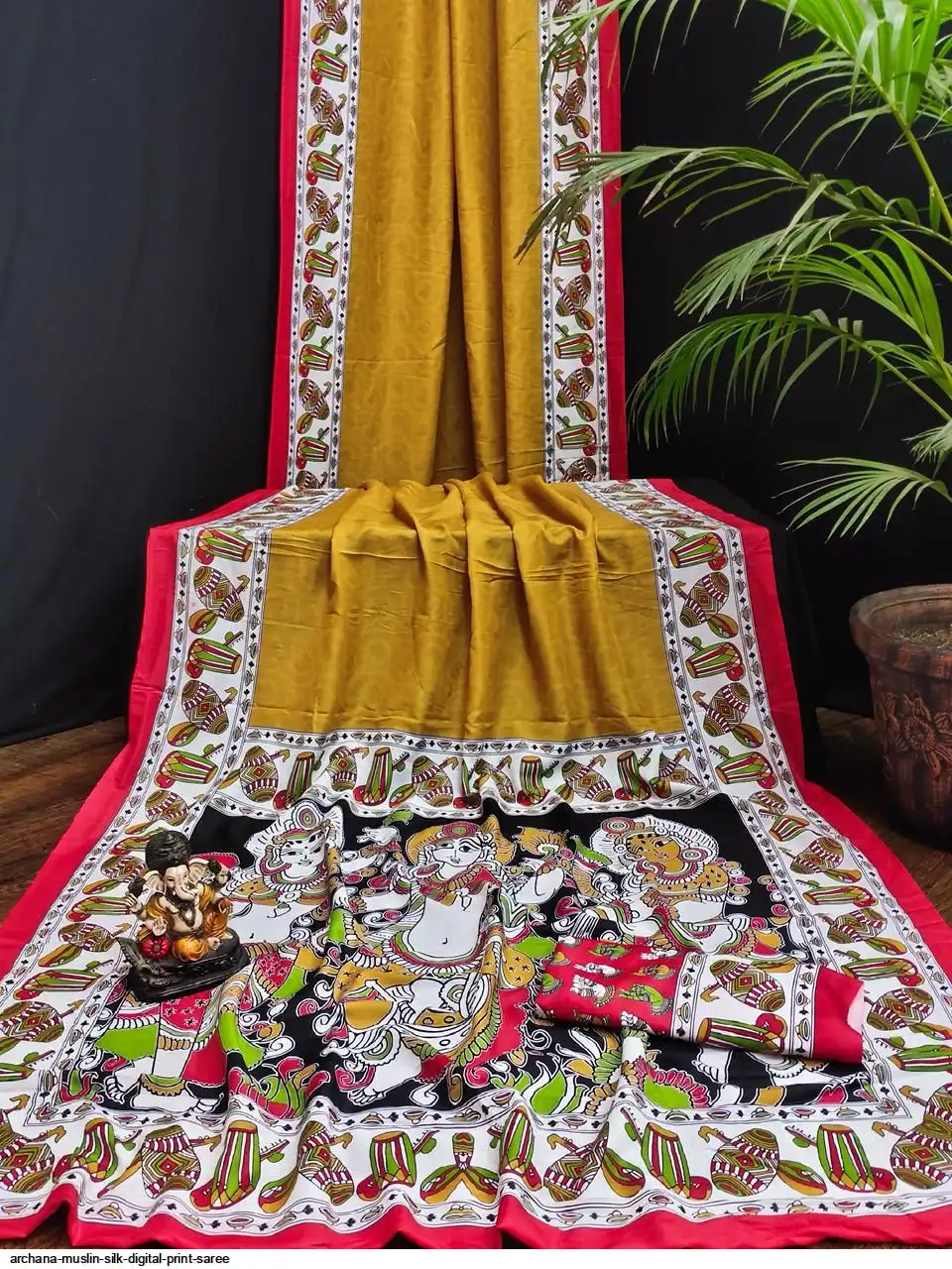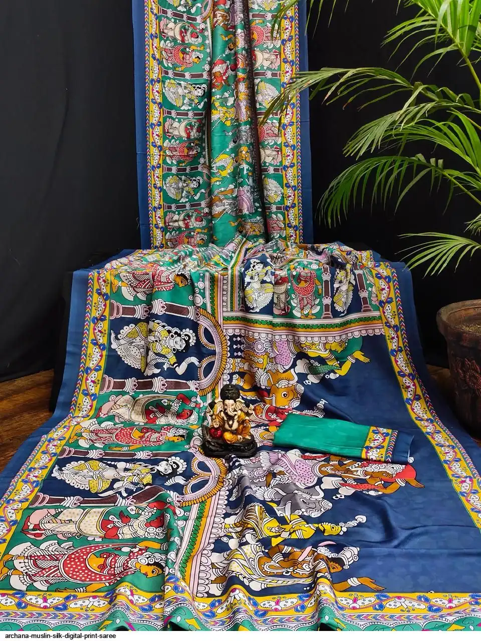 Presenting Premium And Elegant Semi Pure Kalamkari Print Bandhej Muslin Silk Drapes Which Is Processed With Digital Print