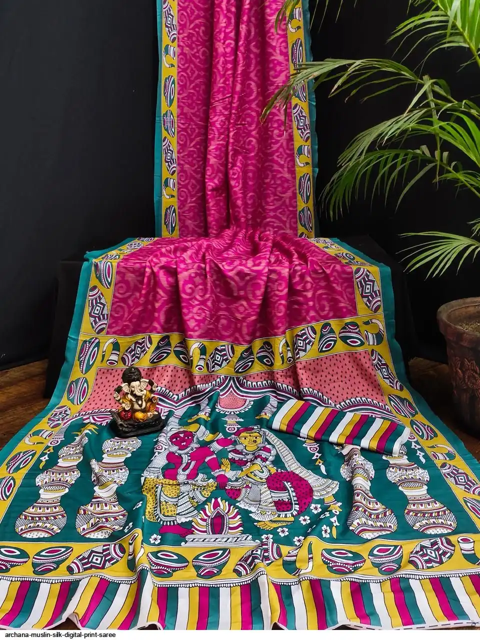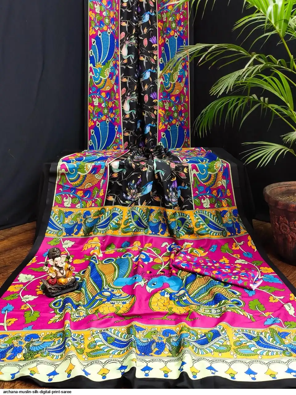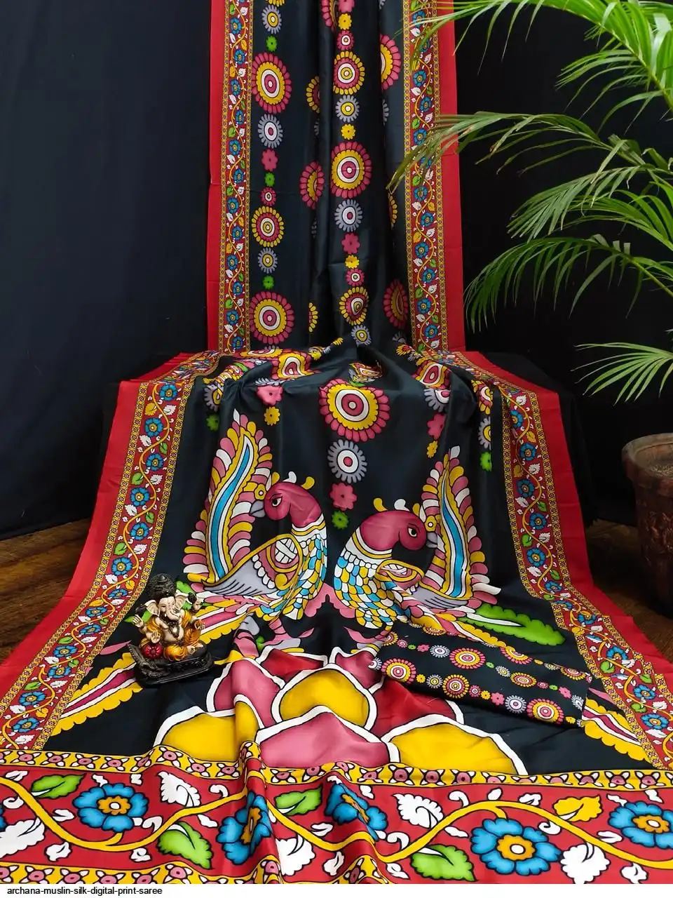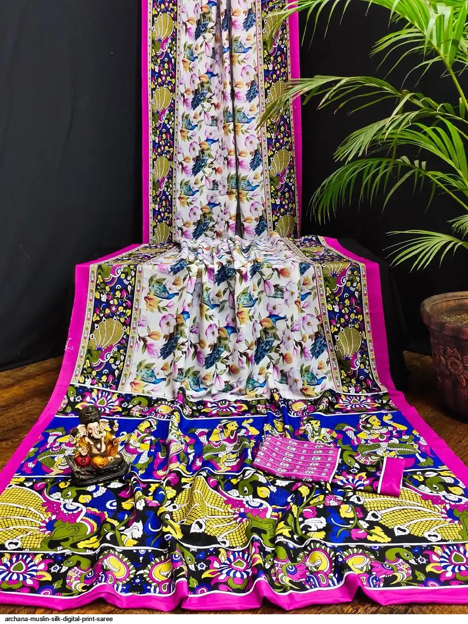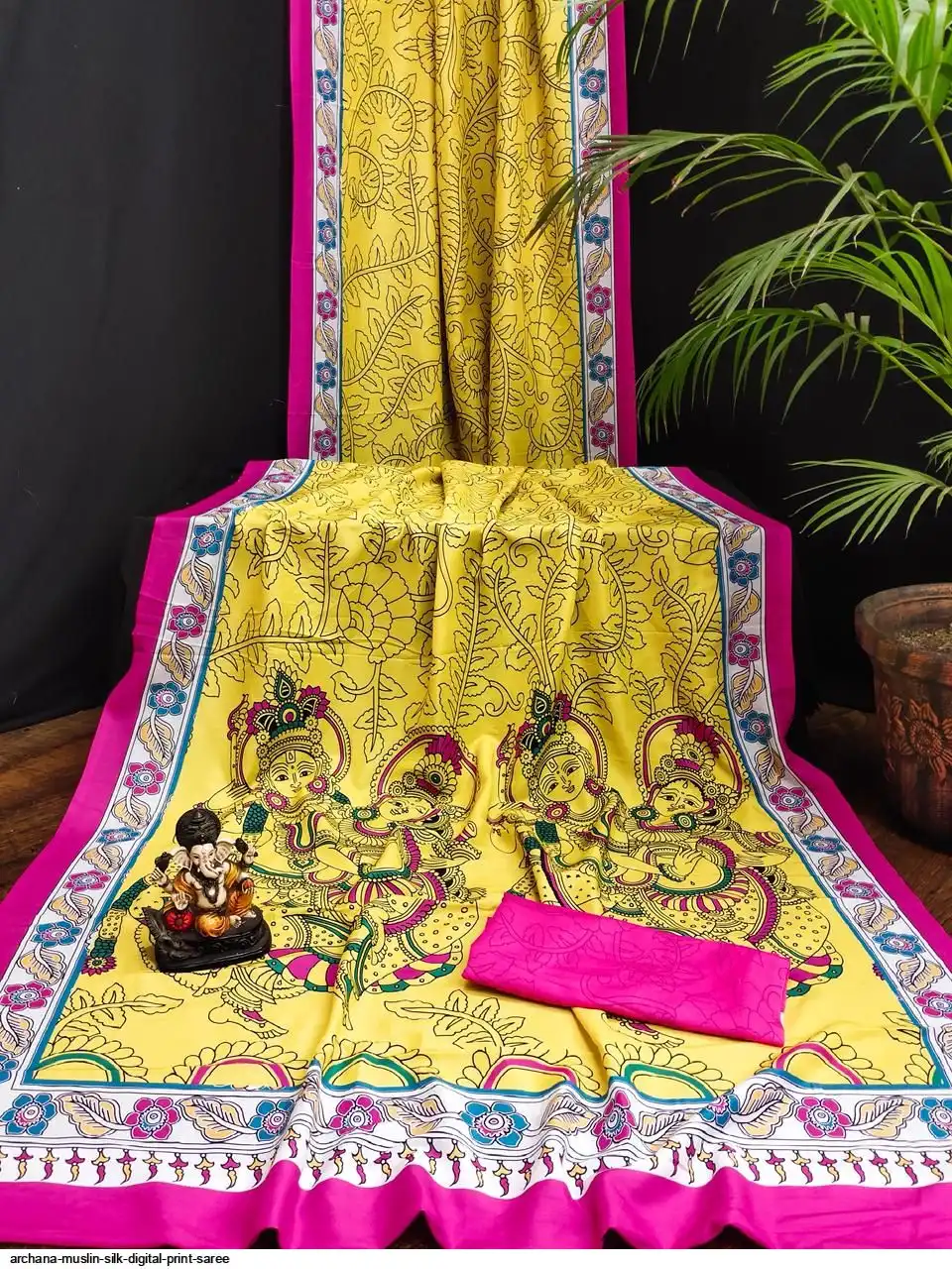 Presenting Premium And Elegant Semi Pure Kalamkari Print Bandhej Muslin Silk Drapes Which Is Processed With Digital Print