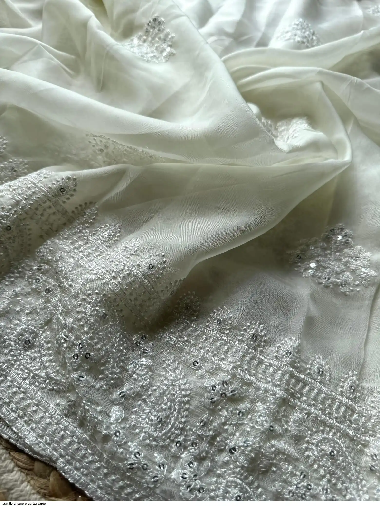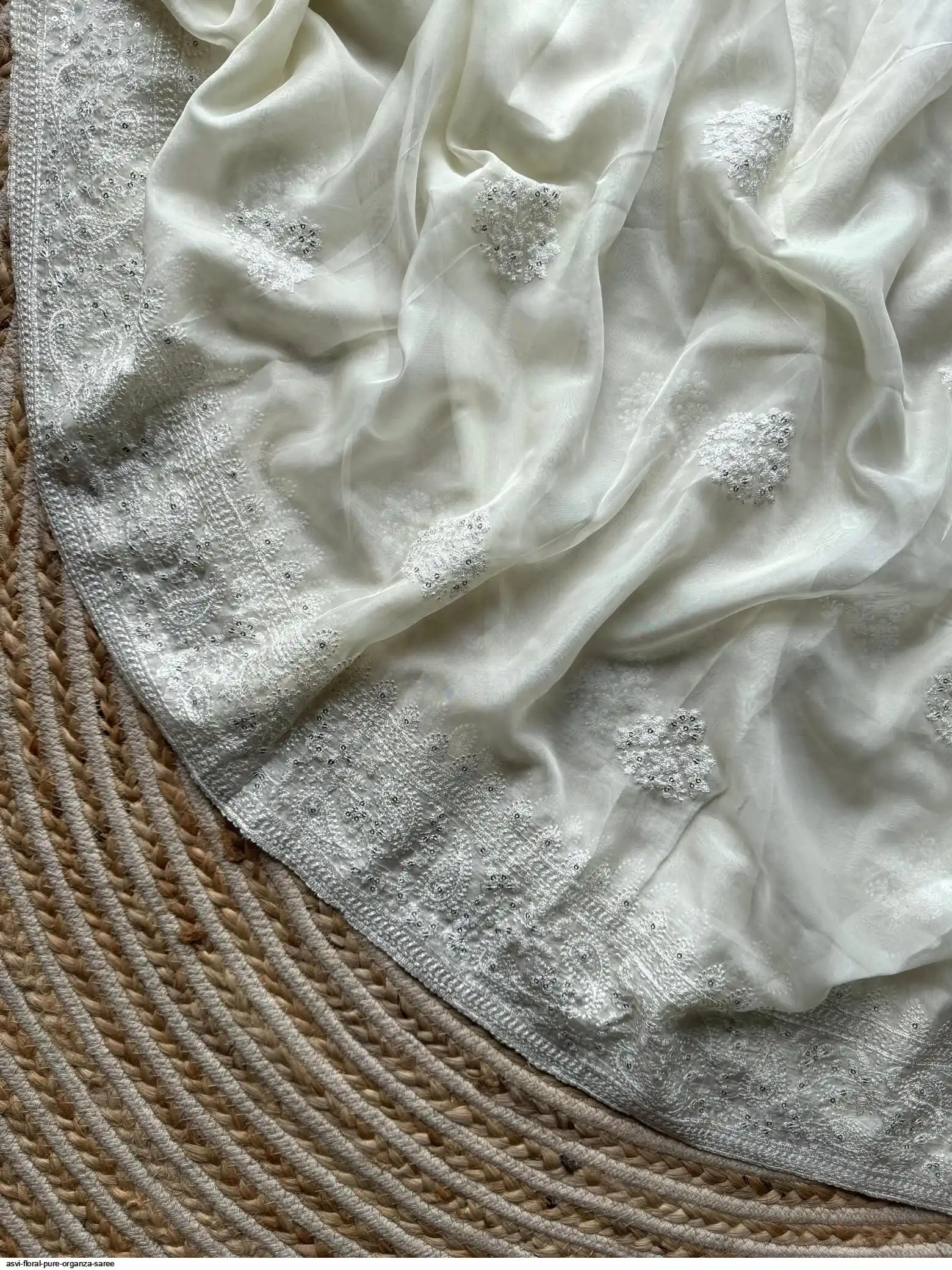 Exclusive pure organza silk with cutwork border and floral pattern beat this with summer