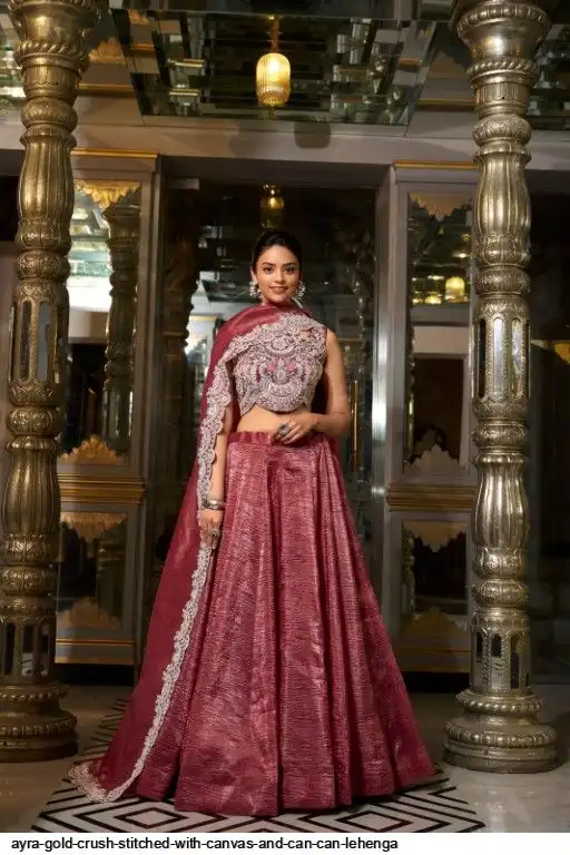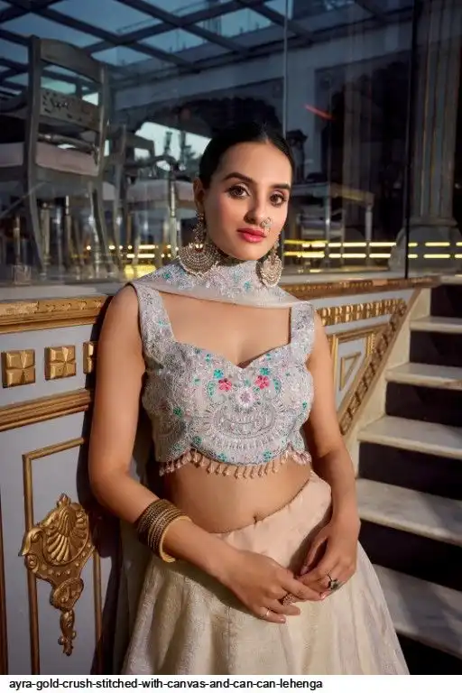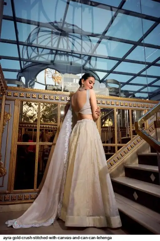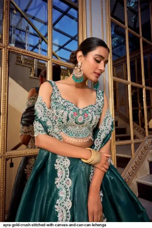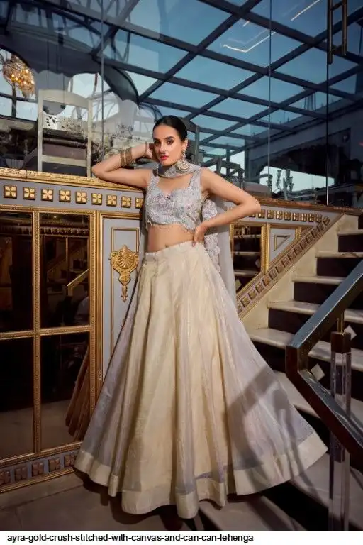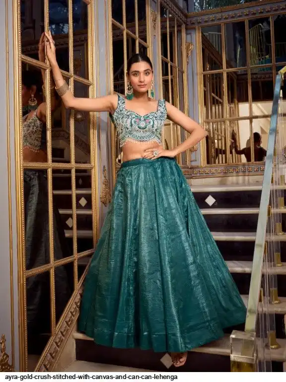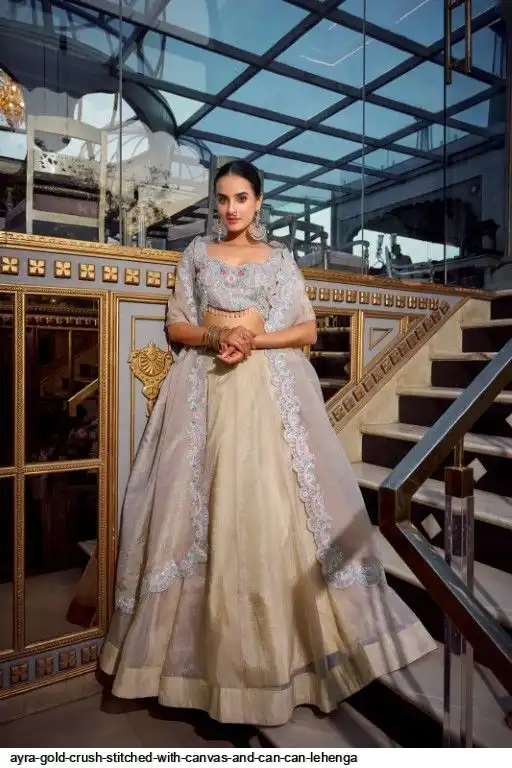 #lnblehenga #bridesmaidoutfit #goldcrush #lehengacollection #embroiderylehengacholi #lehengacholi #embroiderylehenga #goldcrushlehenga #partywear #choli #goldcrushfabric #royalweddingwear #simplelehenga #womendress #traditionalwithatwist #weddingwear #hotfixlehenga #weddinglehenga