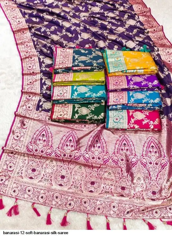 Saree :- Soft Banarasi silk saree with zari weaving Meenakari touchup design all over the saree & Meenakari weawing Rich pallu with Meenakari weawing Contrast border & Tessels attached at Pallu End.