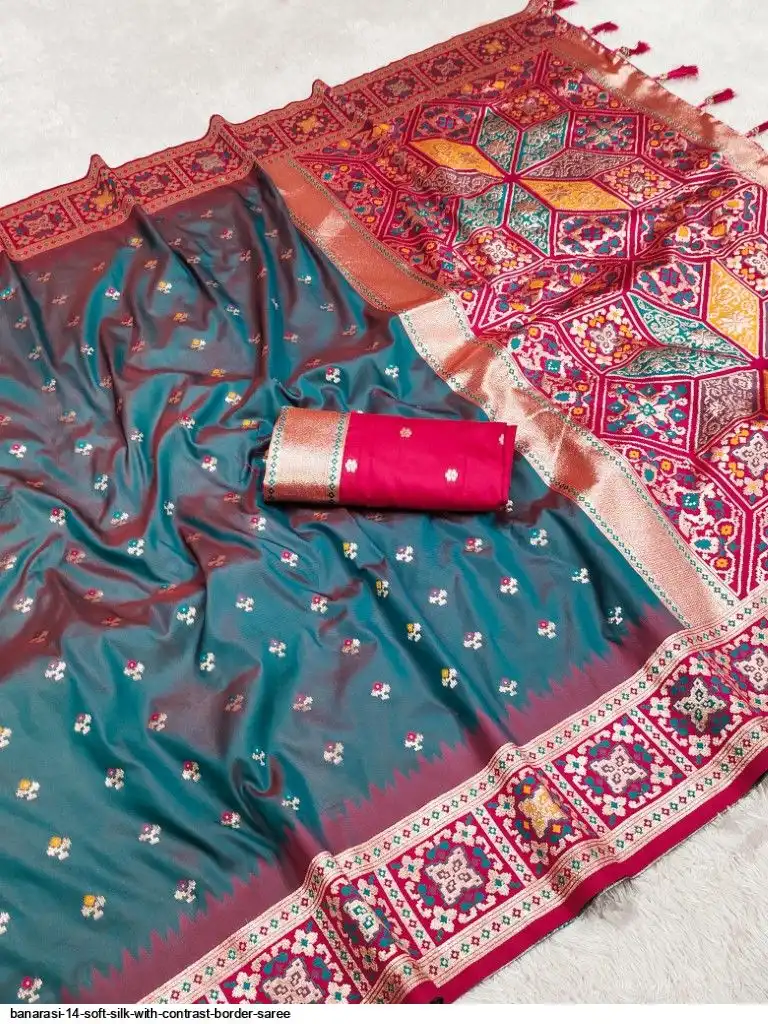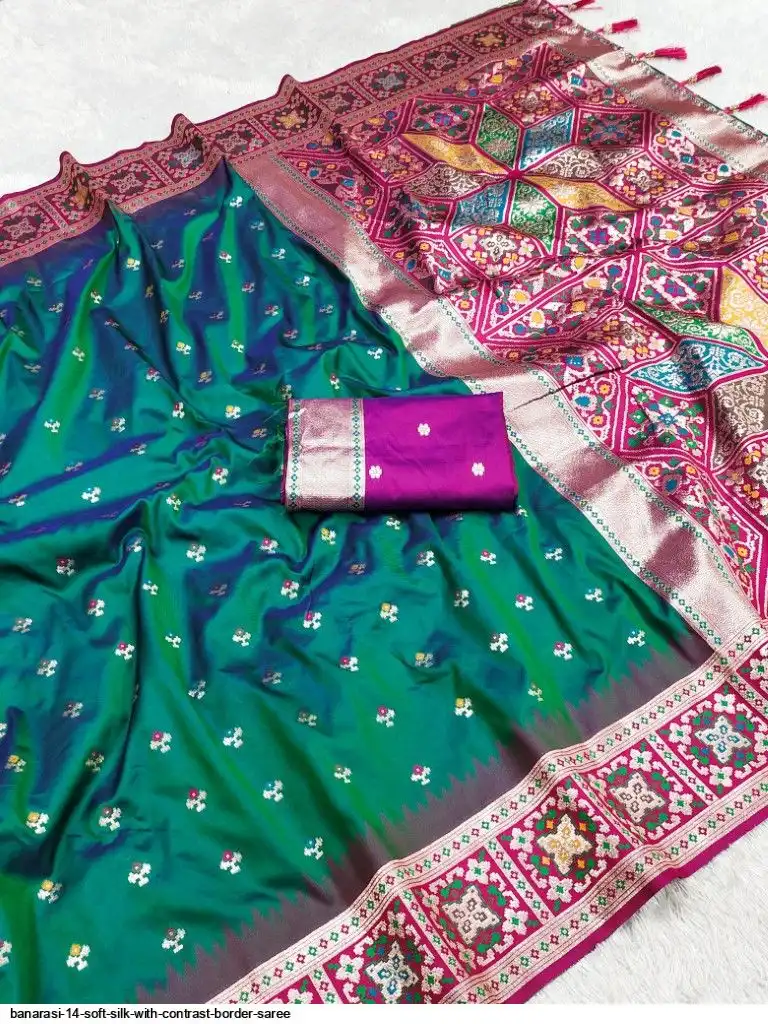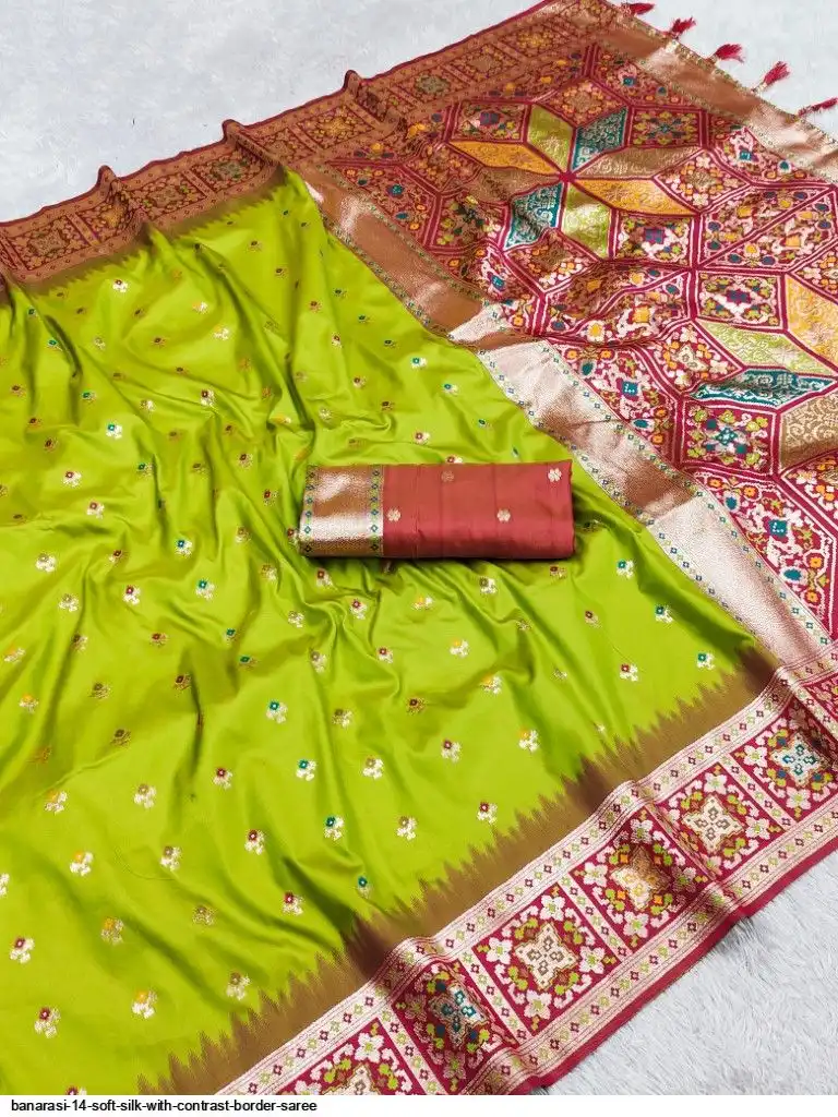 Blouse :- Soft silk weawing contrast blouse piece with sleeve border