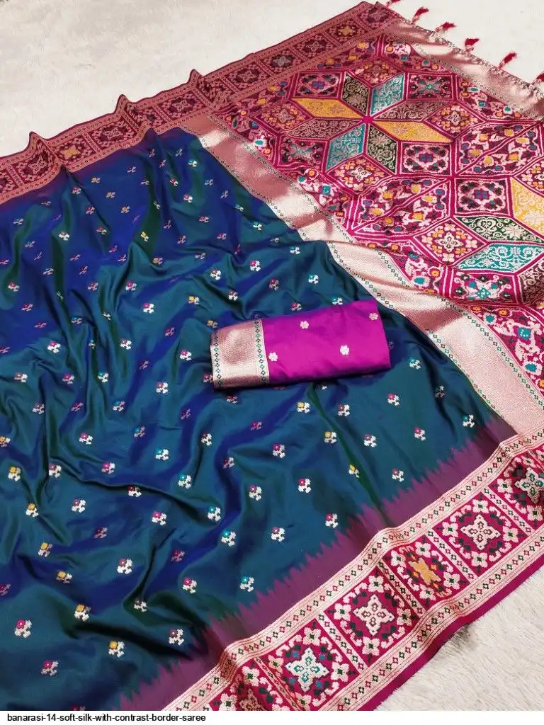 Saree :- Soft Banarasi silk saree with zari weaving Meenakari touchup design all over the saree & Meenakari weawing Rich pallu with Meenakari weawing Contrast border & Tassels attached at Pallu End.