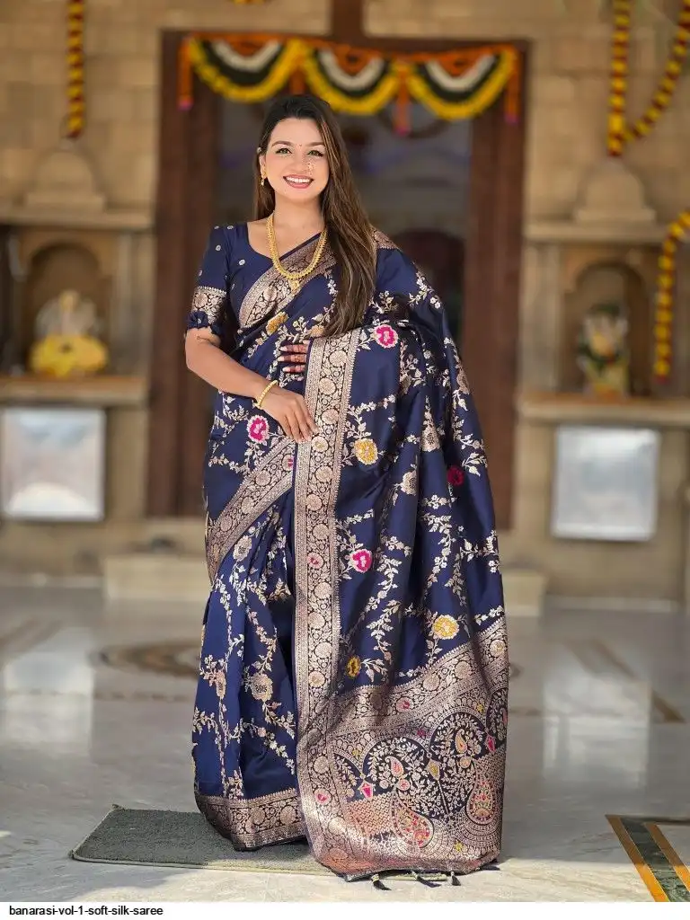 Saree :- Soft Banarasi silk saree with zari weaving Meenakari touchup design all over the saree & Meenakari weawing Rich pallu with Meenakari weawing border & Tassels attached at Pallu End.