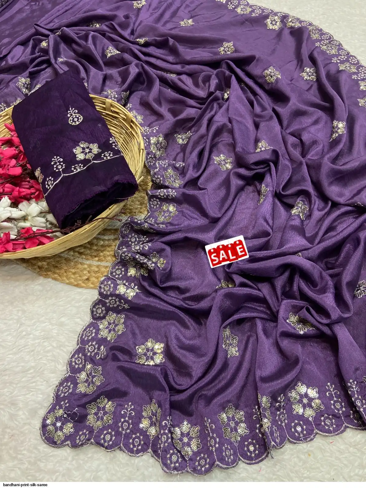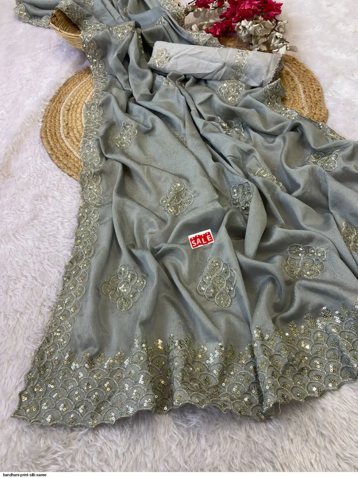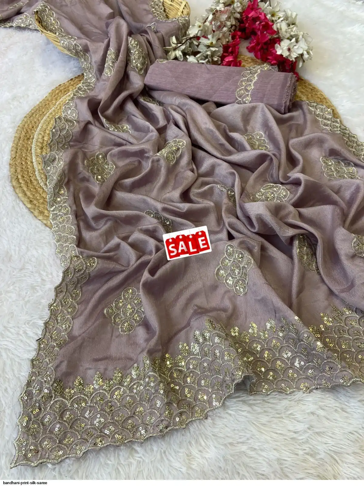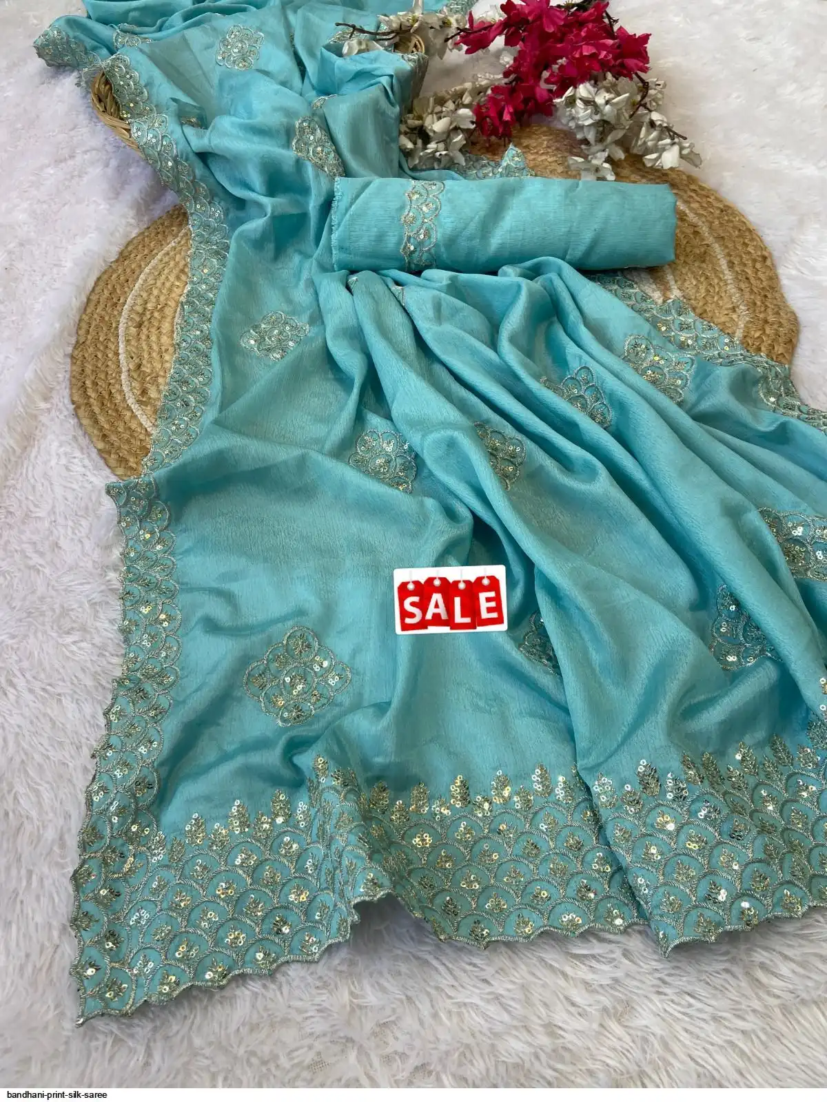 SAREE FABRIC CHINON SILK STAR GEORGETTE AND GEORGETTE BANDHANI PRINT ALL DESIGN HEAVY MULTI AND SEQUANCE C PALLU WORK DONE