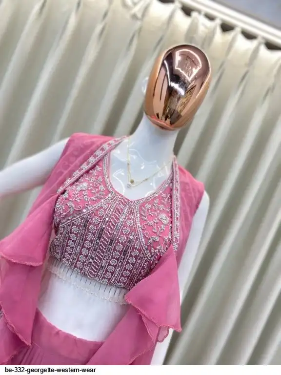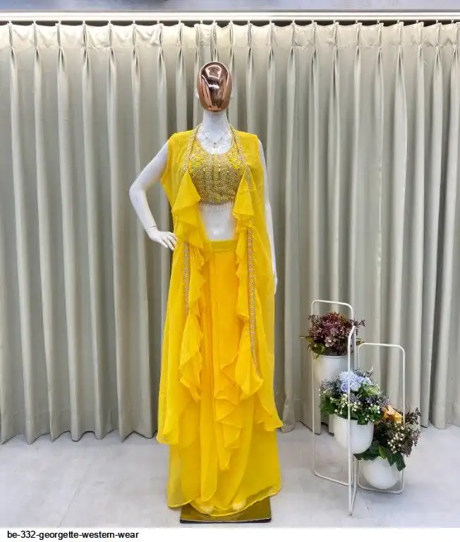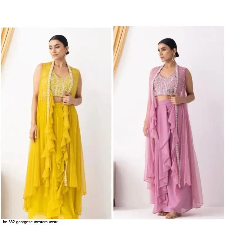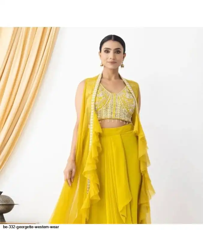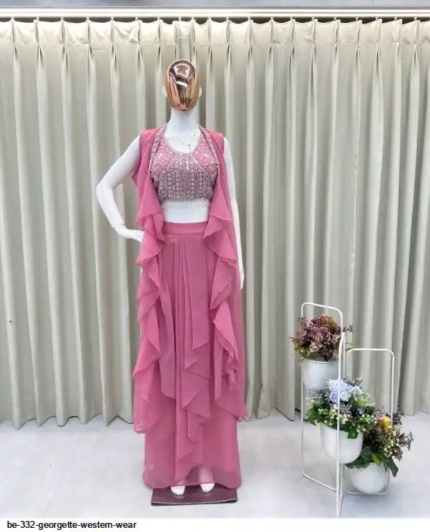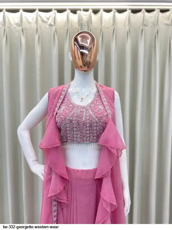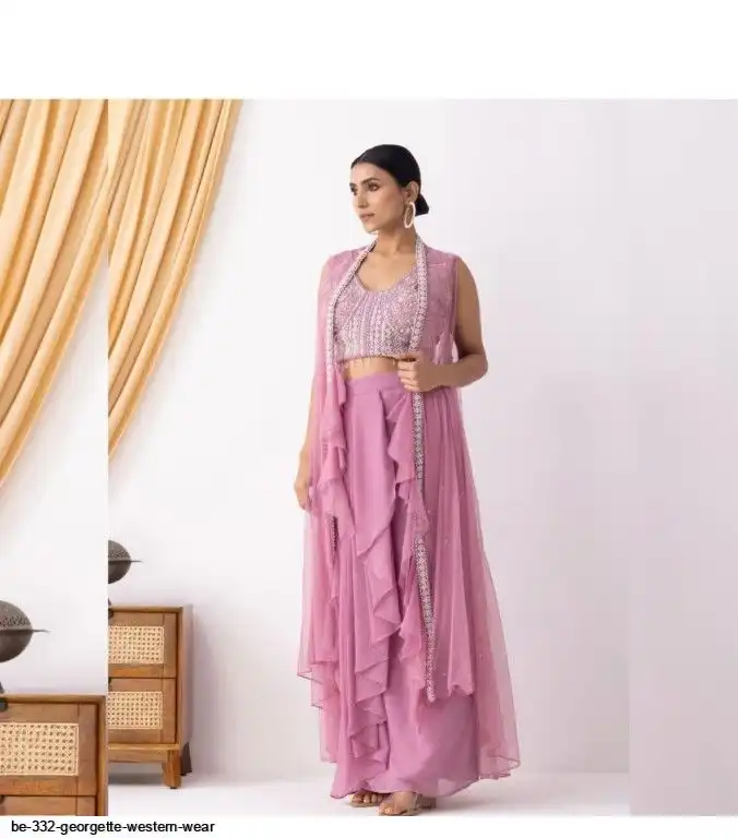 # KOTI : GEORGETTE WITH EMBROIDERY SEQUANCE BEADS WORK AND RUFFLES ( FREE SIZE)