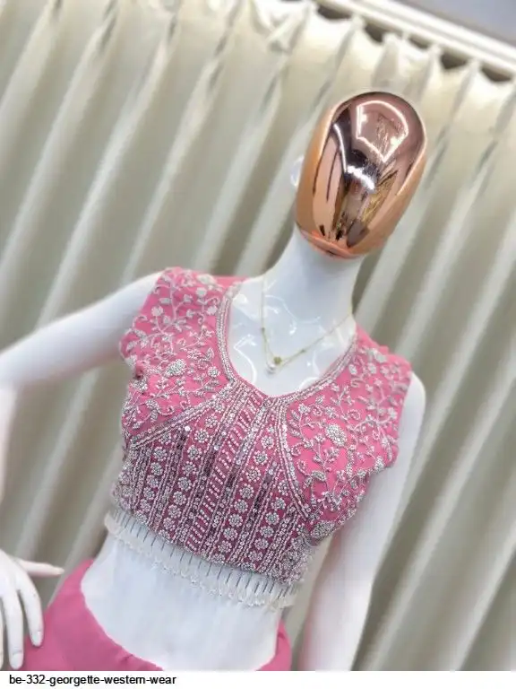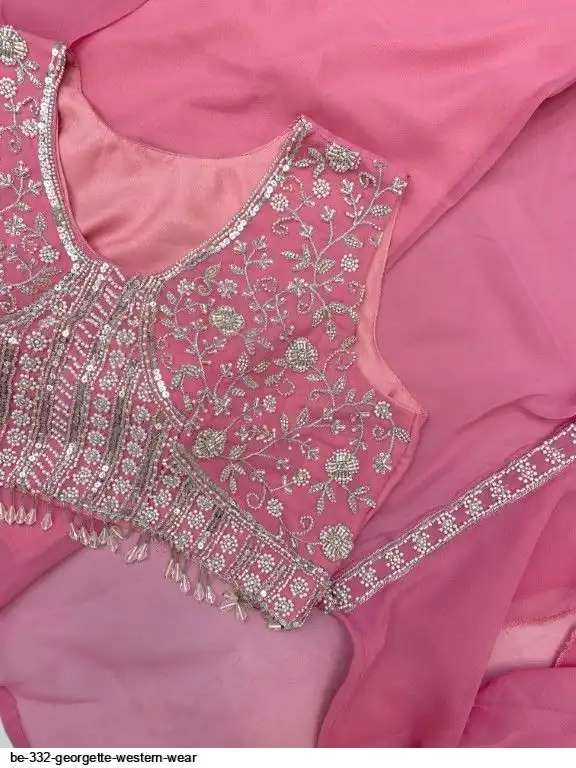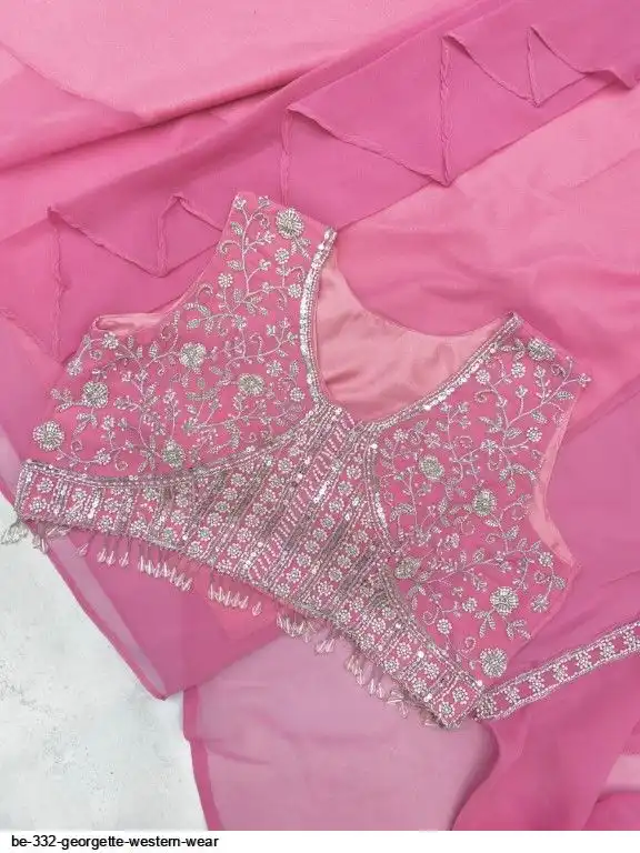 # BLOUSE: GEORGETTE WITH EMBROIDERY BEADS SEQUANCE WORK WITH HEAVY LACE WORK