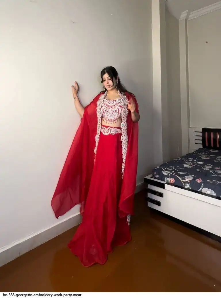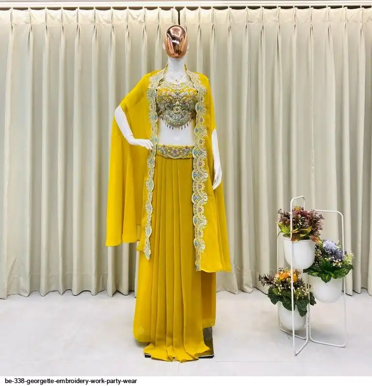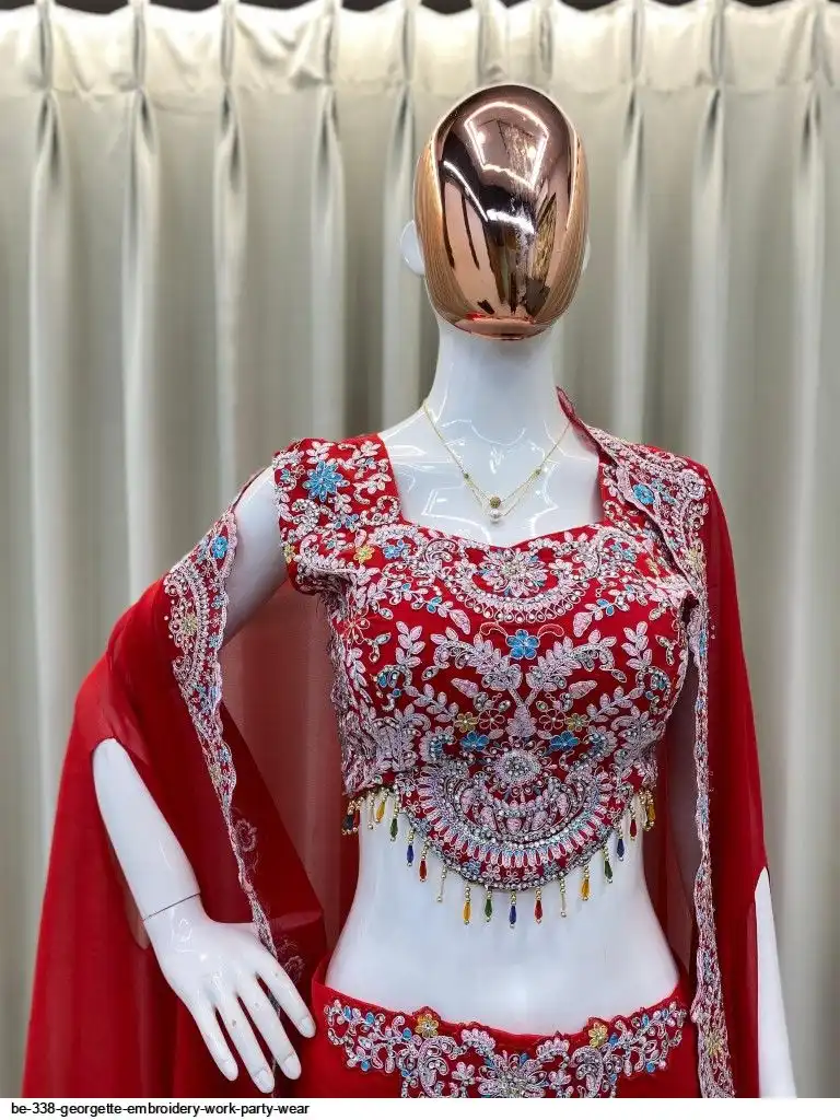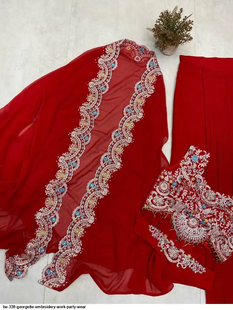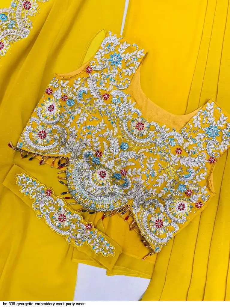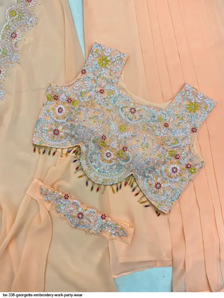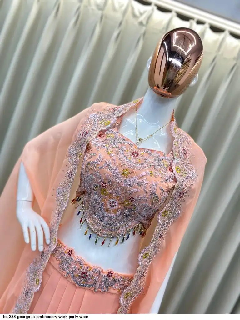 #WORK : SEQUENCE EMBROIDERY WORK WITH DIAMOND ON FRONT MULTI COLOR CRYSTAL LATKAN LACE ON BORDER