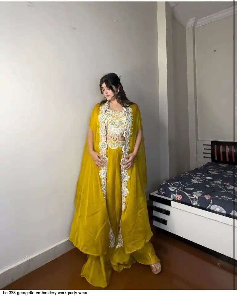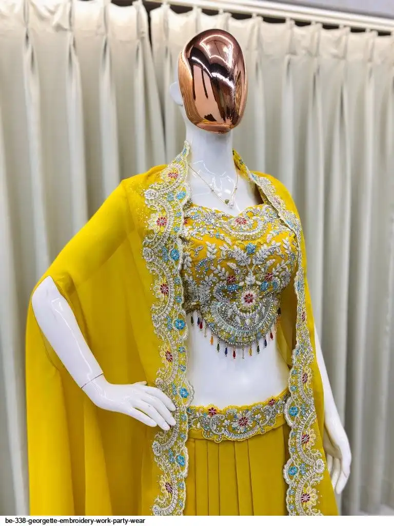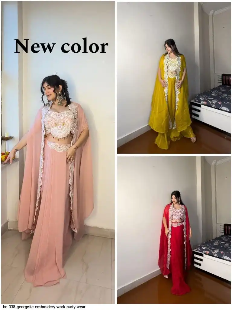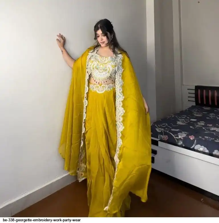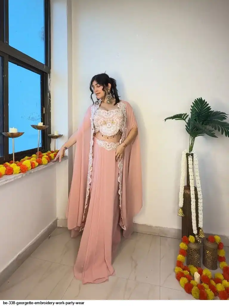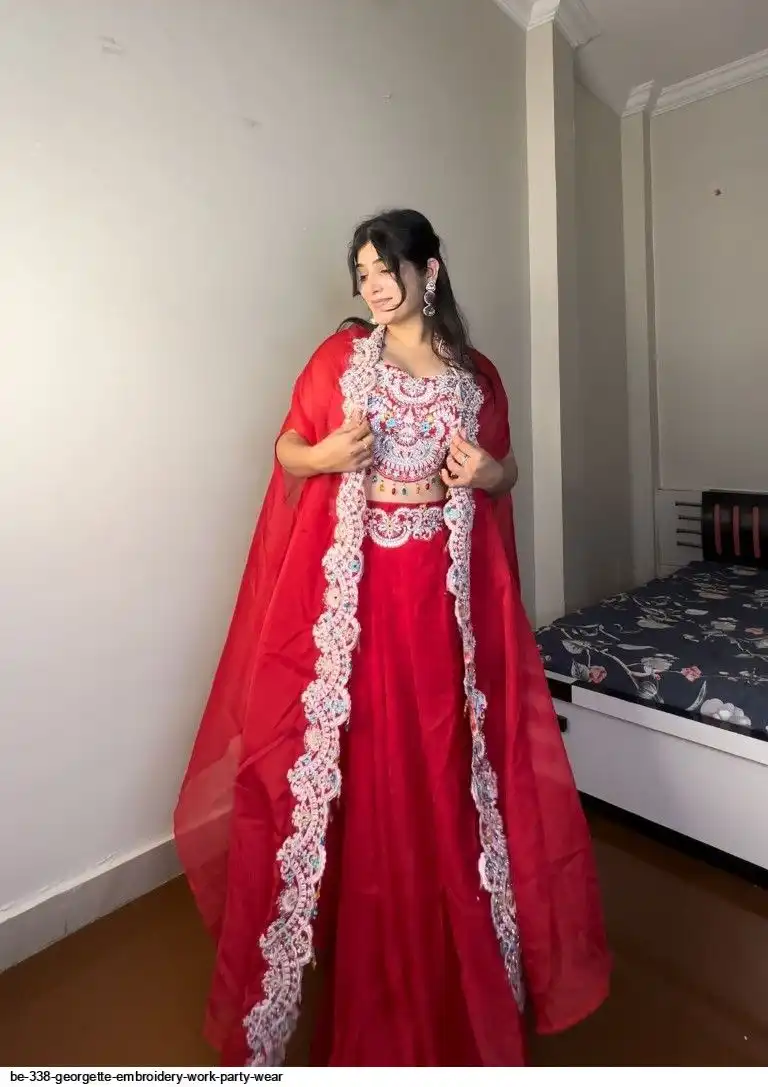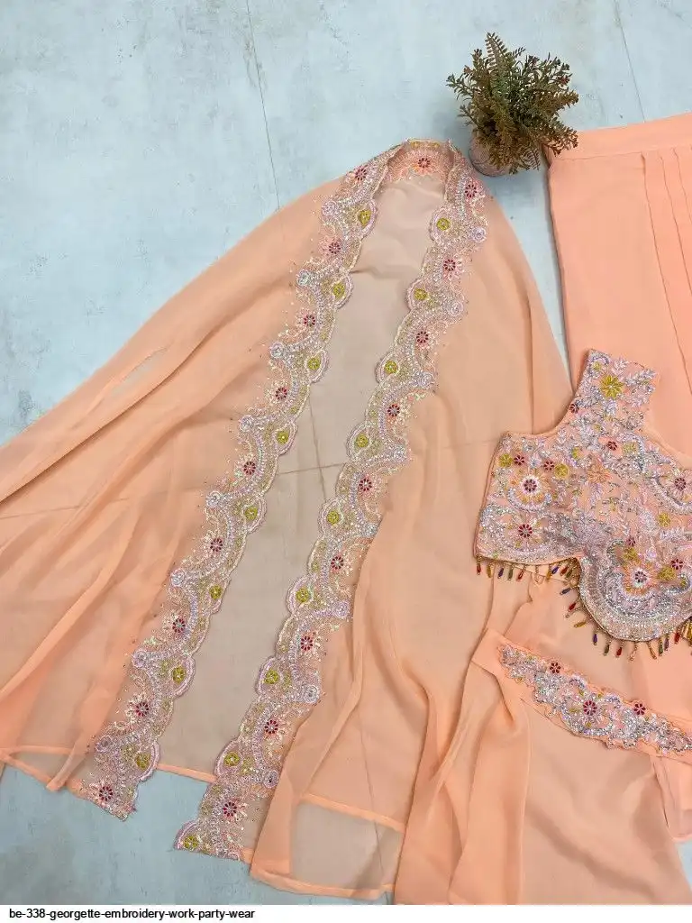 #WORK : SEQUENCE EMBROIDERY WORK WITH DIAMOND ON FRONT MULTI COLOR CRYSTAL LATKAN LACE ON BORDER