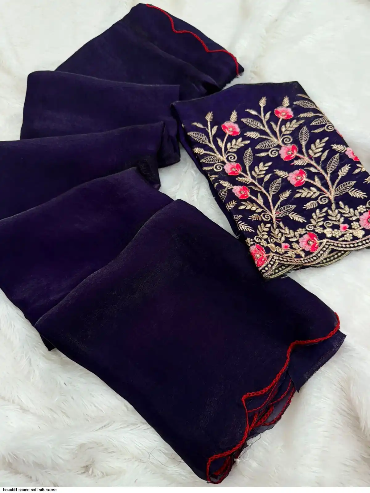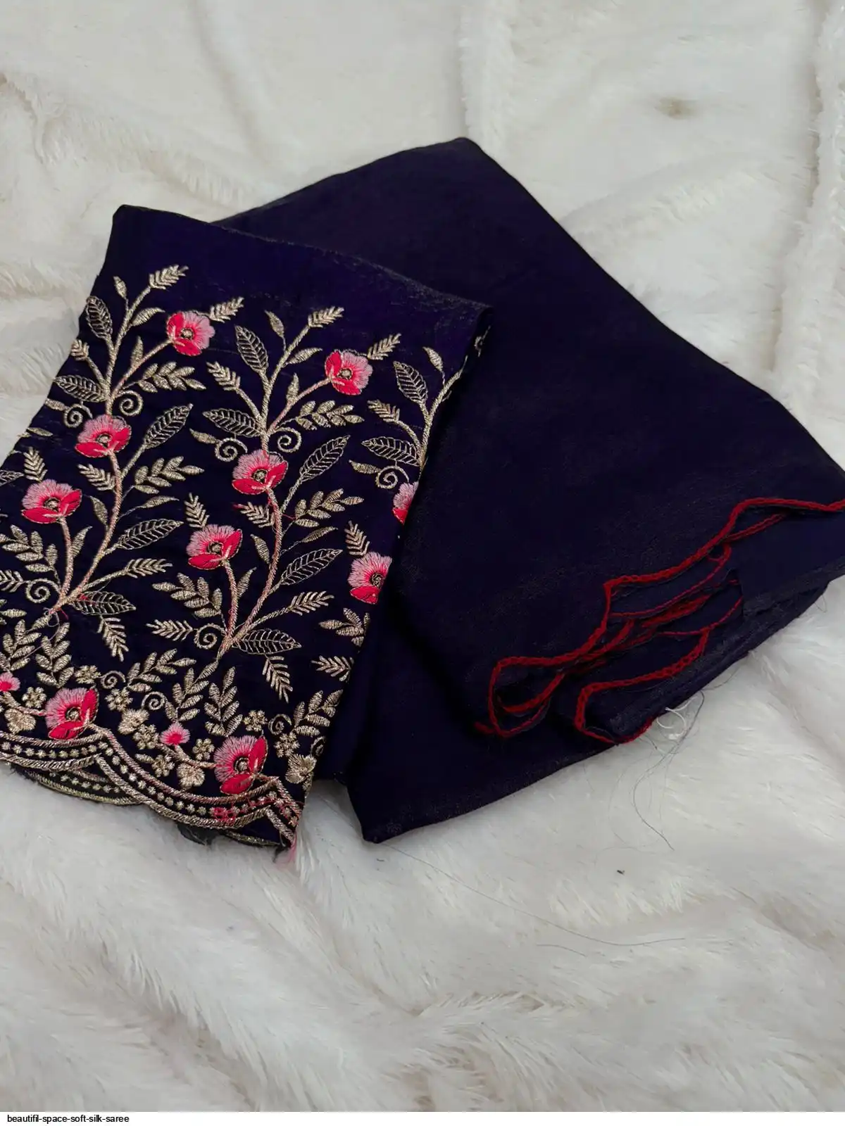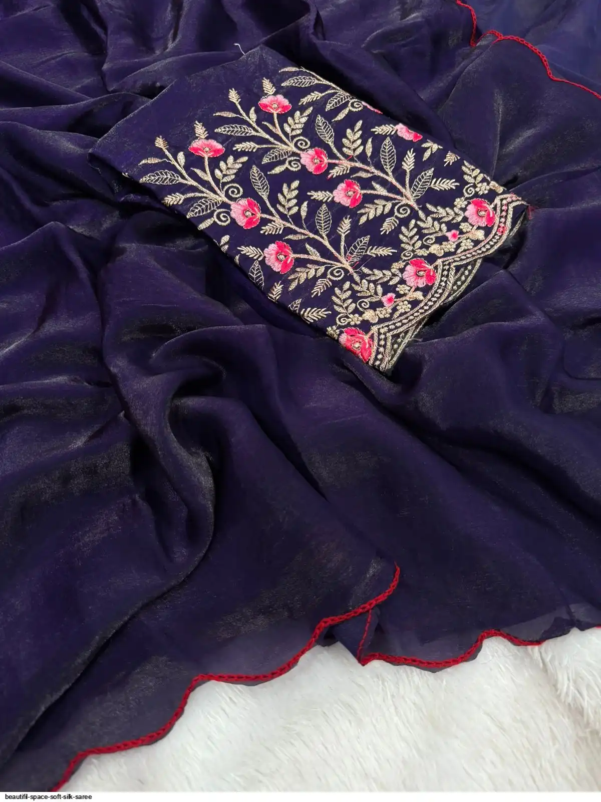 Space Soft Silk Saree Multi Embroidered Work Blouse