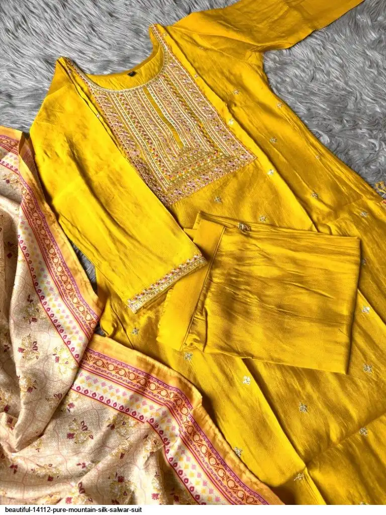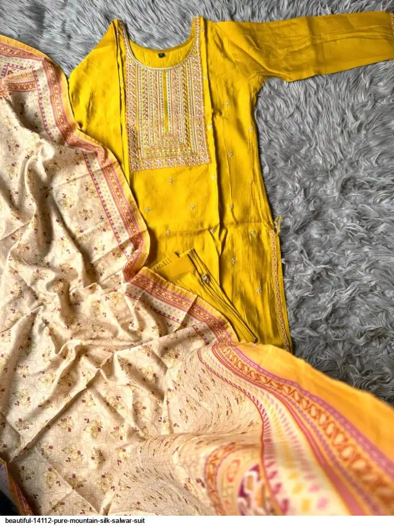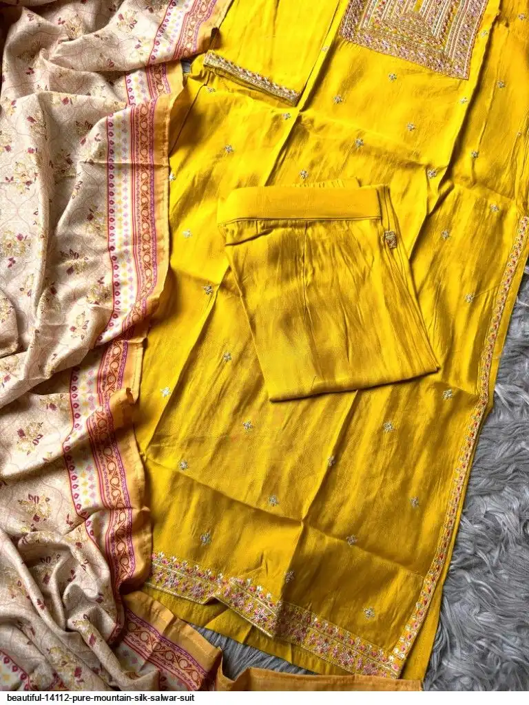 Top :- Pure Mountain Silk Soft Fabric With Heavy Sequnce Multy Thread Work