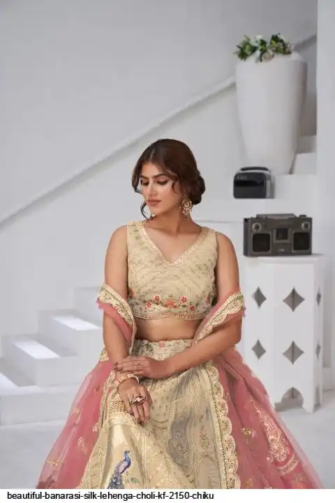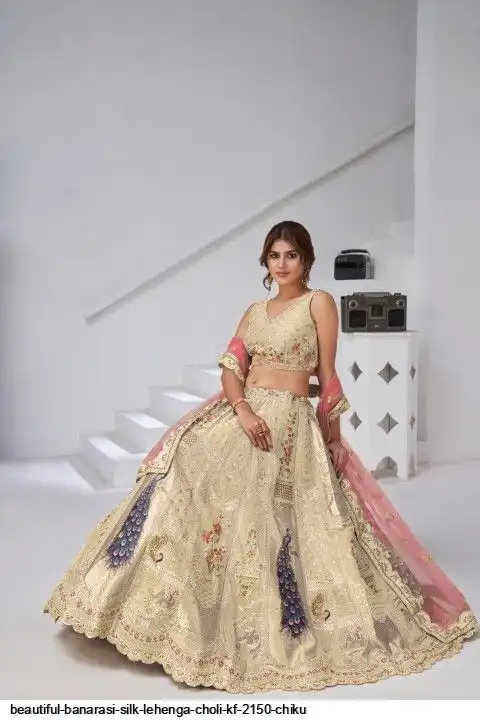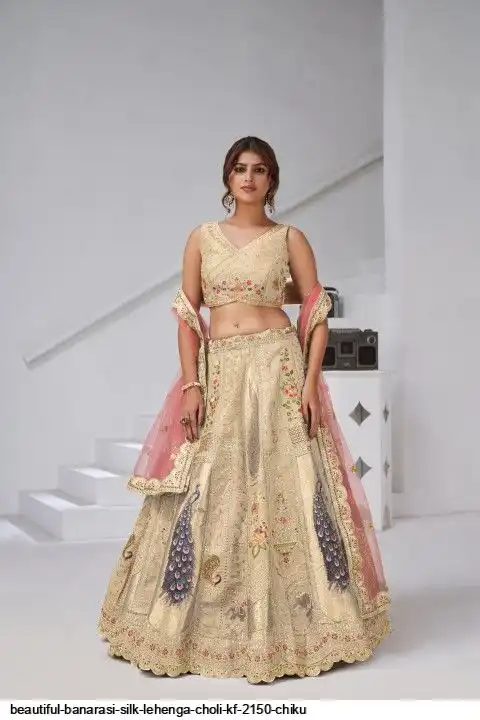 BEAUTIFUL BANARASI SILK LEHENGA CHOLI KF 2150 CHIKU