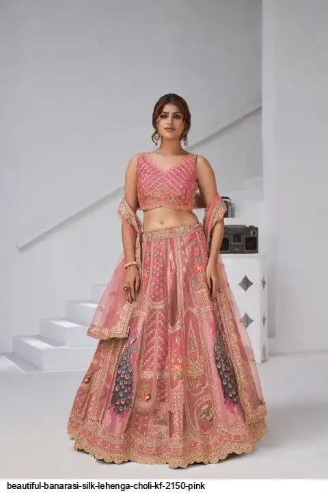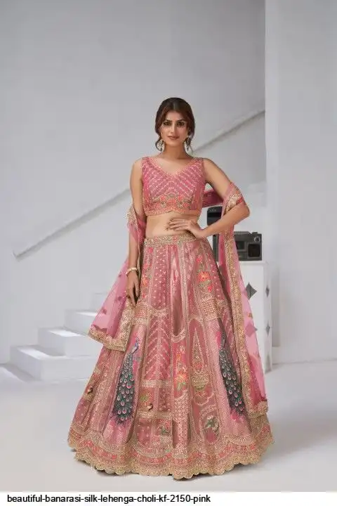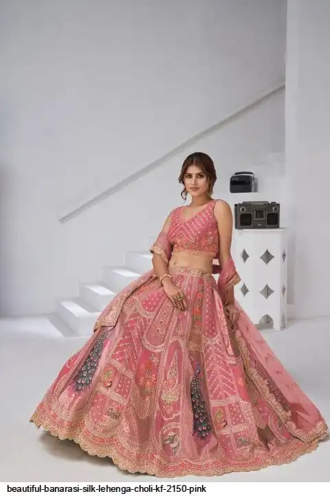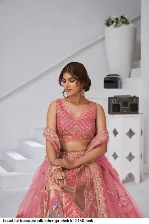 BEAUTIFUL BANARASI SILK LEHENGA CHOLI KF 2150 PINK
