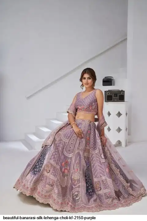 BEAUTIFUL BANARASI SILK LEHENGA CHOLI KF 2150 PURPLE