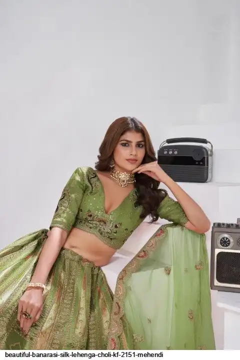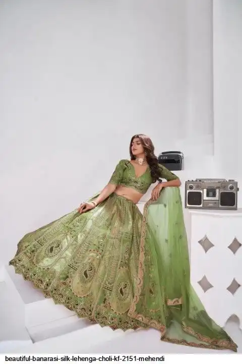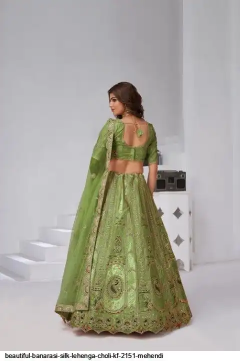 BEAUTIFUL BANARASI SILK LEHENGA CHOLI KF 2151 MEHENDI