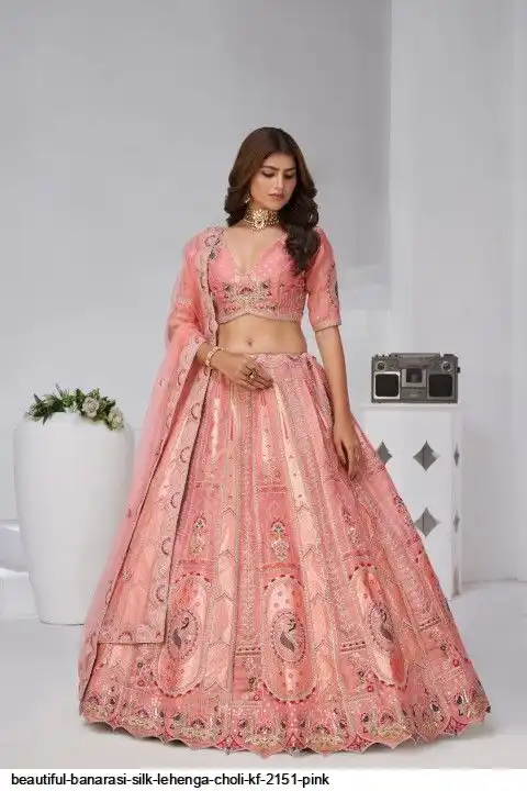 BEAUTIFUL BANARASI SILK LEHENGA CHOLI KF 2151 PINK