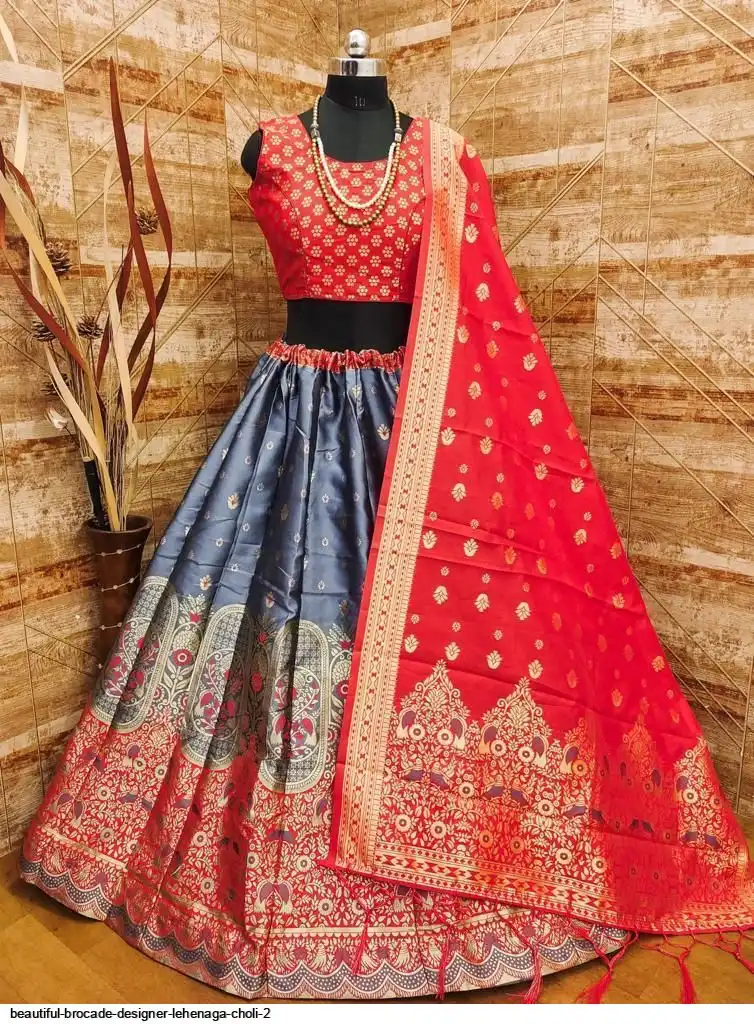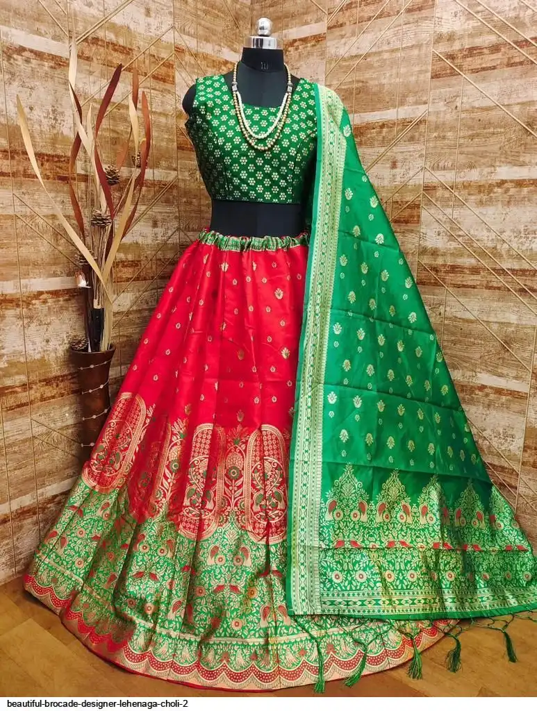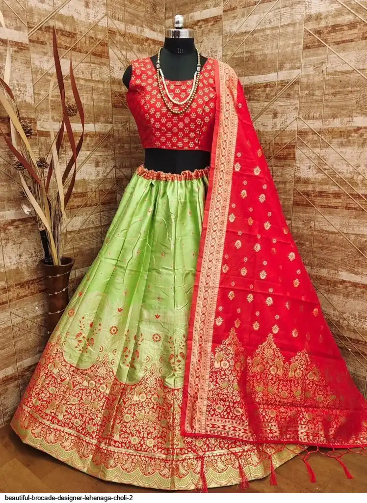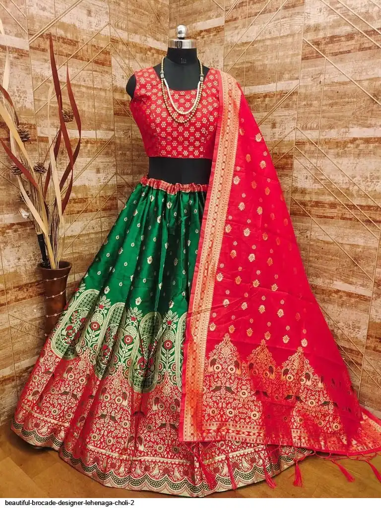 Lehnga : Brocade fabric lehengha with inner , cancan & canvas_ semi stitch Size - upto 42, length - 42