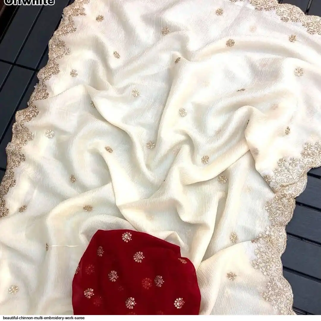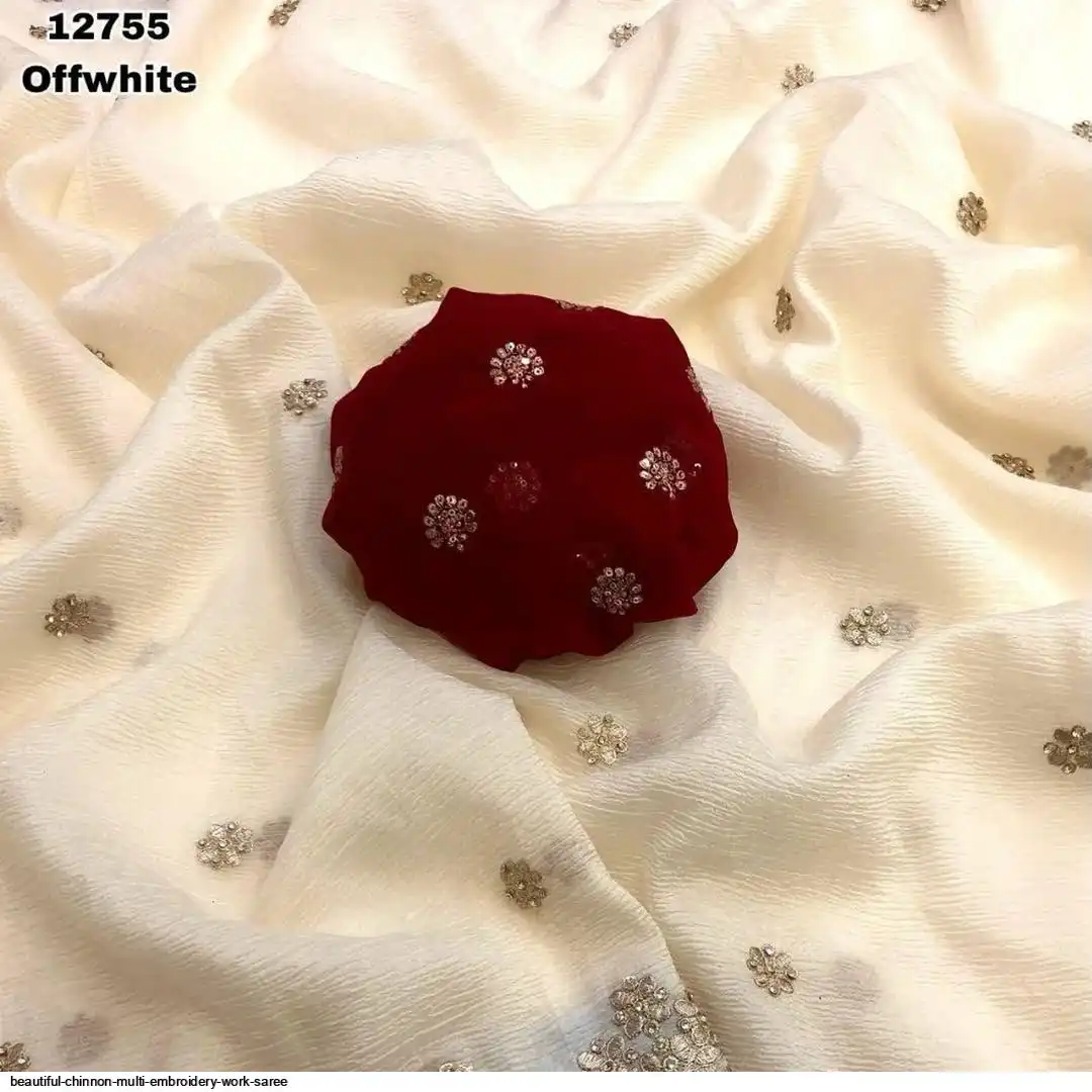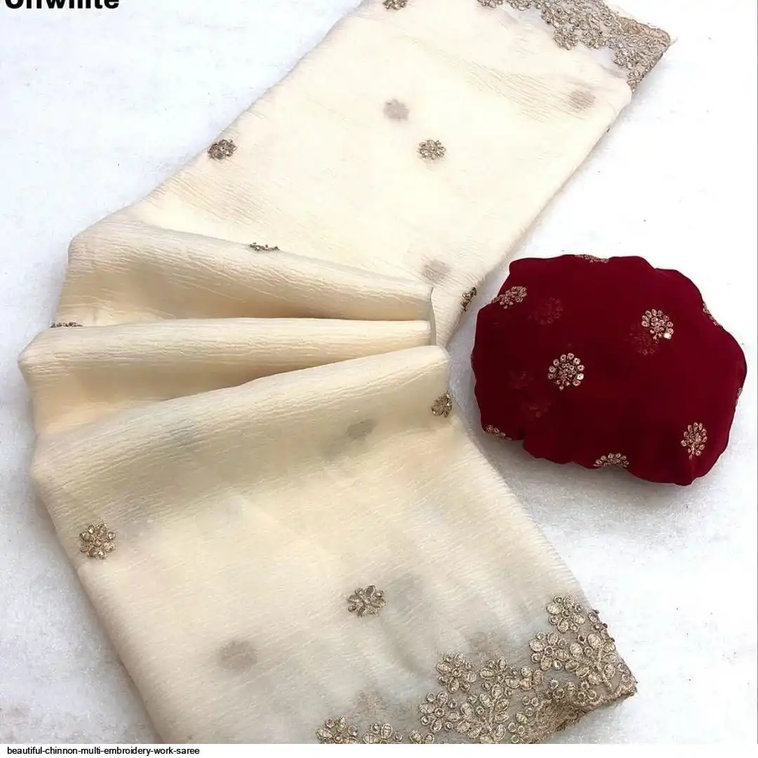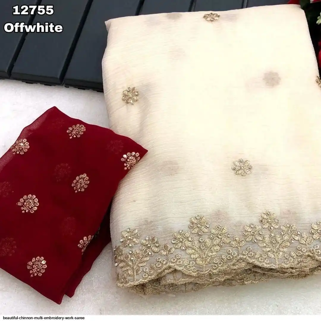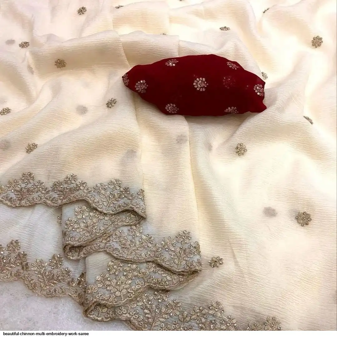 Candy Crush Chiffon Multi Embroidery Work Saree With Running Blouse