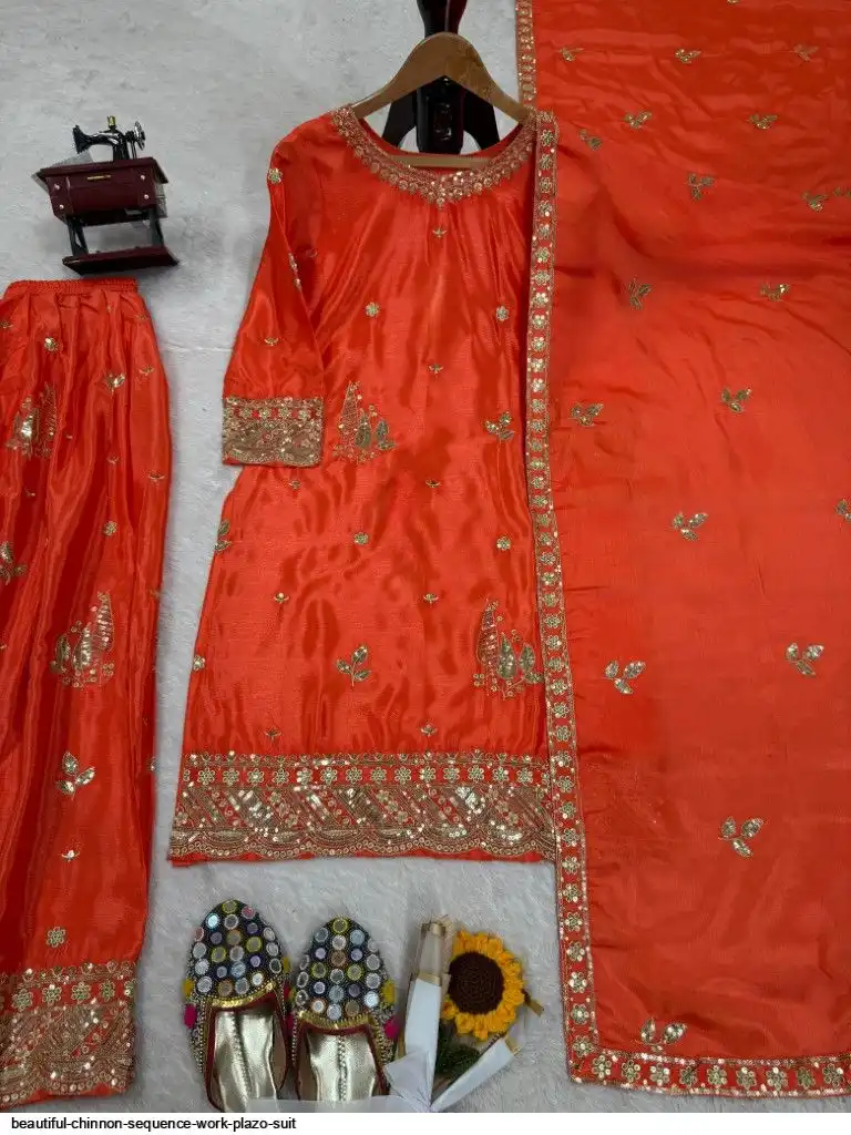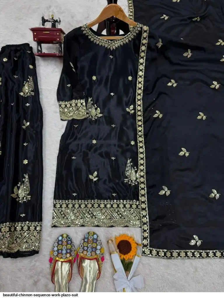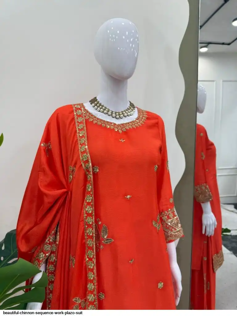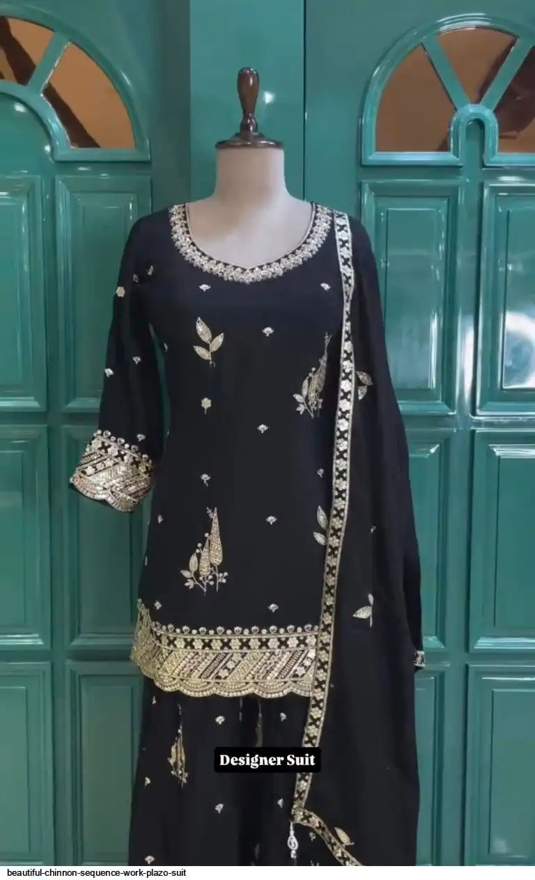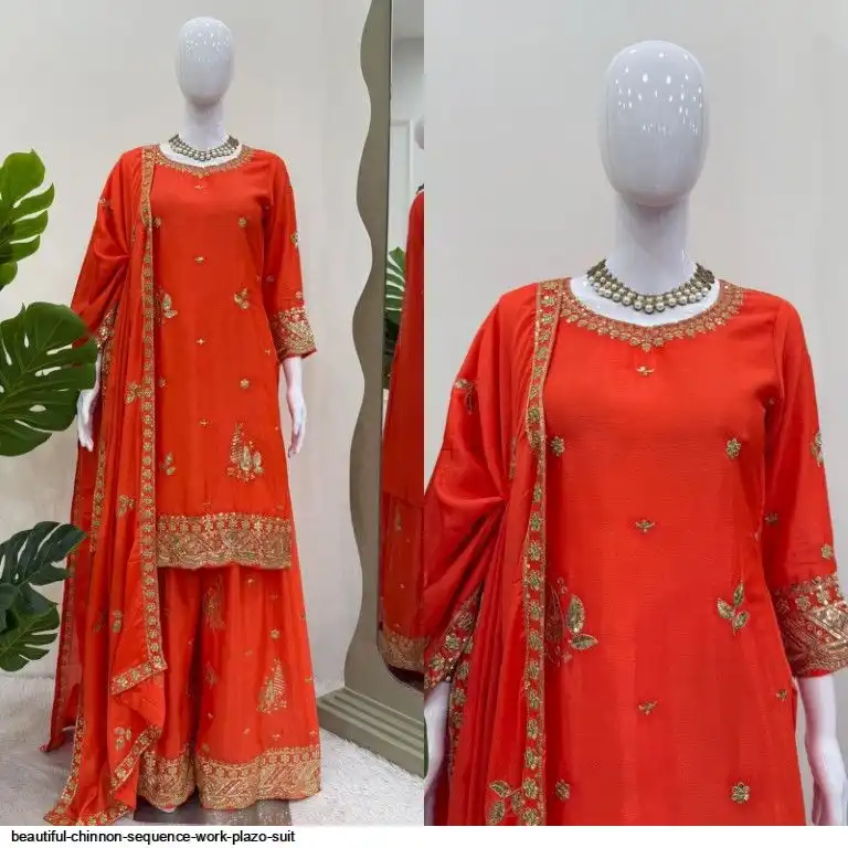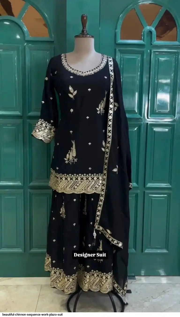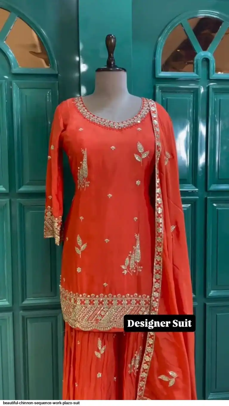 Looking for this same colour beautiful Designer Suit on Chinon Silk febric With Thred & Sequnce work and Plazoo On also Chinon Silk Febric With Thred & Sequnce work Dupatta on also Chinon Silk Febric with Thred & Sequnce work.