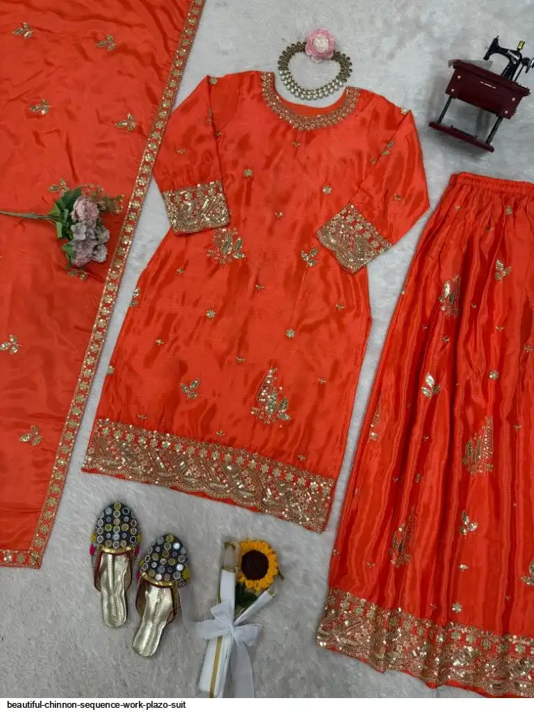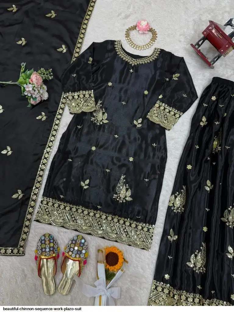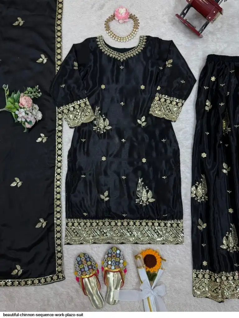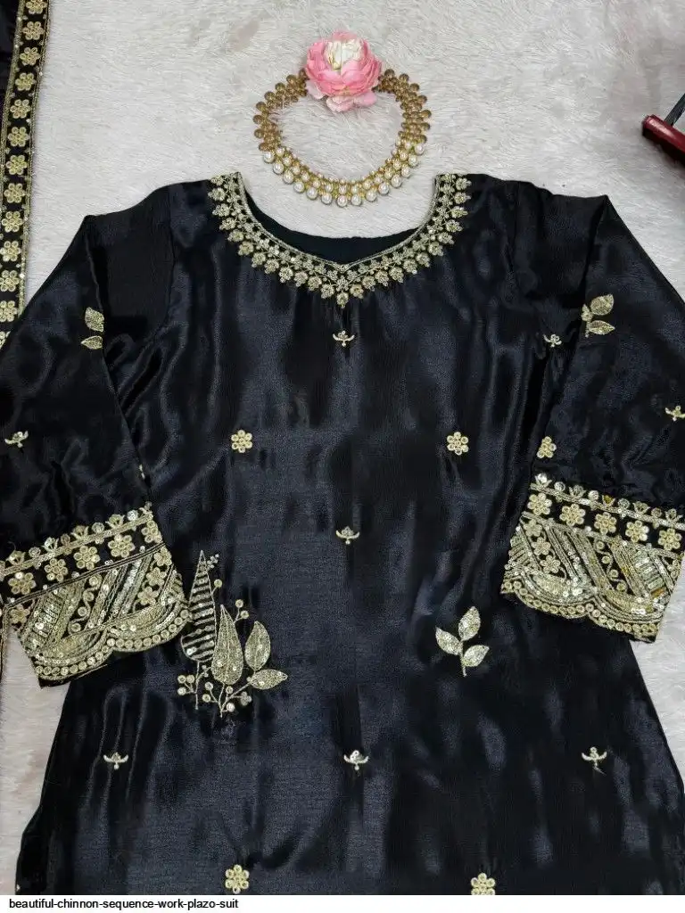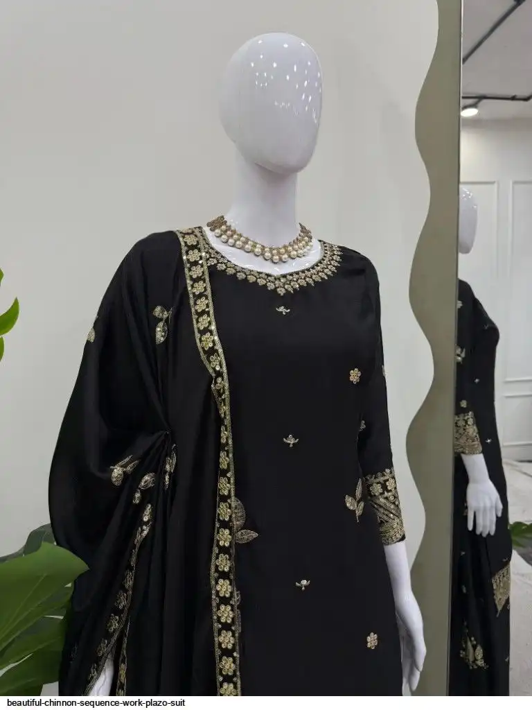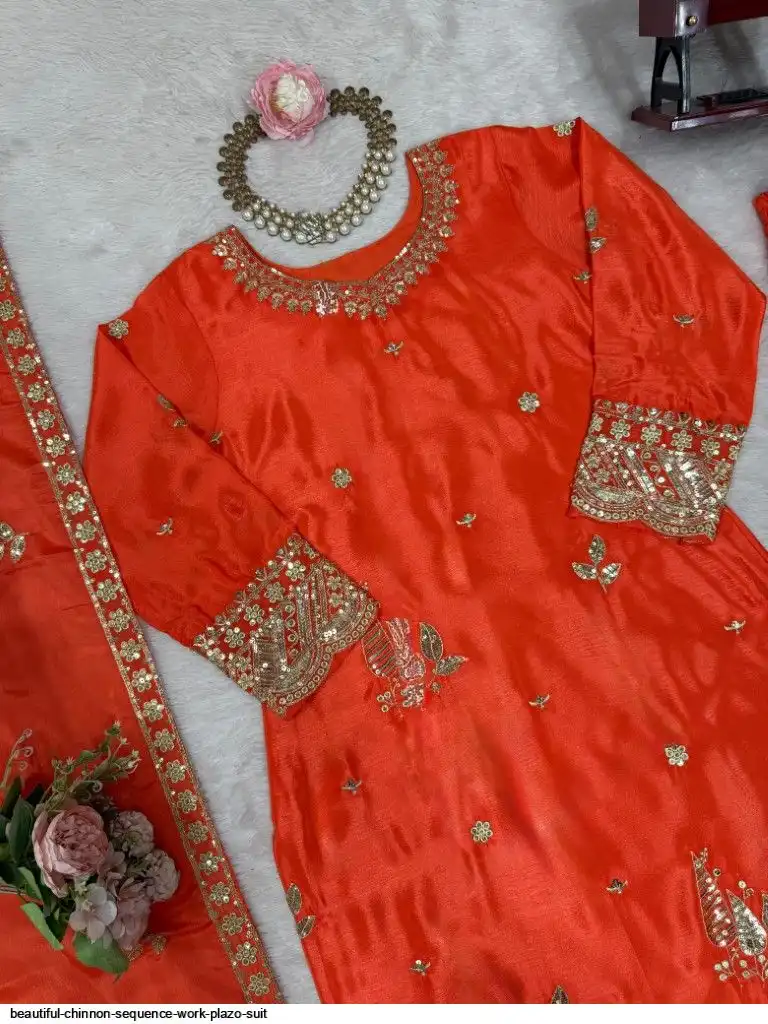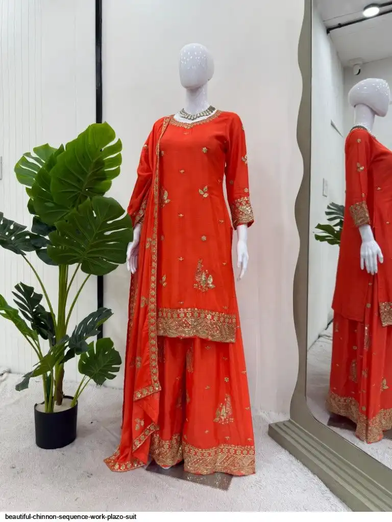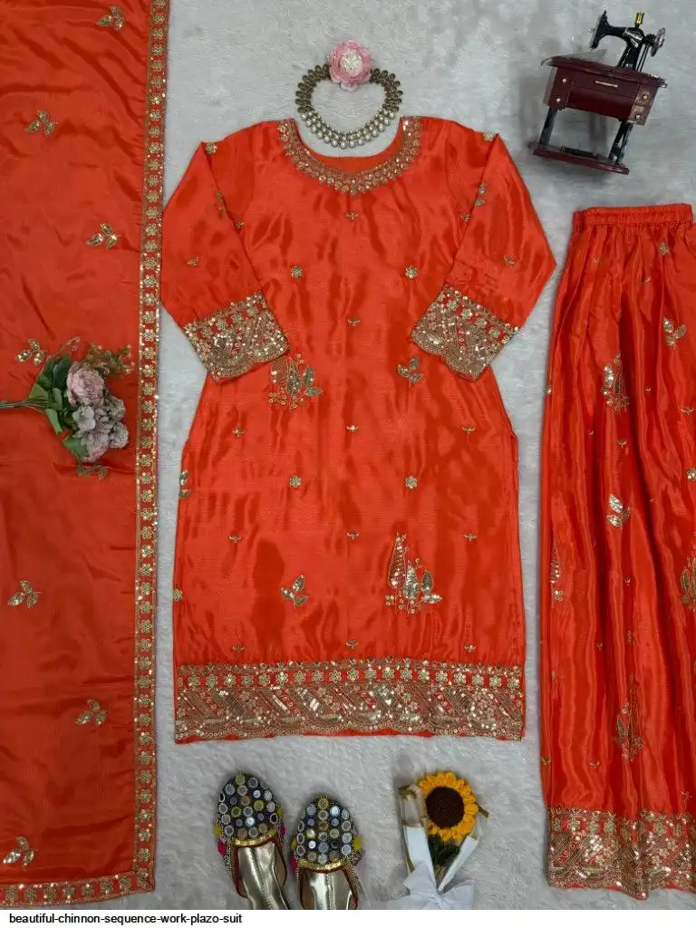 Looking for this same colour beautiful Designer Suit on Chinon Silk febric With Thred & Sequnce work and Plazoo On also Chinon Silk Febric With Thred & Sequnce work Dupatta on also Chinon Silk Febric with Thred & Sequnce work.