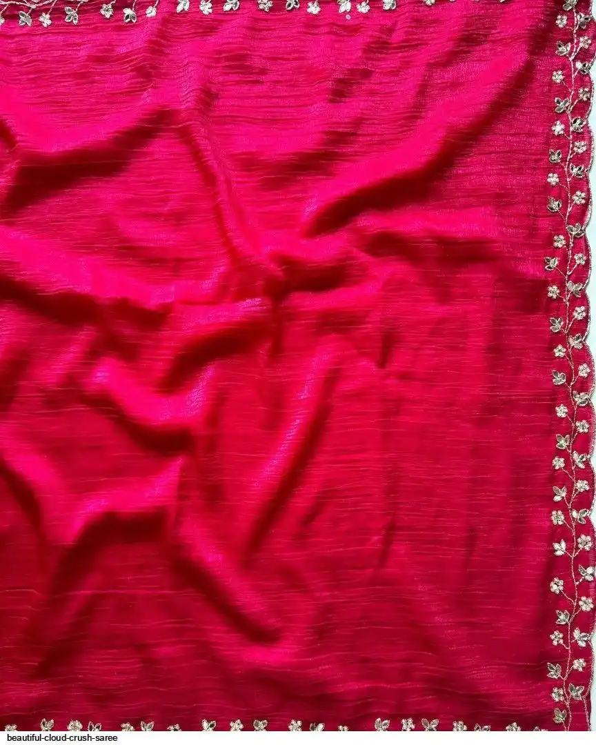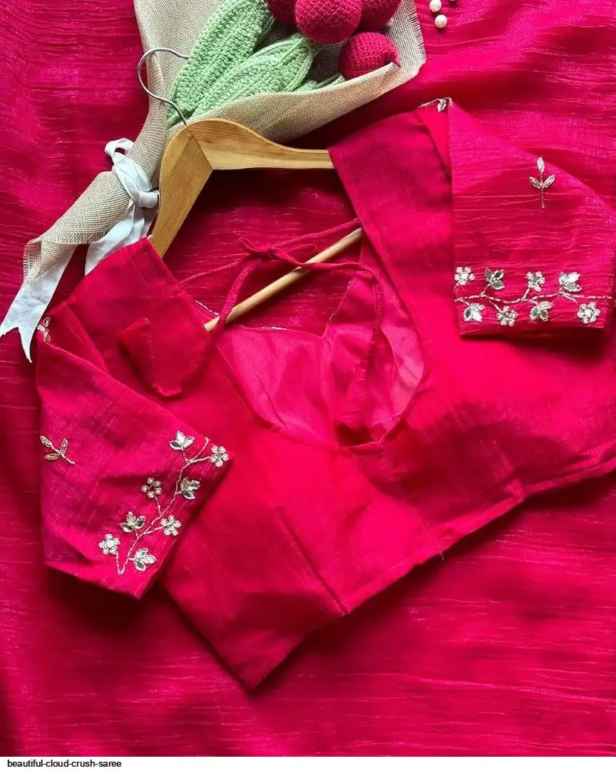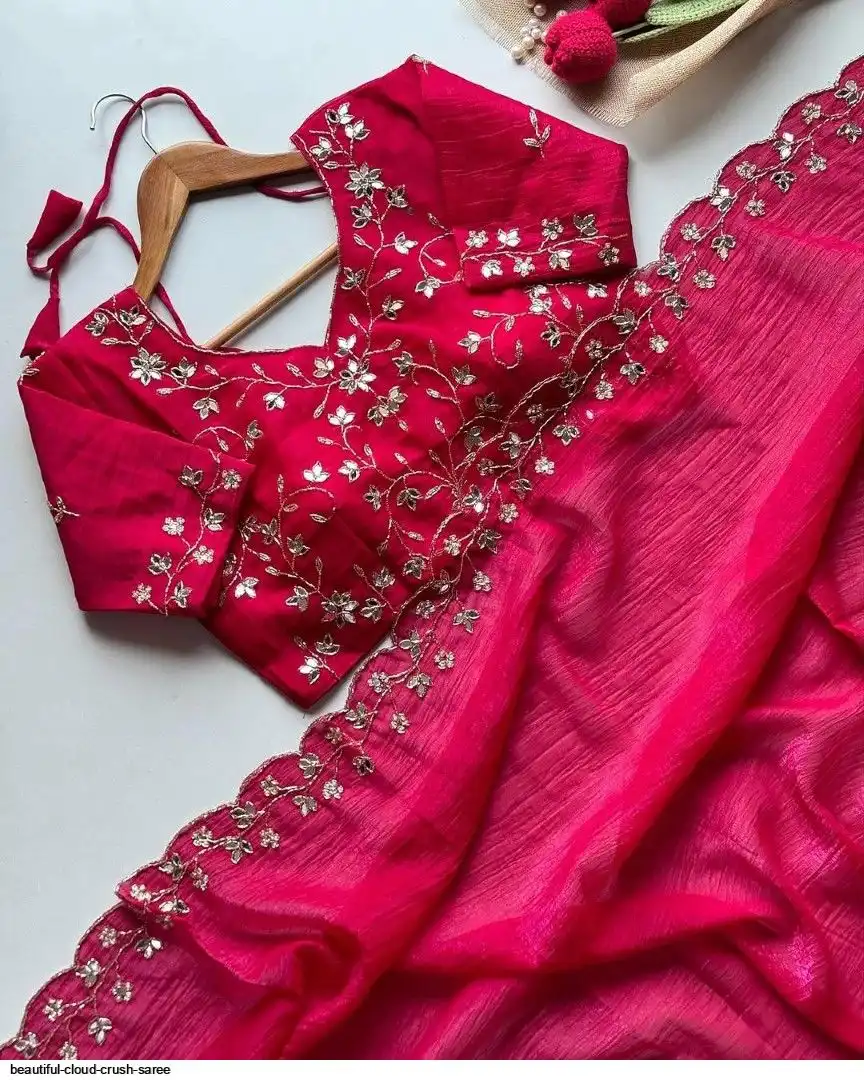 Beautiful handwork all over cloud crush saree and running unstitch blouse with handwork