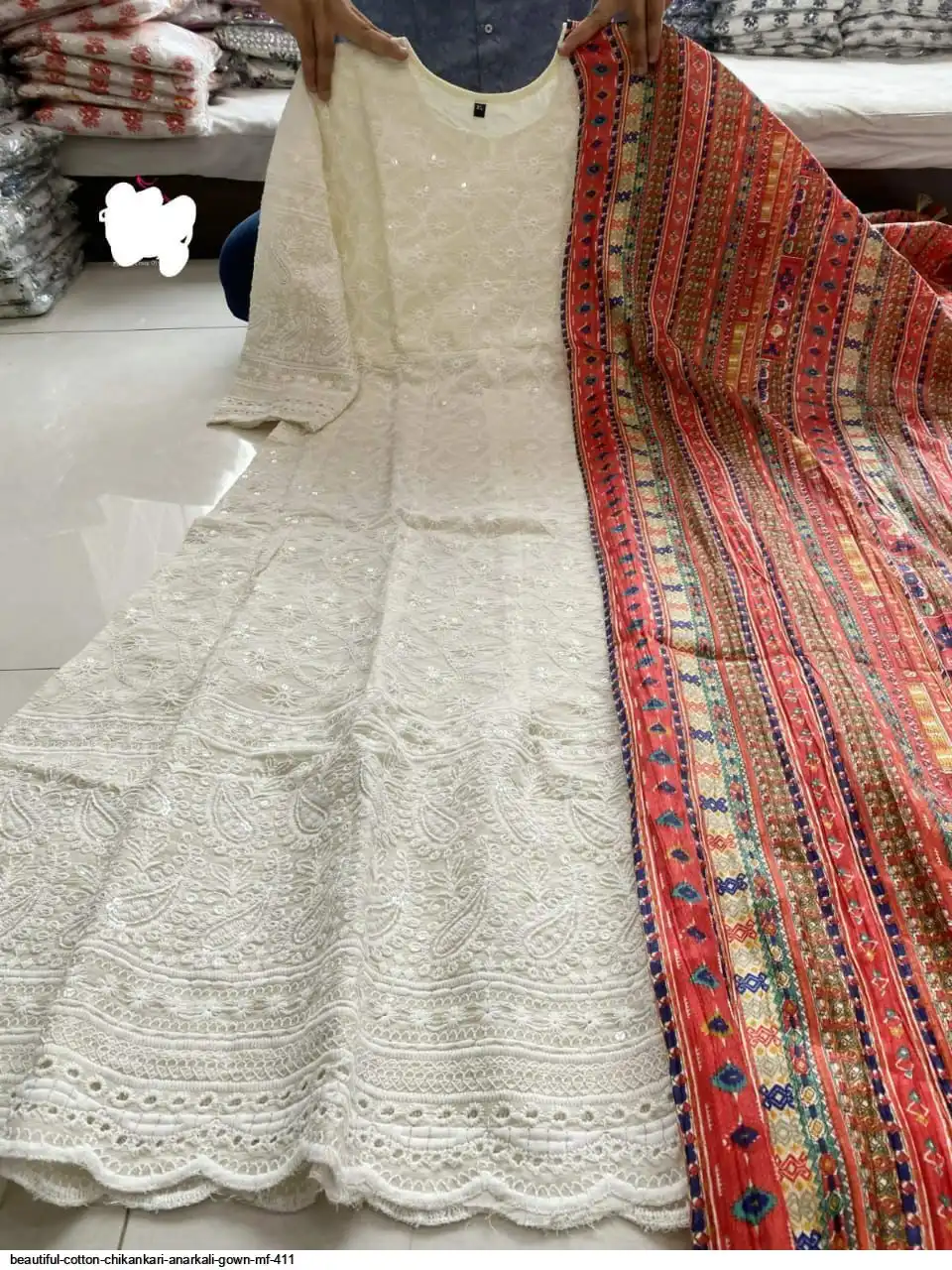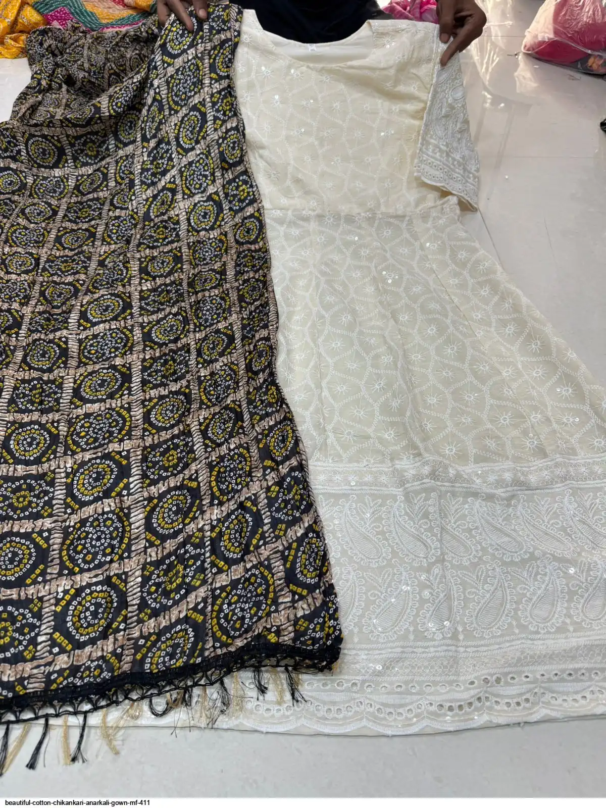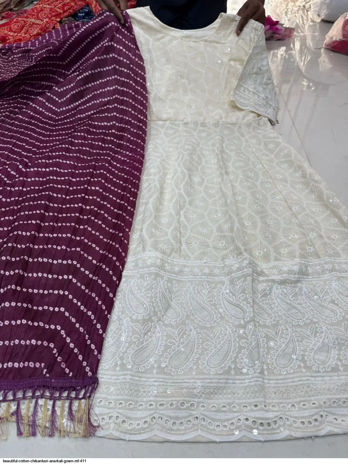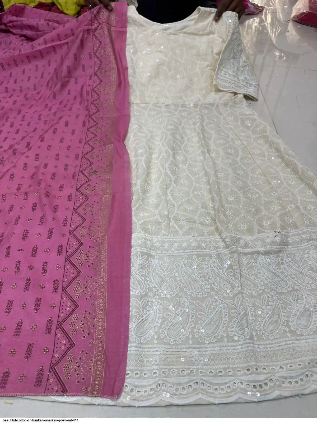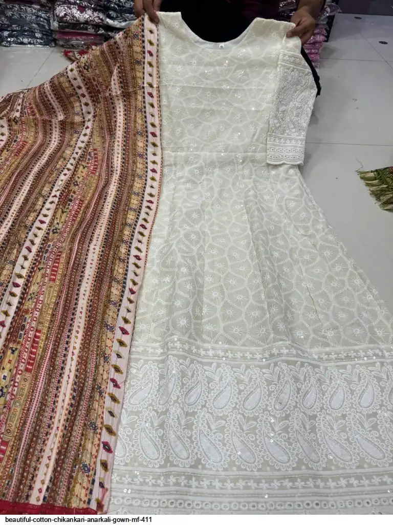 BEAUTIFUL ANARKALI CHIKAN SEQVENS GOWN WITH DUPATTA🪡
