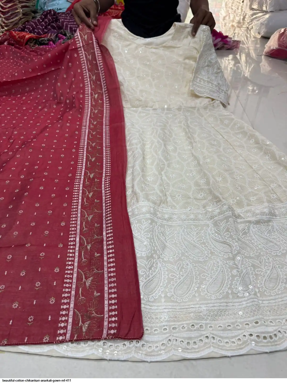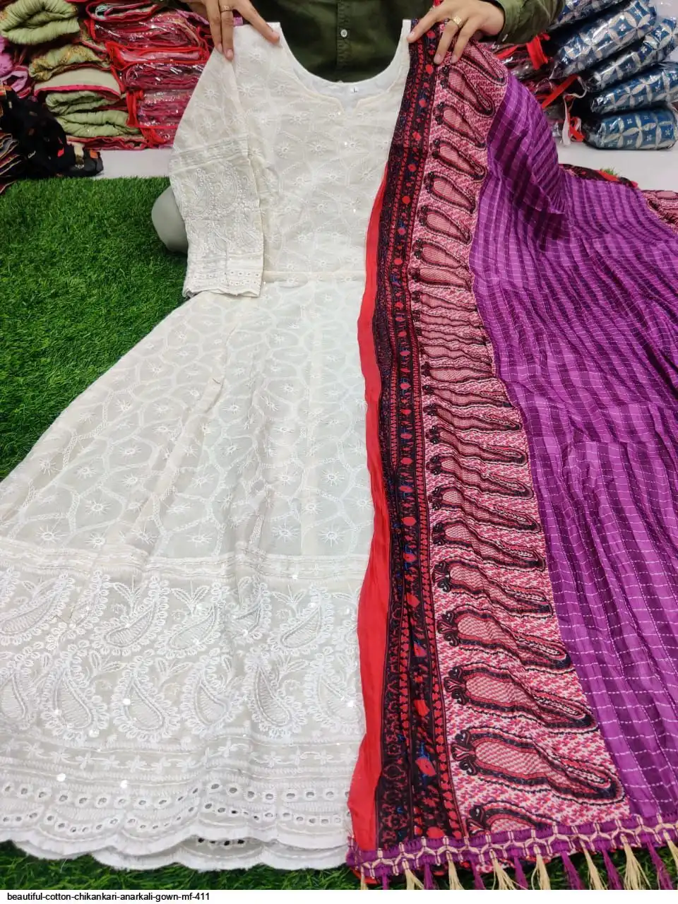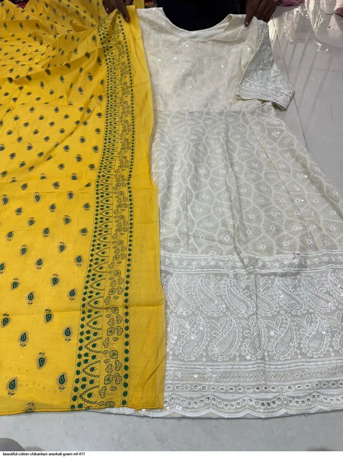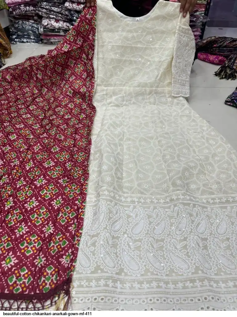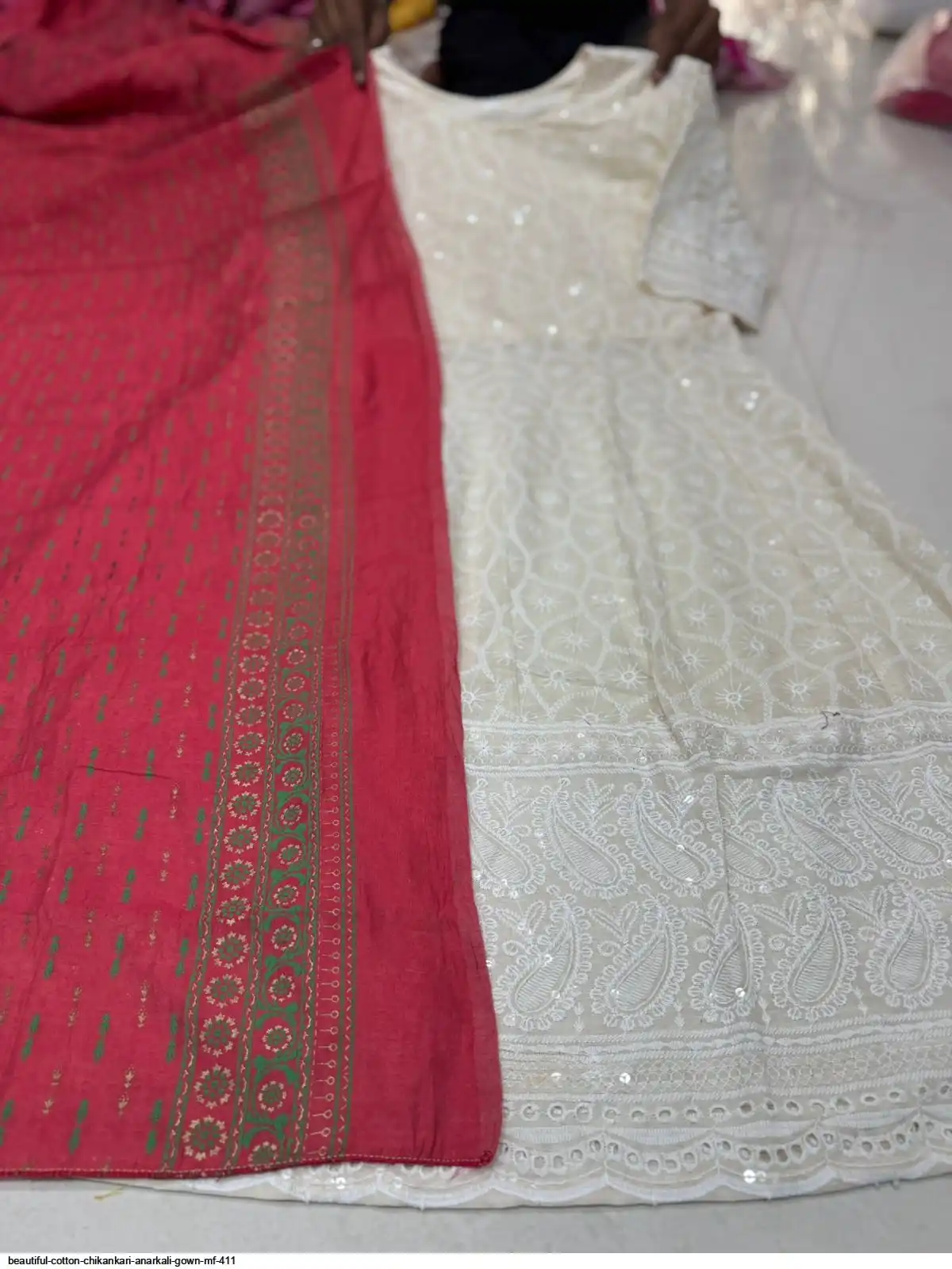 BEAUTIFUL ANARKALI CHIKAN SEQVENS GOWN WITH DUPATTA🪡