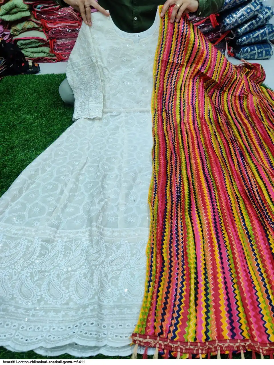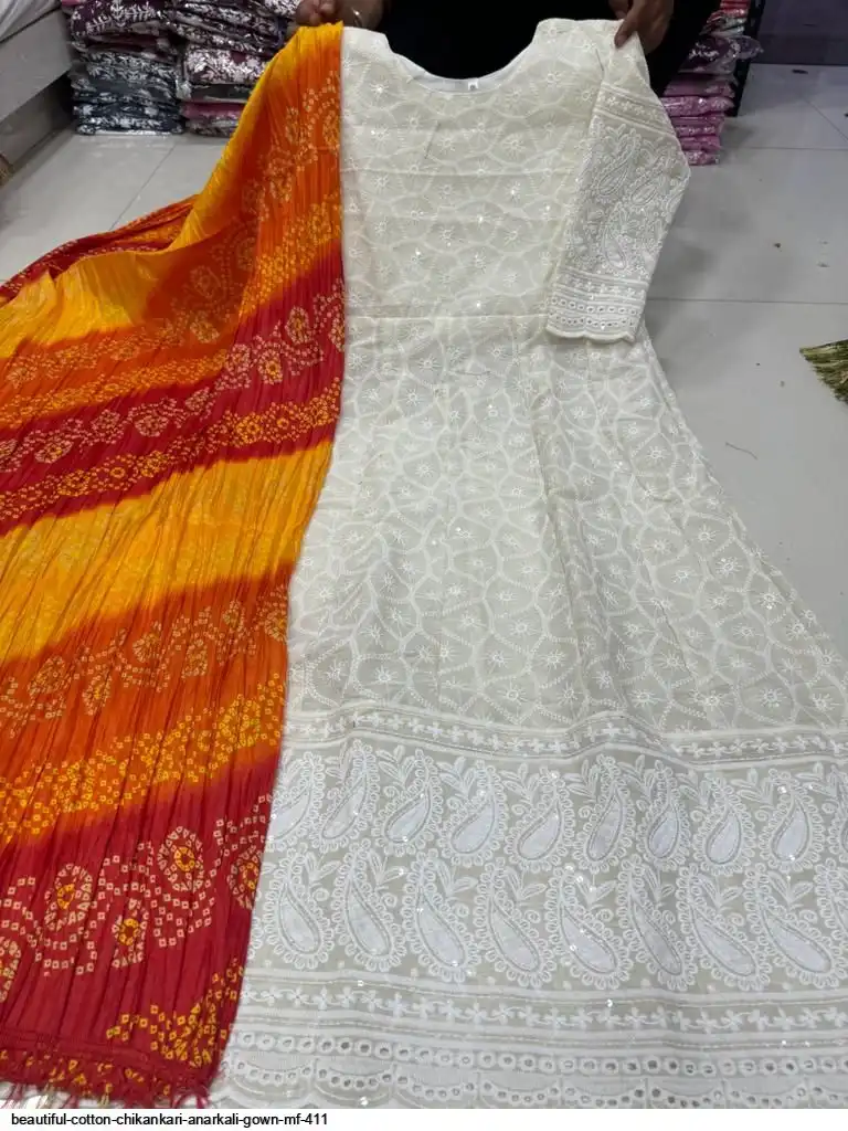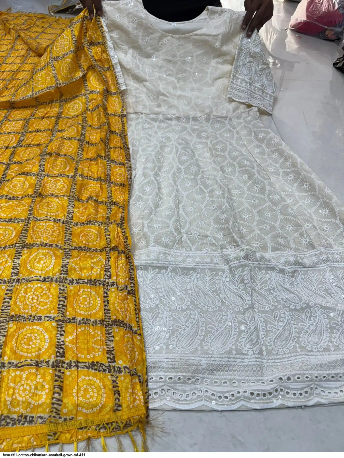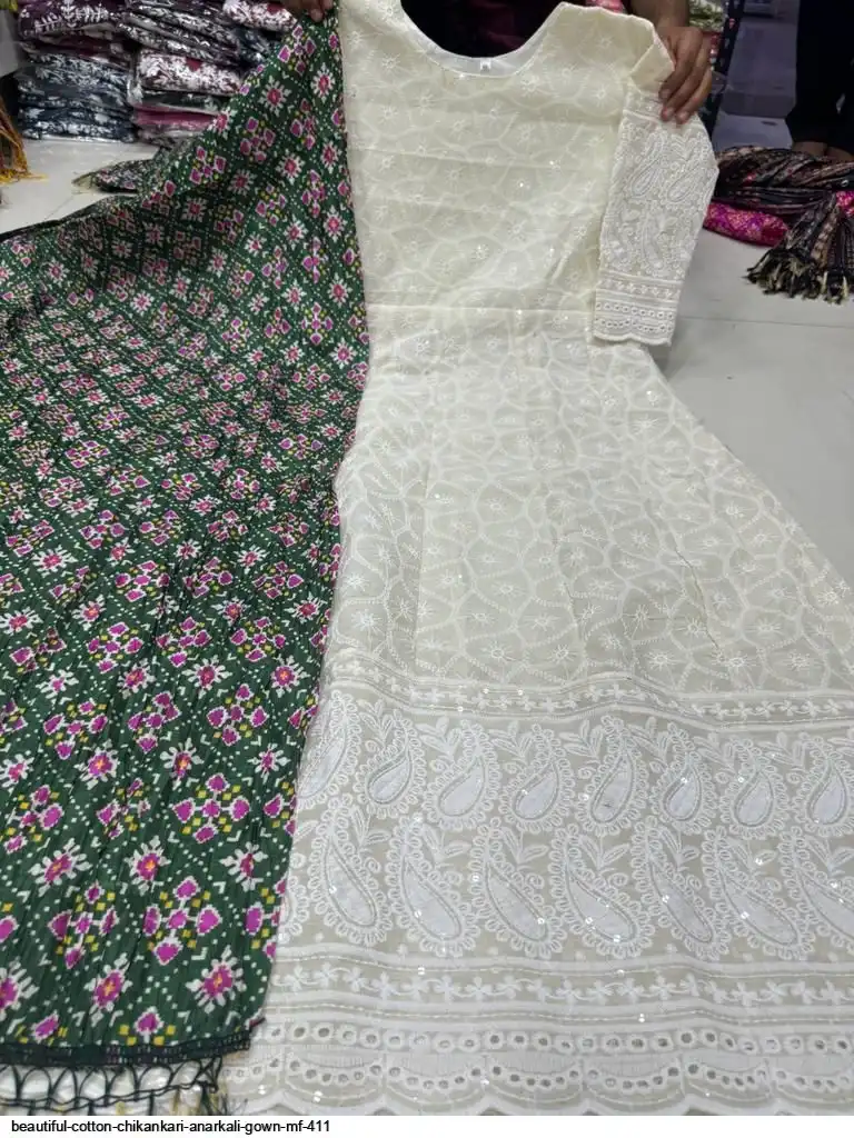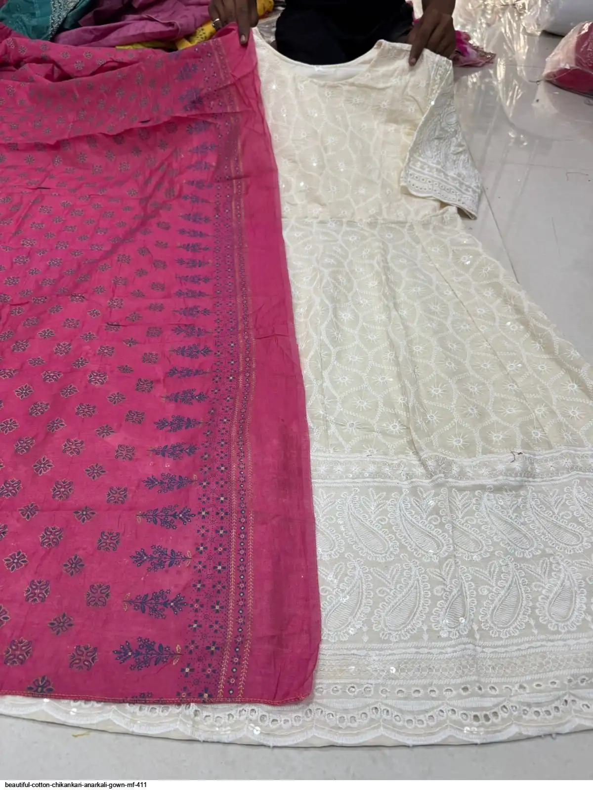 BEAUTIFUL ANARKALI CHIKAN SEQVENS GOWN WITH DUPATTA🪡