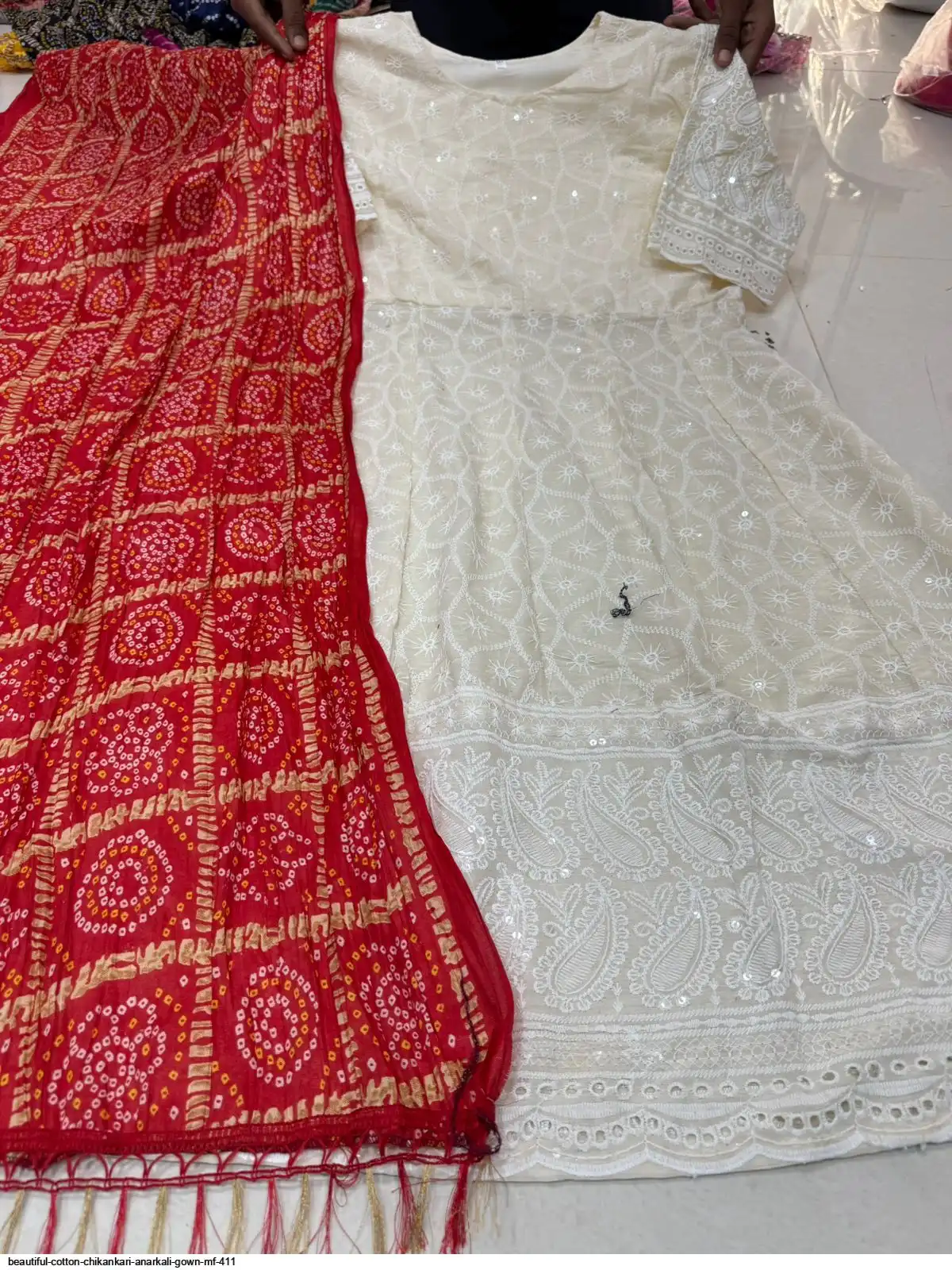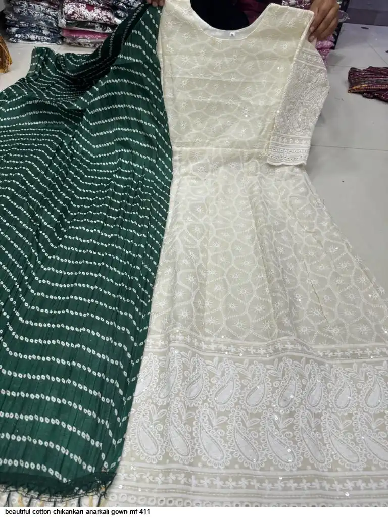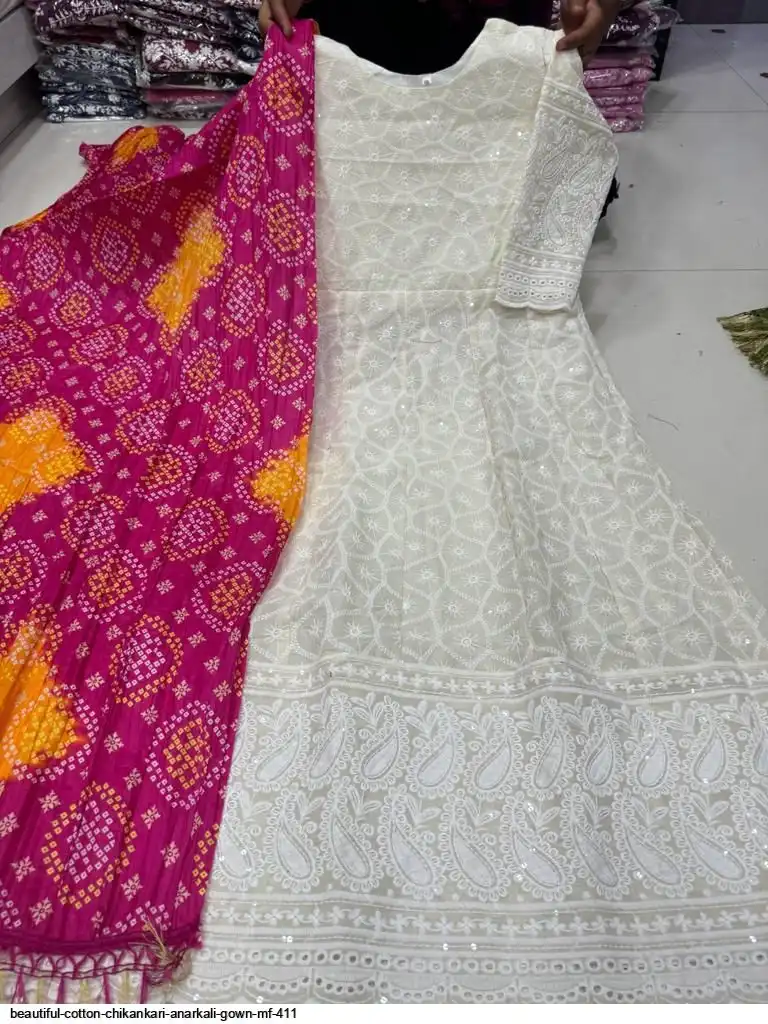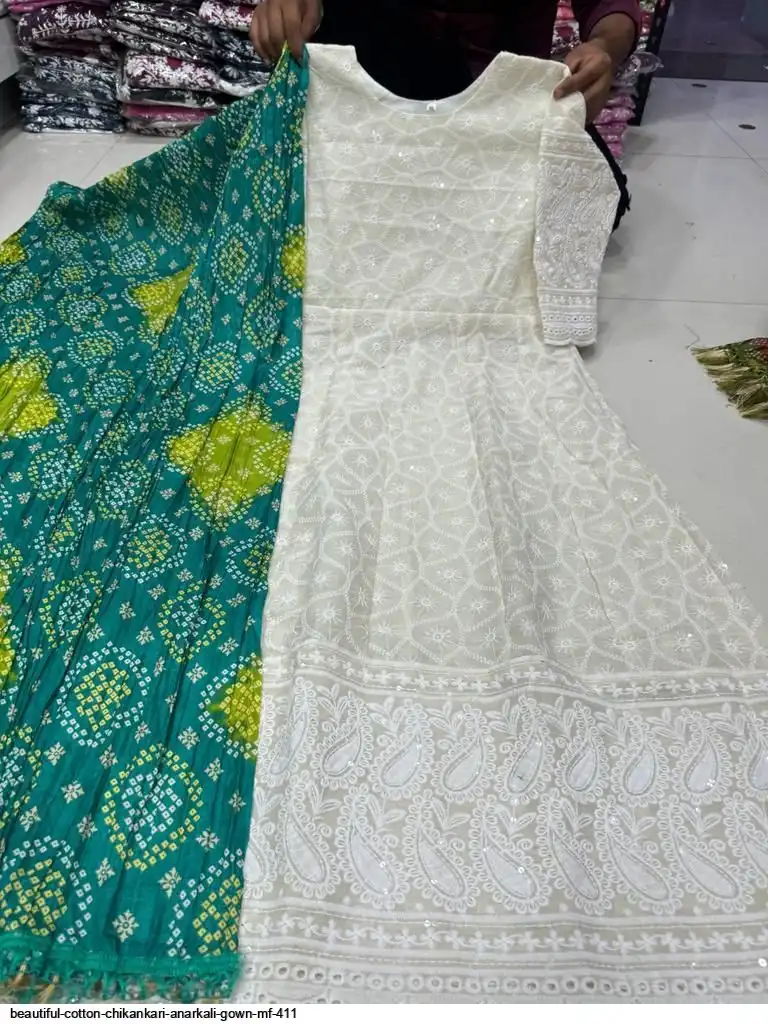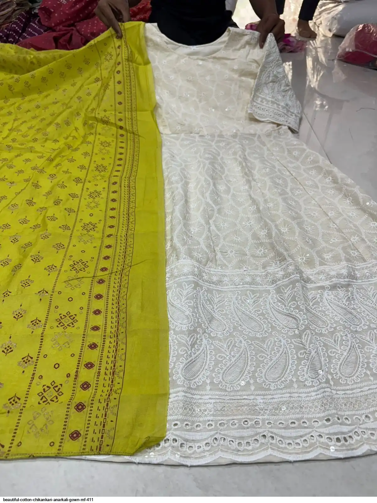 BEAUTIFUL ANARKALI CHIKAN SEQVENS GOWN WITH DUPATTA🪡