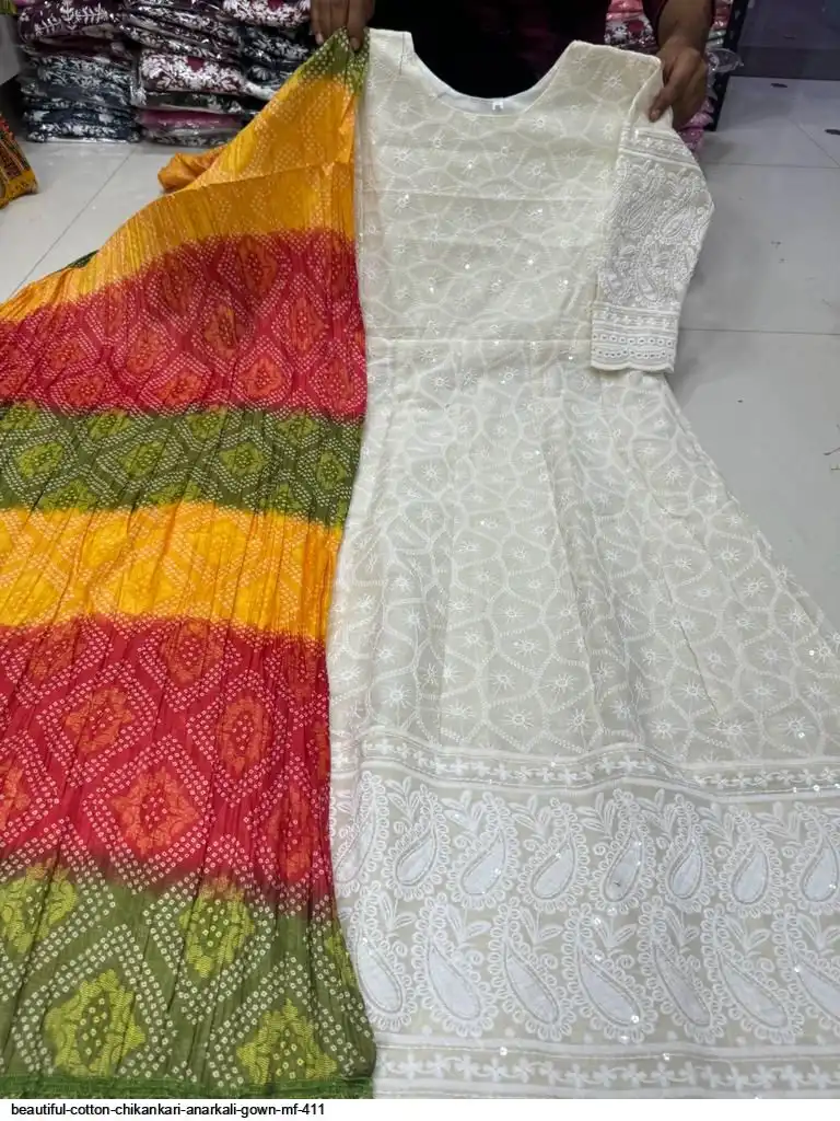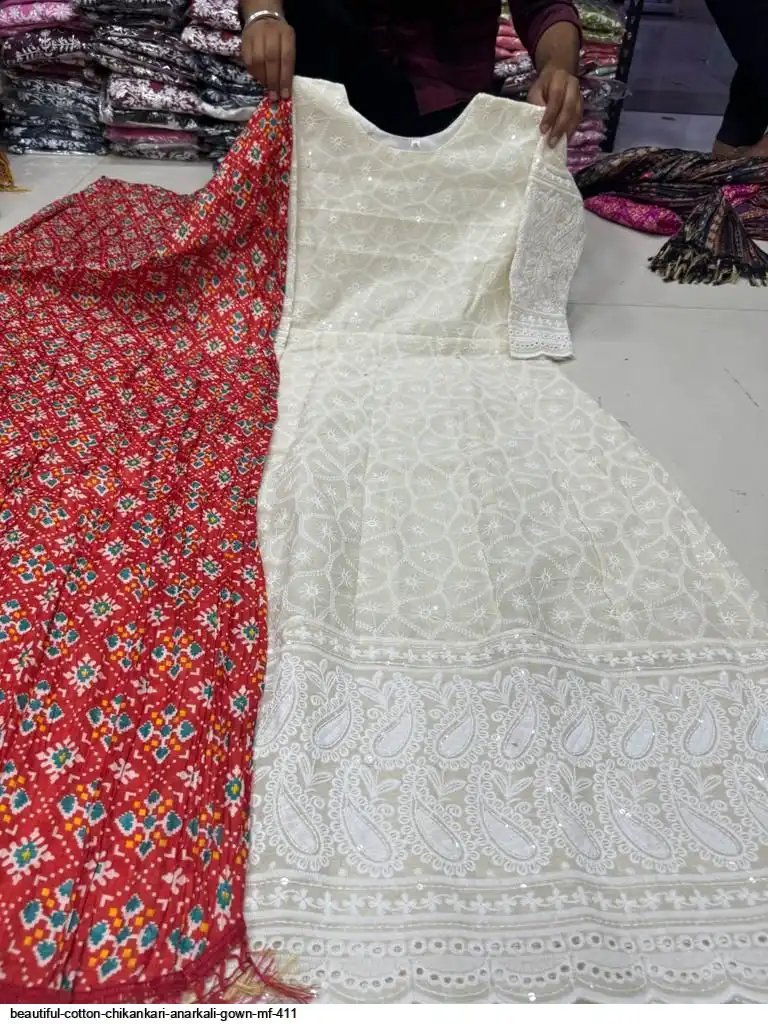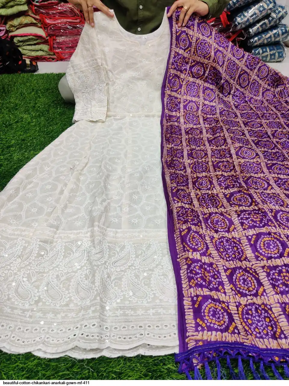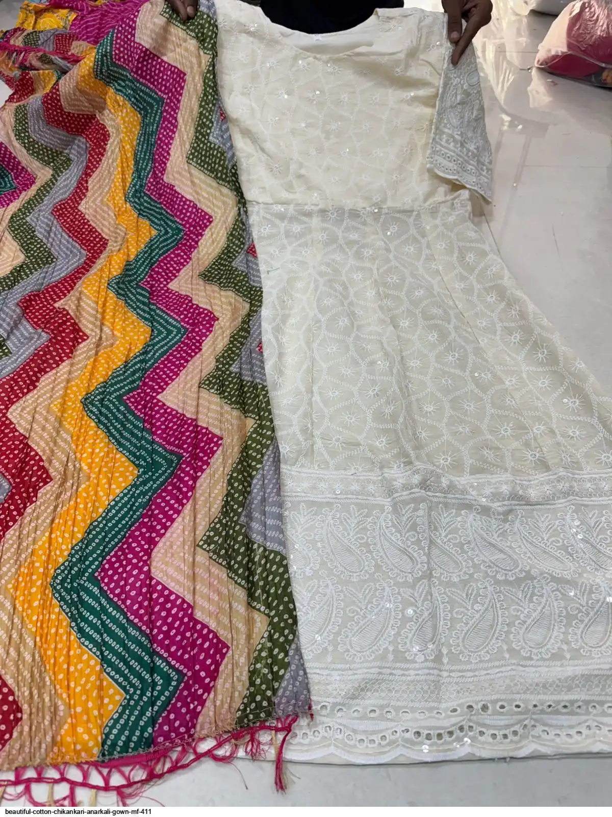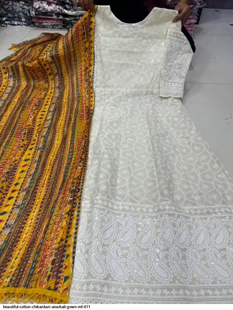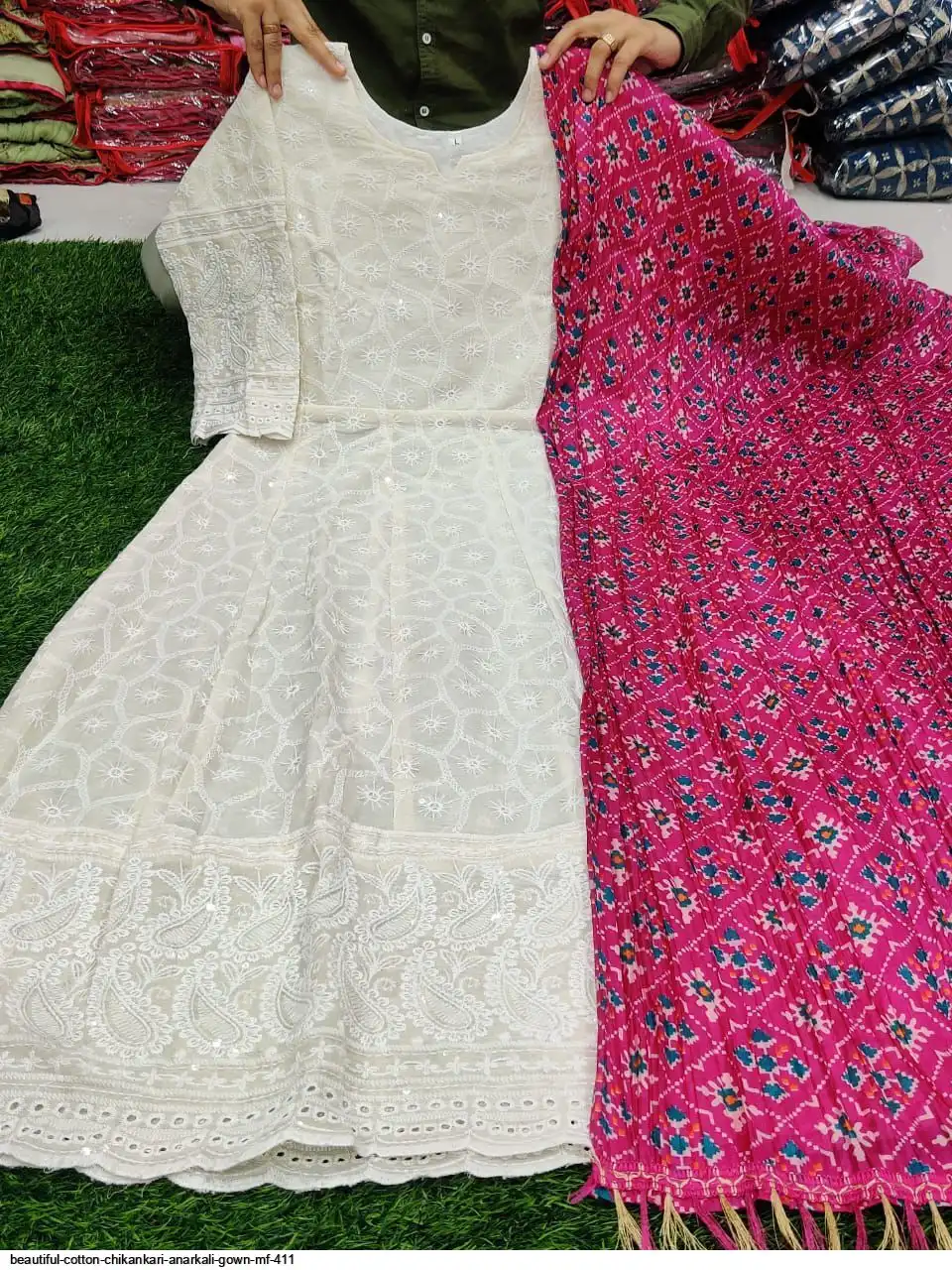 BEAUTIFUL ANARKALI CHIKAN SEQVENS GOWN WITH DUPATTA🪡
