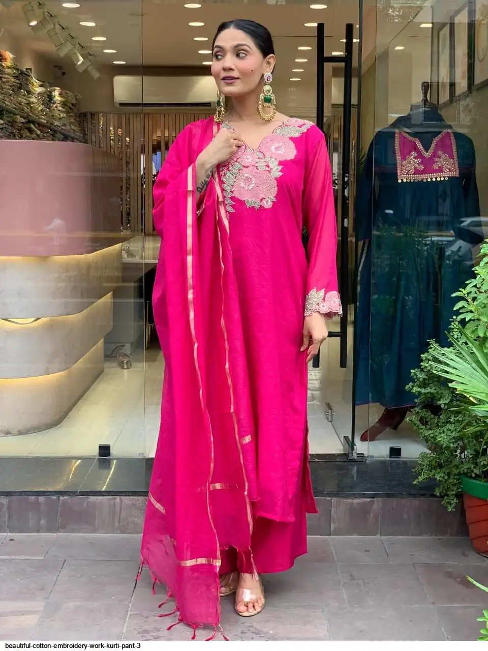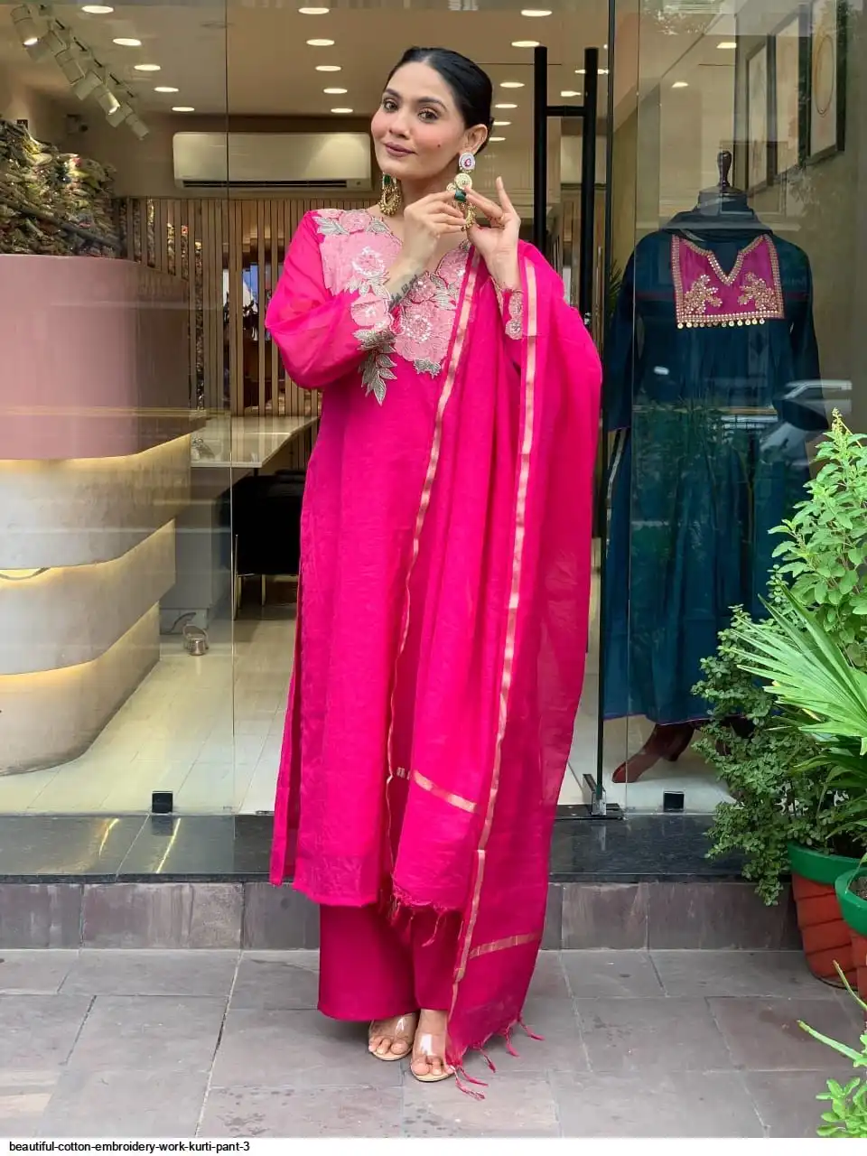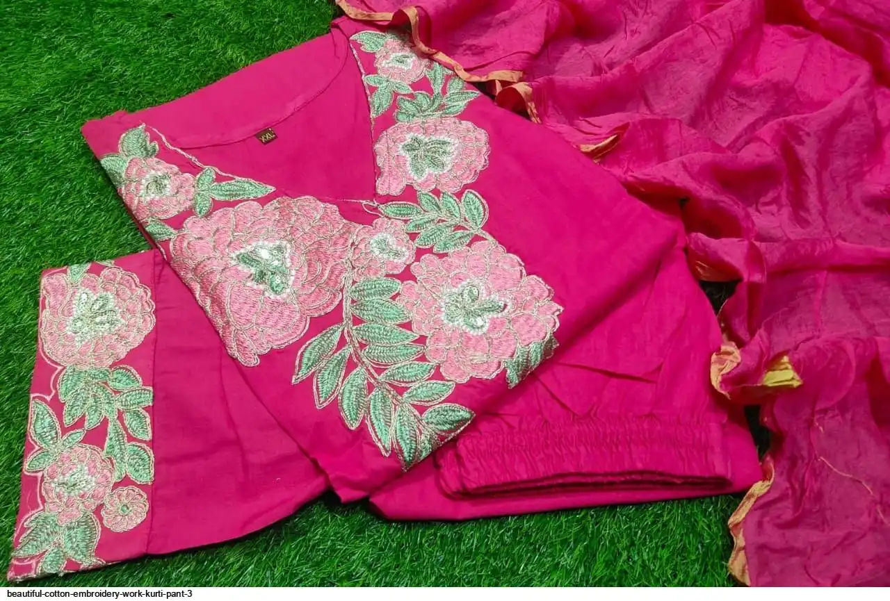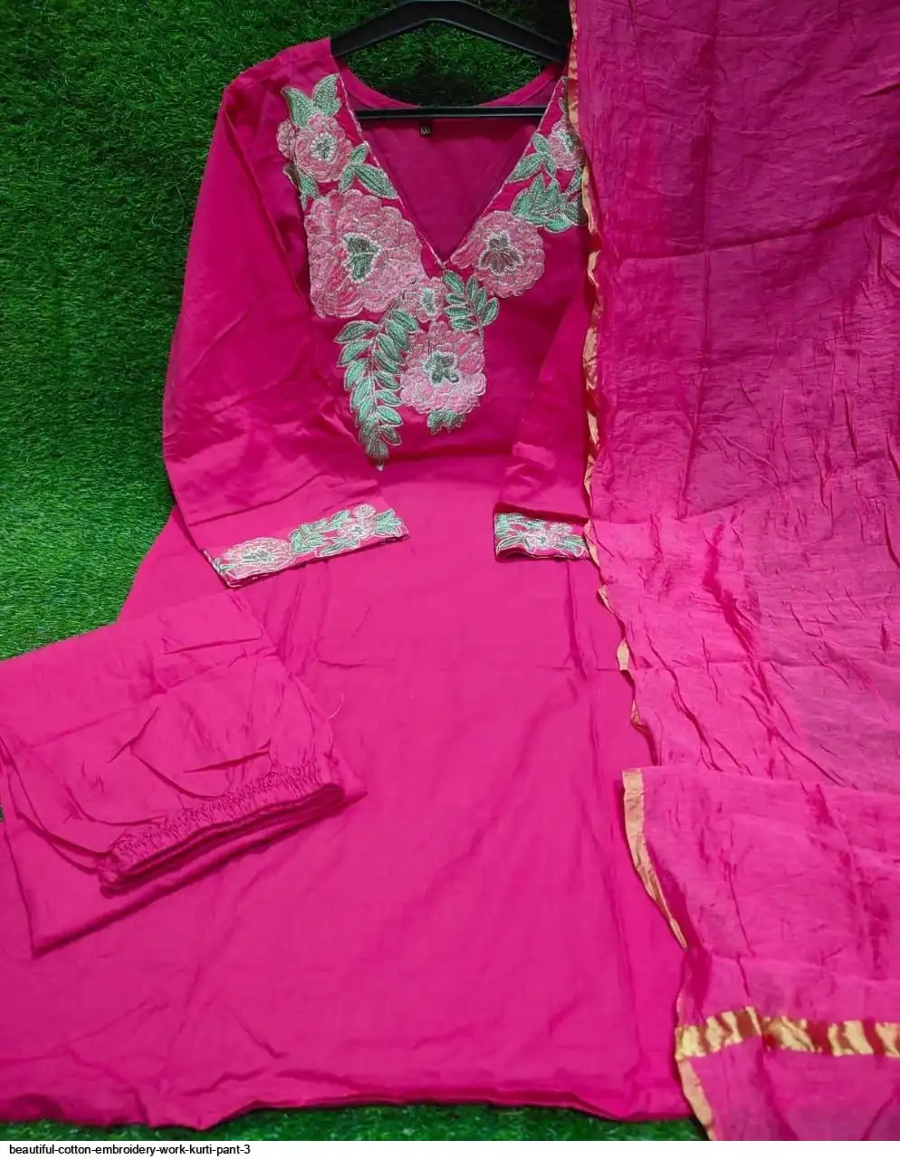 *BEAUTIFUL COTTON KURTI PANT AND DUPATTA