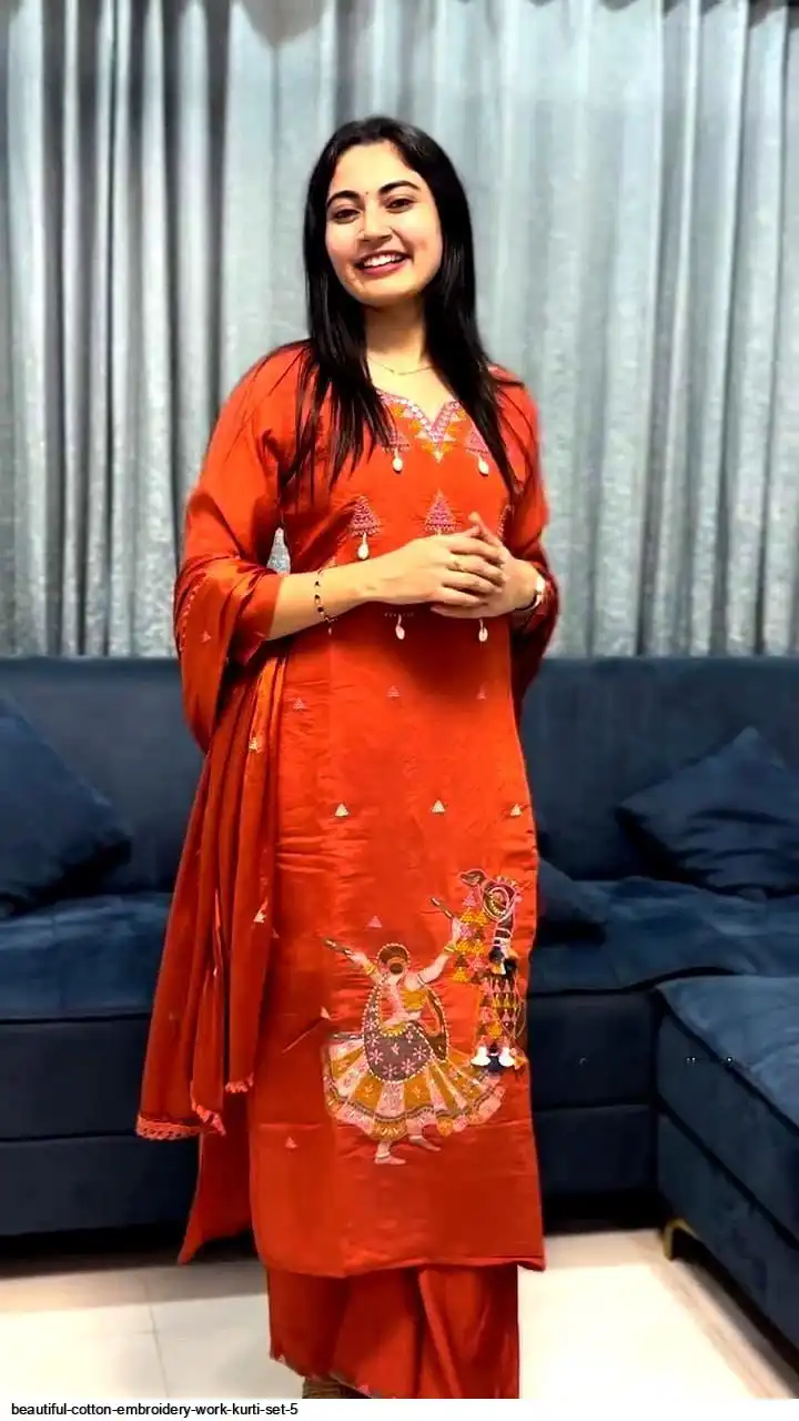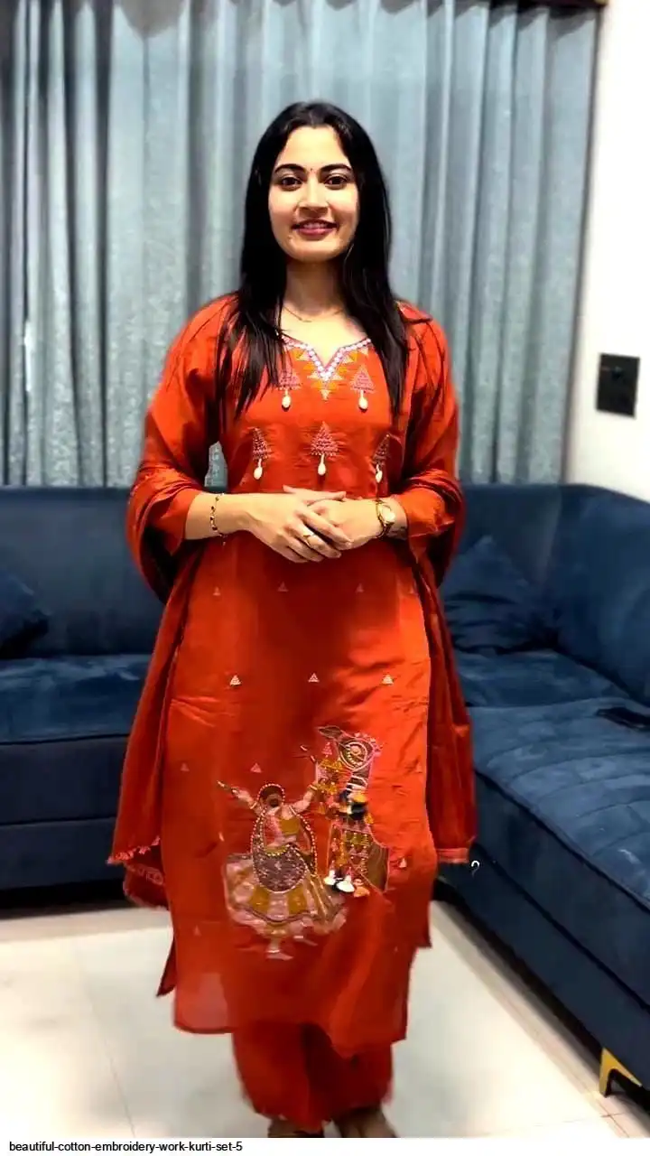 Presenting Beautiful Heavy quality cotton Fabric designer festive wear straight style kurti with pattern pant