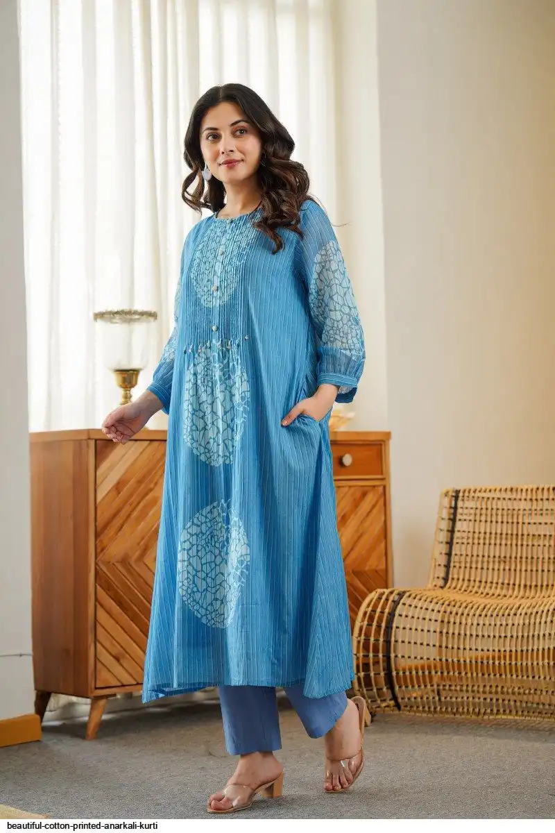 BEAUTIFUL COTTON PRINTED ANARKALI KURTI