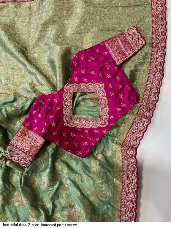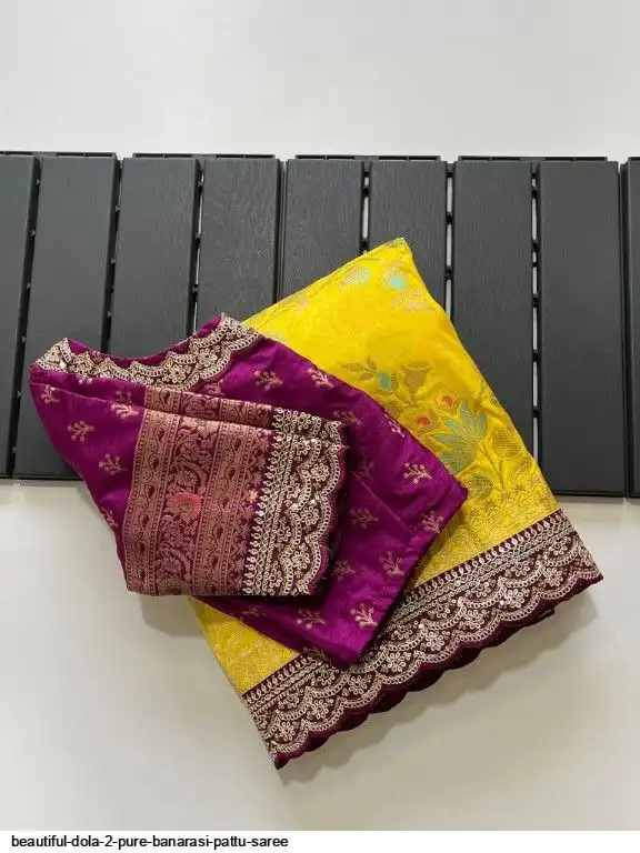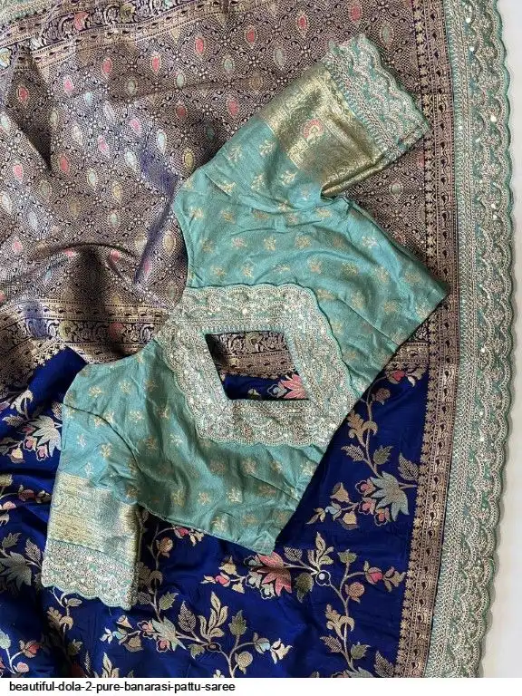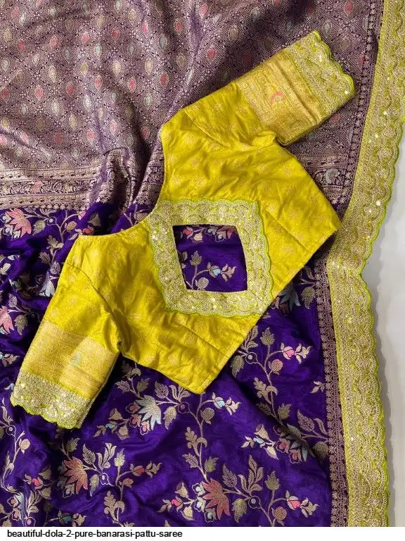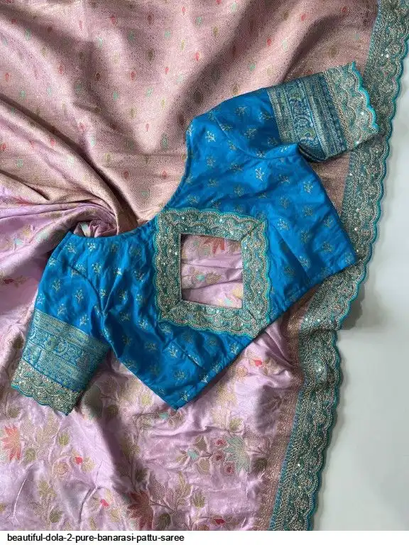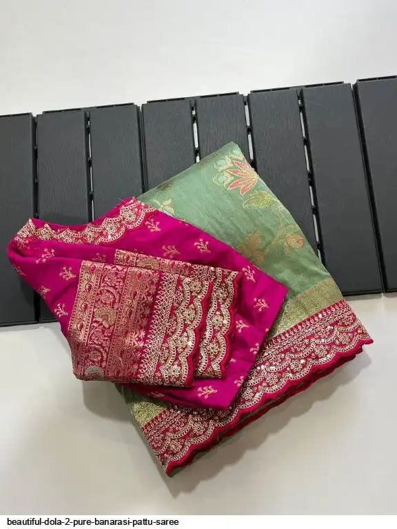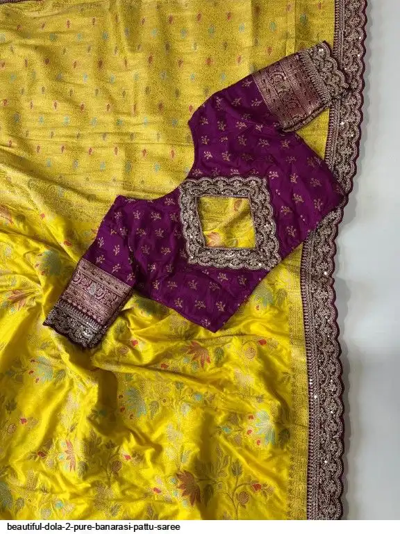 Pure Banarasi Pattu Saree with elegant Weaving Flower design on all over the saree