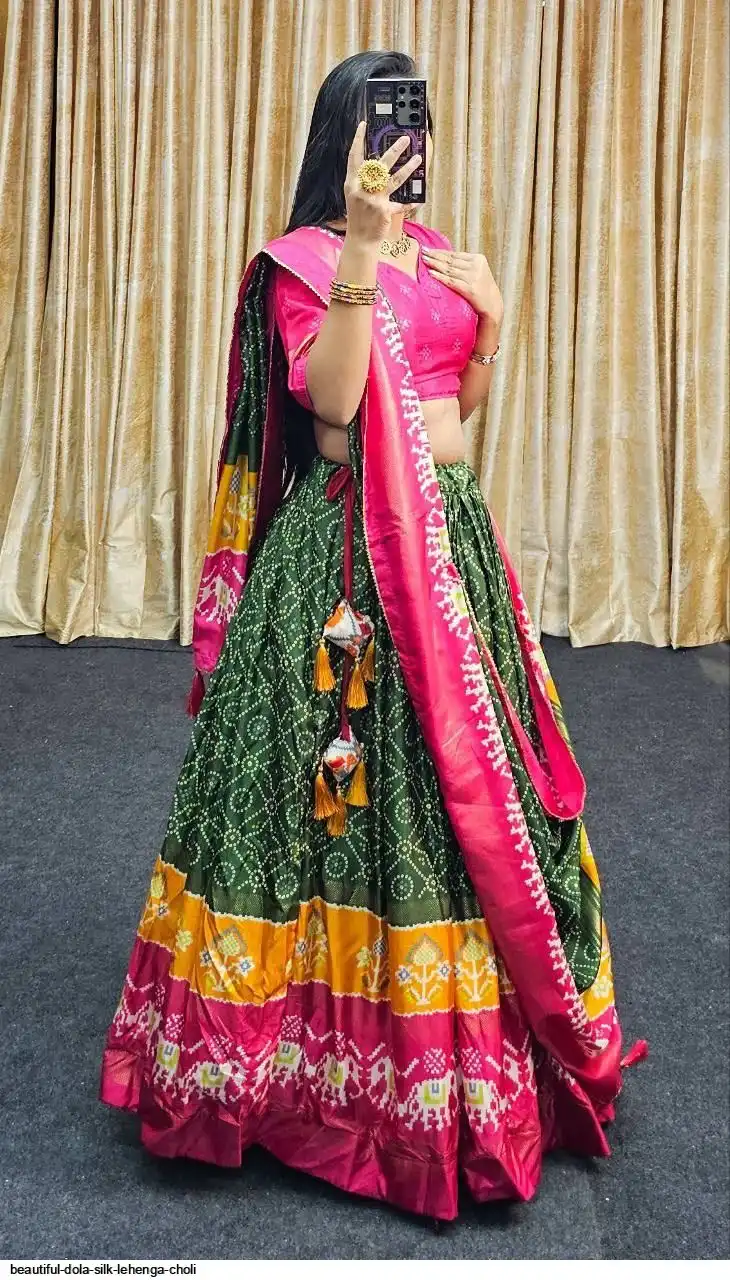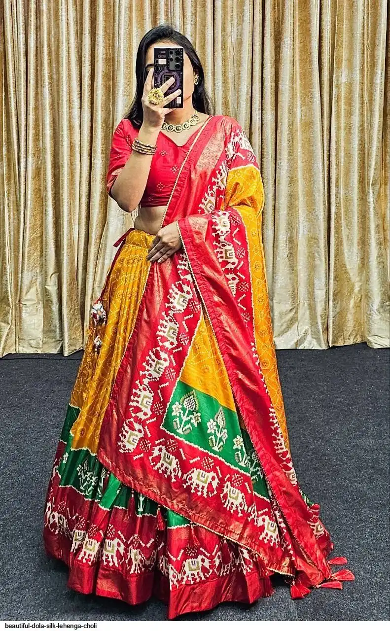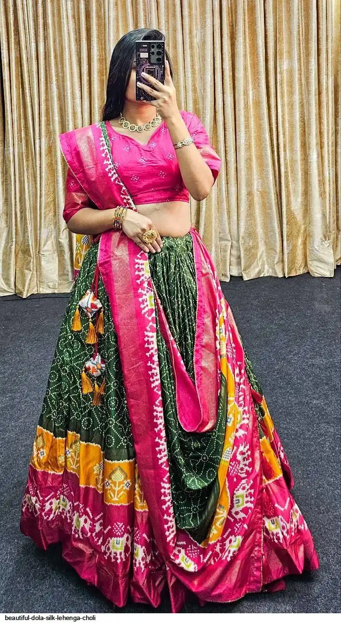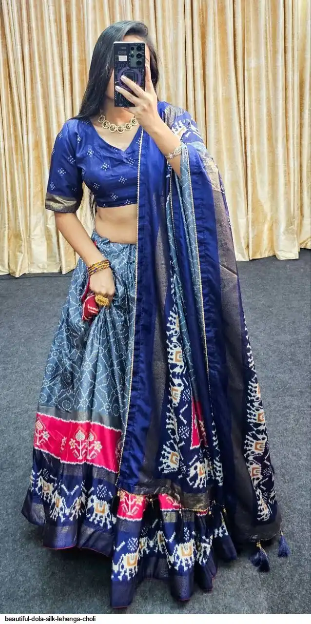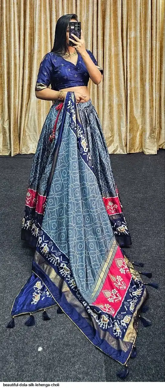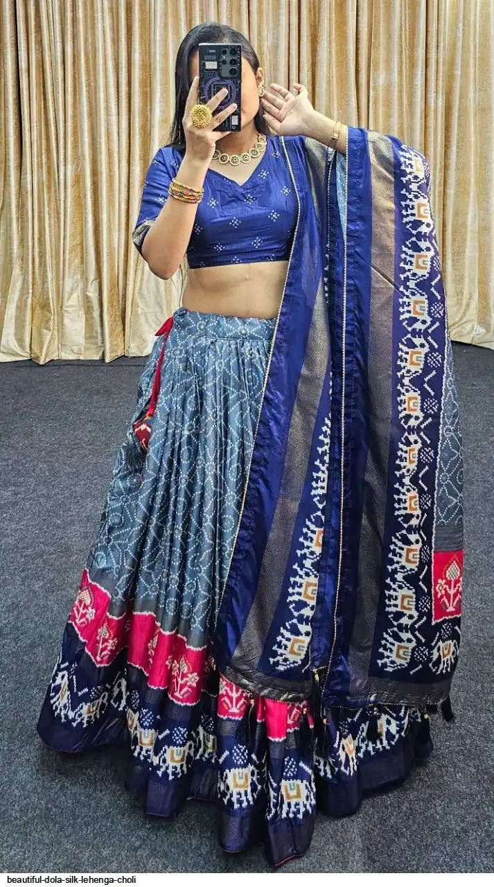 Embrace the elegance of Dola Silk, where tradition meets contemporary style in every printed lehenga choli